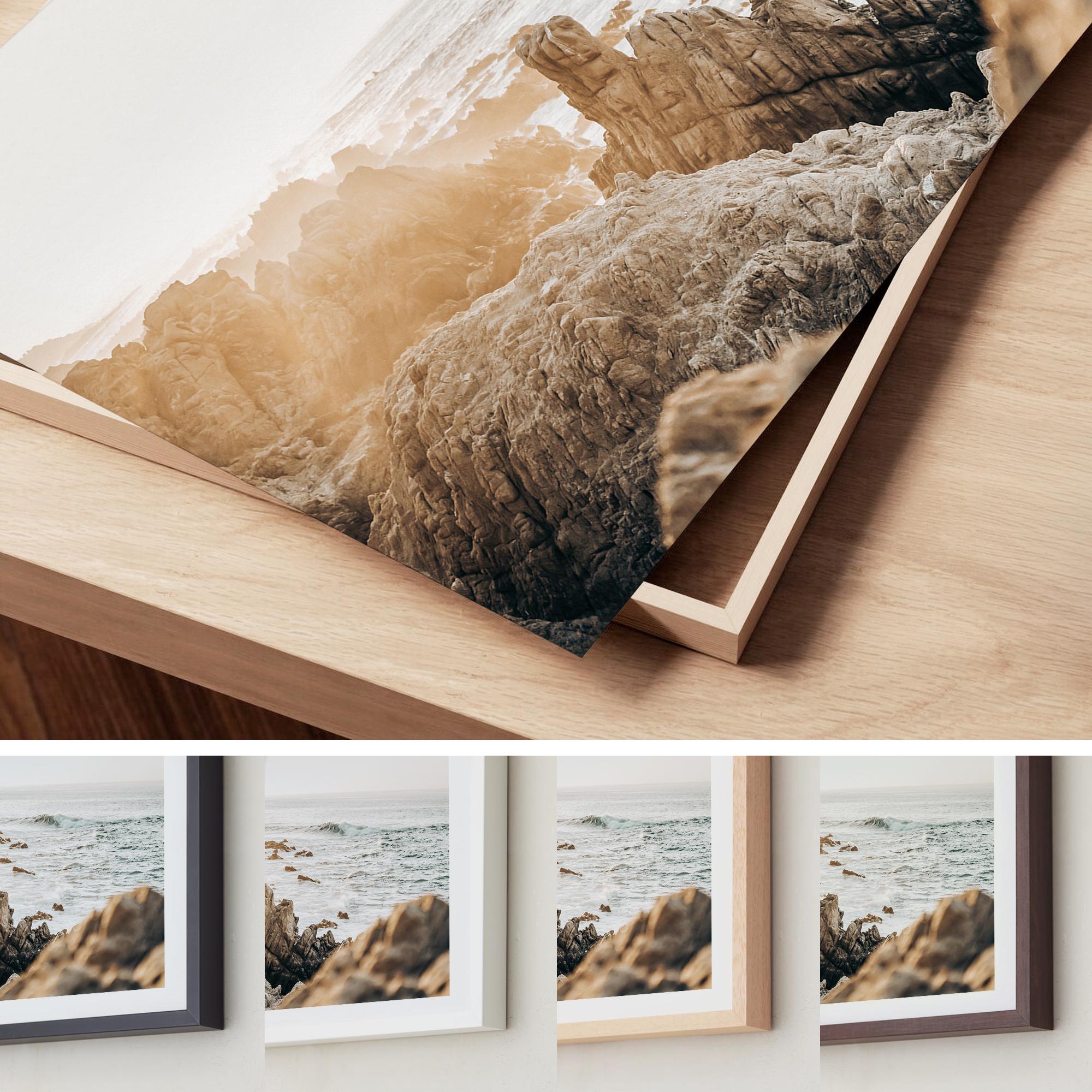 • Sizes refer to the visible print area inside the frame. Matted options keep the same frame size, but reduce the visible artwork area slightly.