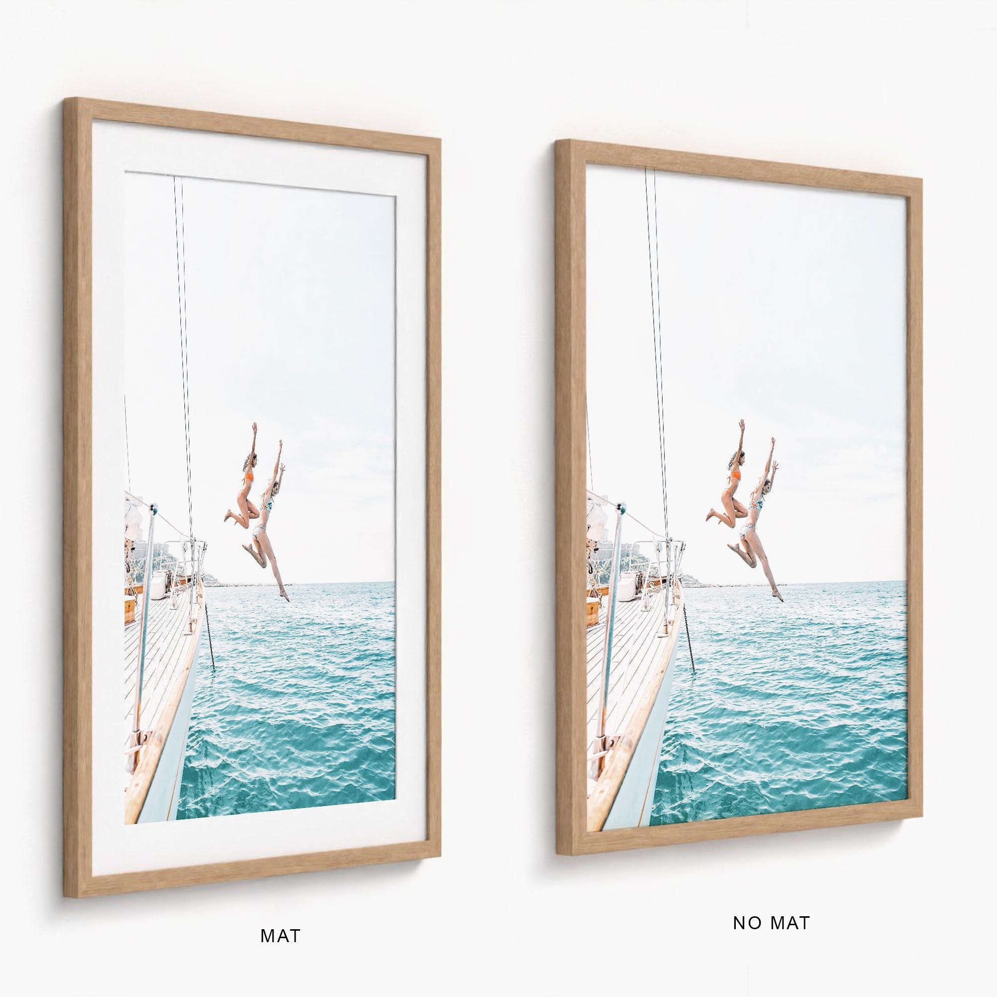 • Sizes listed refer to the artwork inside the frame. If you choose the matted option, the frame size stays the same, but the visible artwork area will be slightly smaller.
