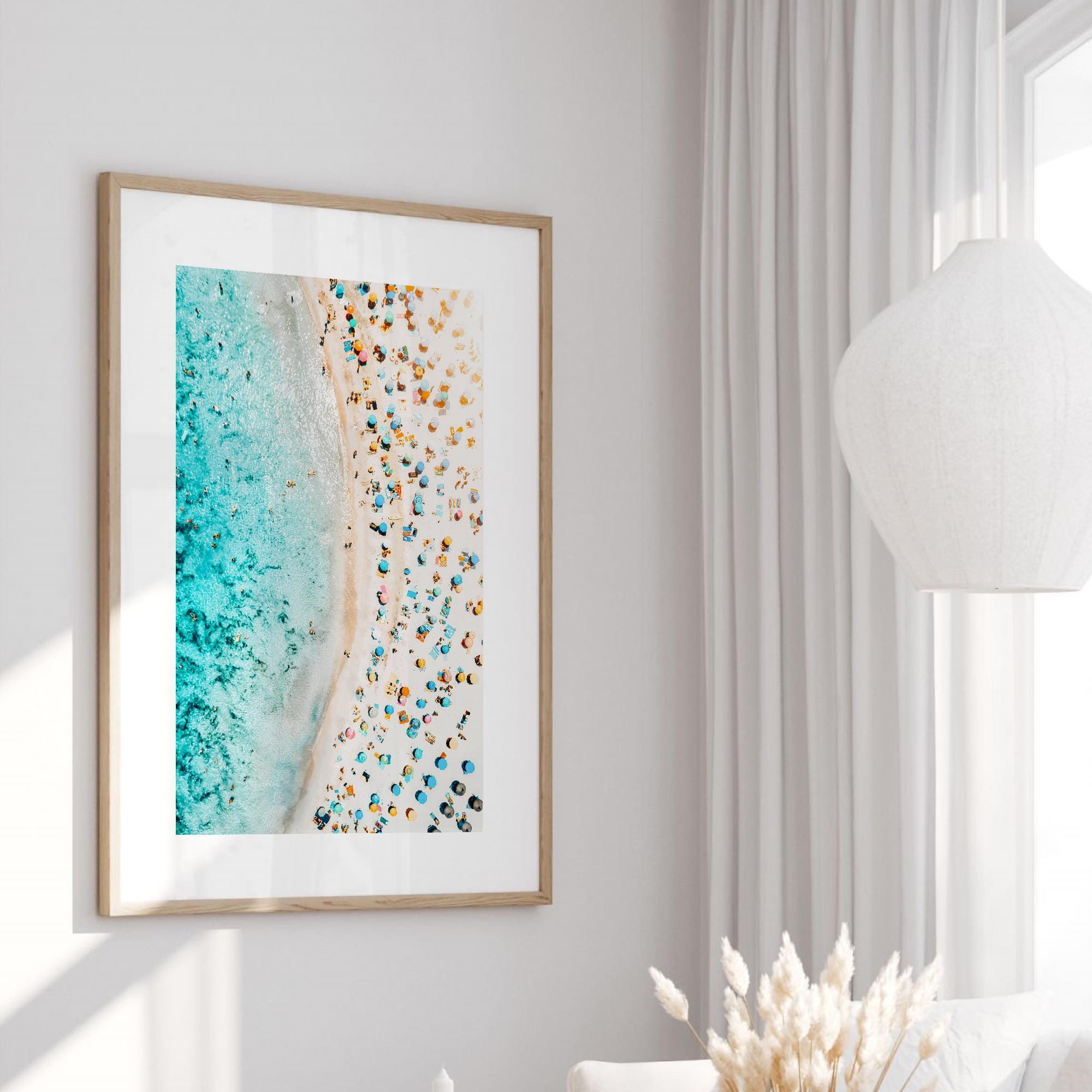 Aerial Beach Fine Art Print, Turquoise Ocean, Framed or Unframed Summer Photography Wall Art