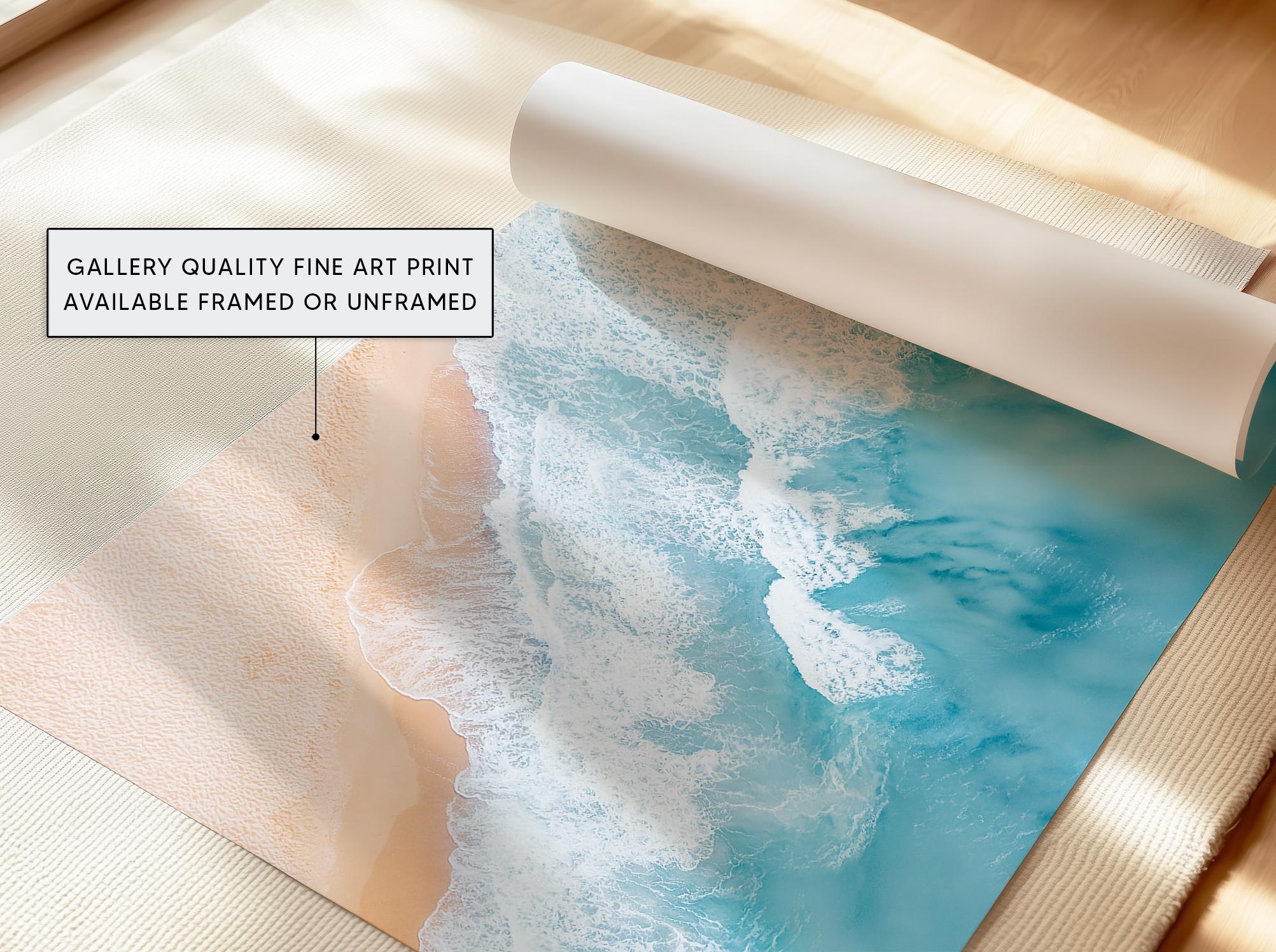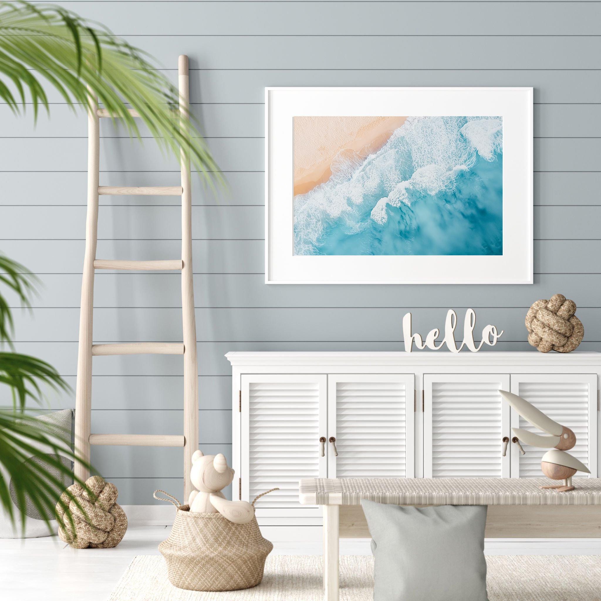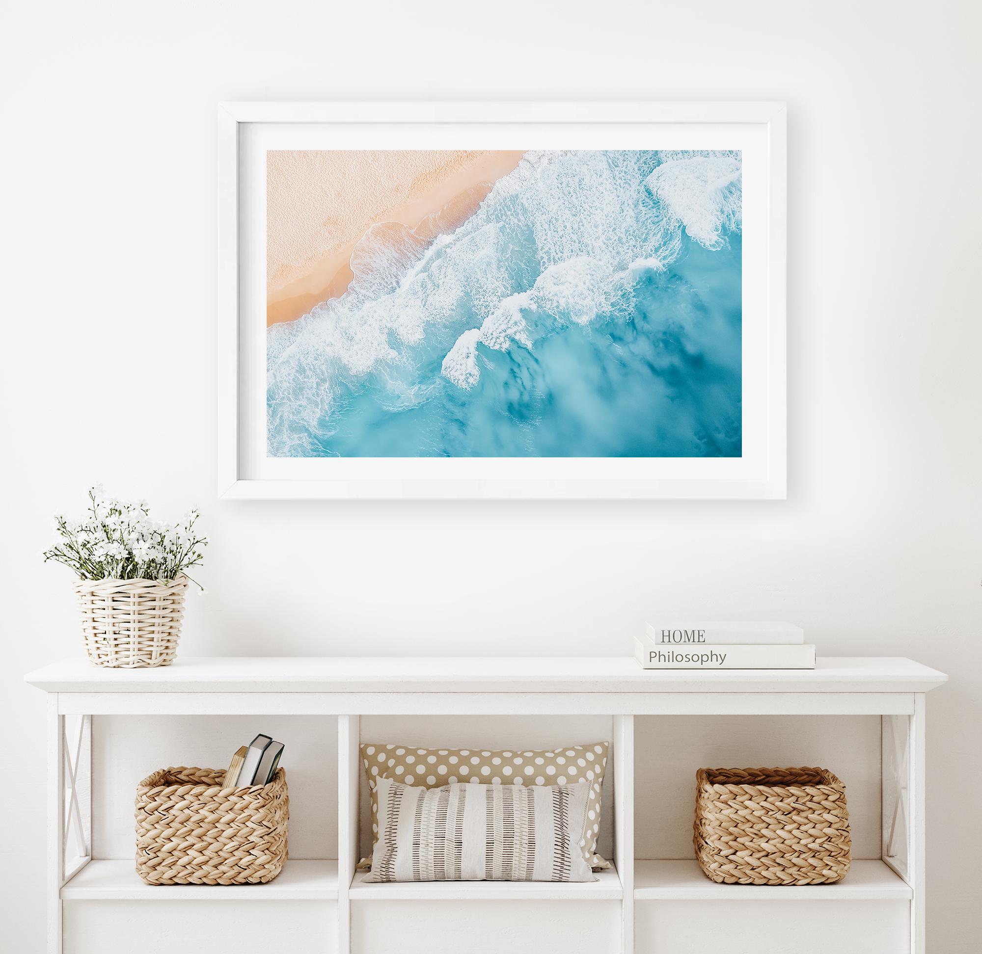 Aerial Ocean Photography Print, Modern Beach Wall Art, Framed or Unframed Coastal Photography
