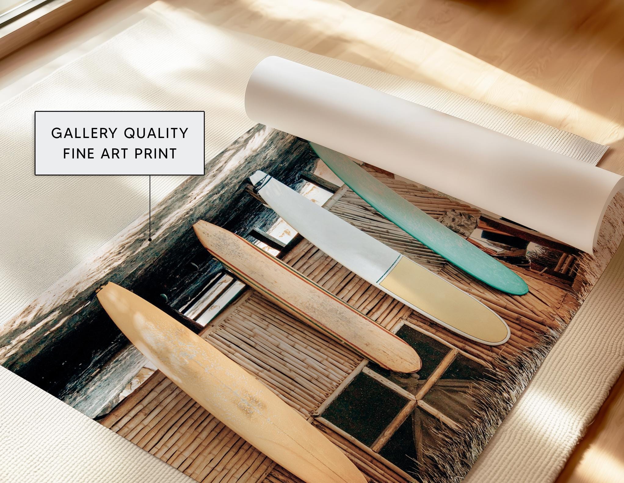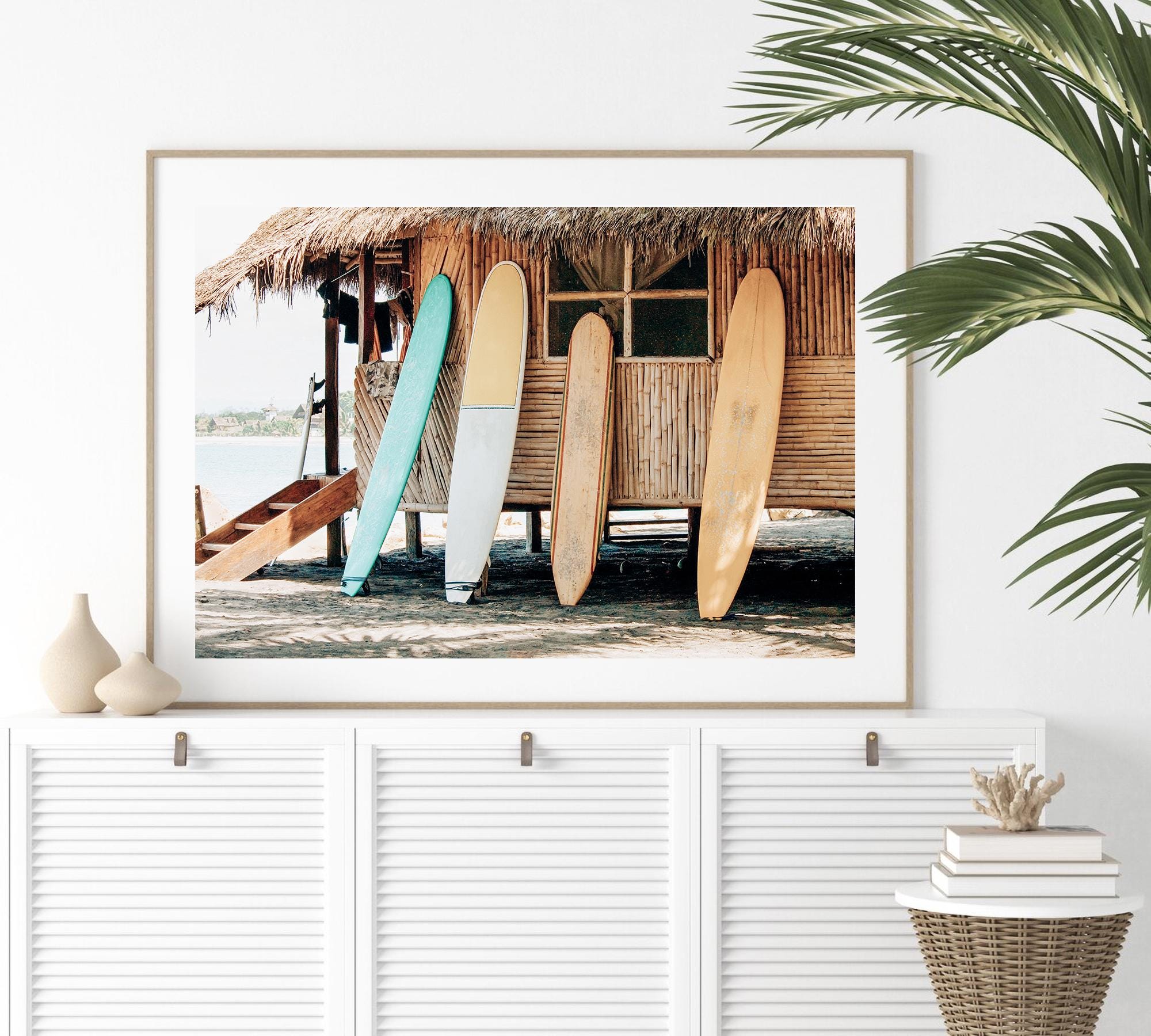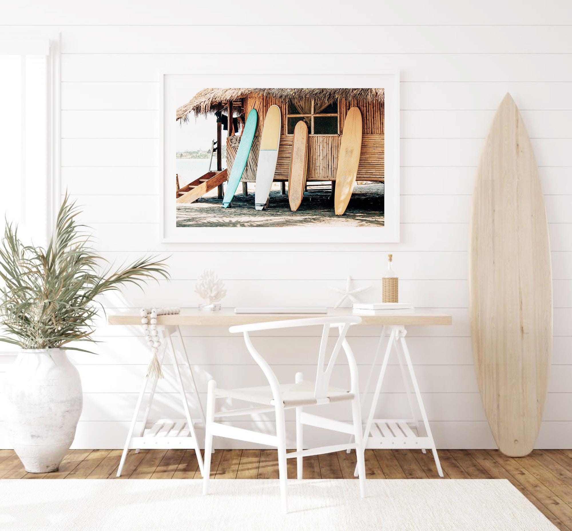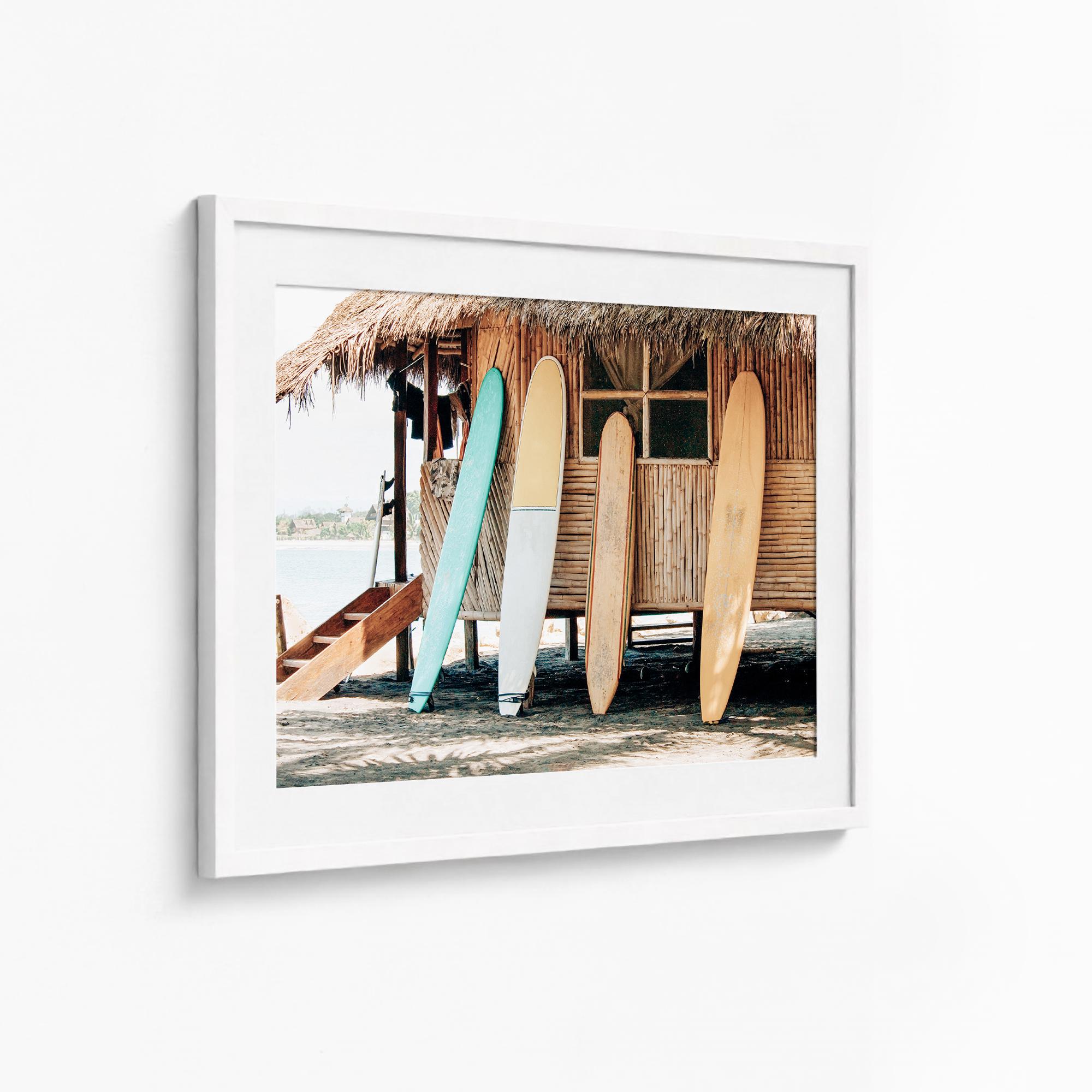 Surfboards Beach Shack Art Print, Coastal Photography