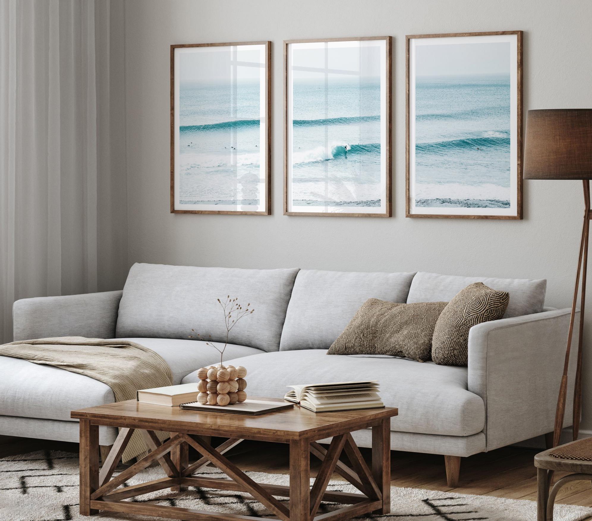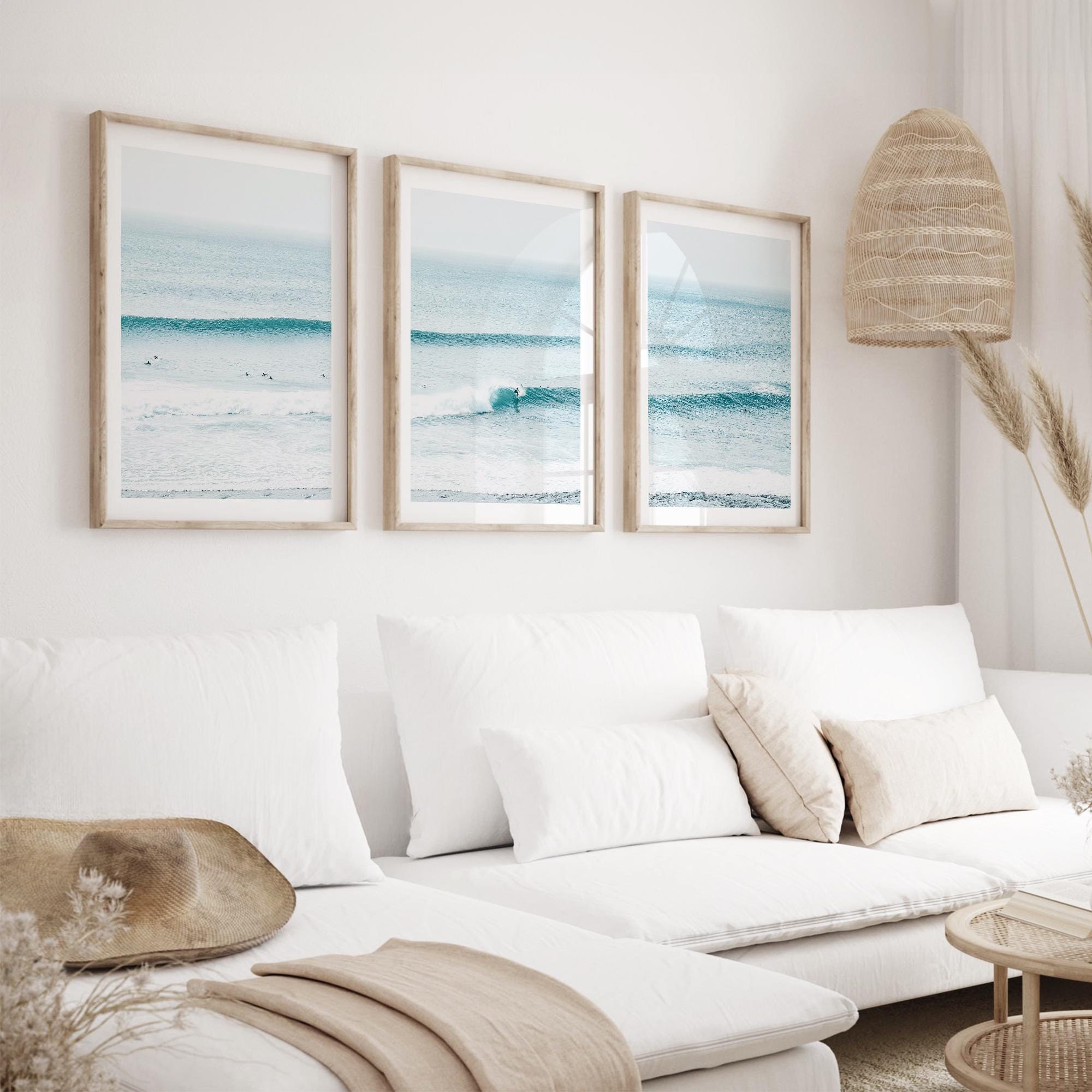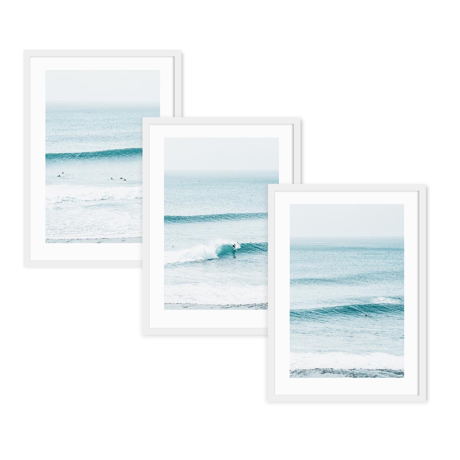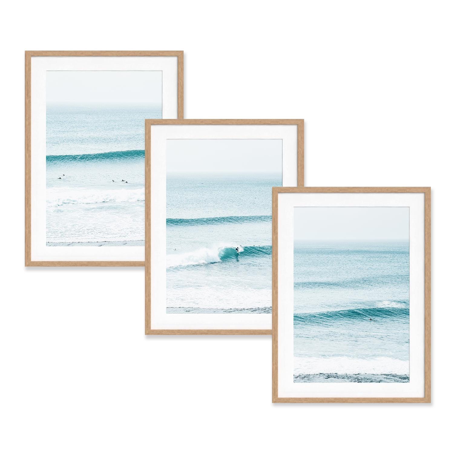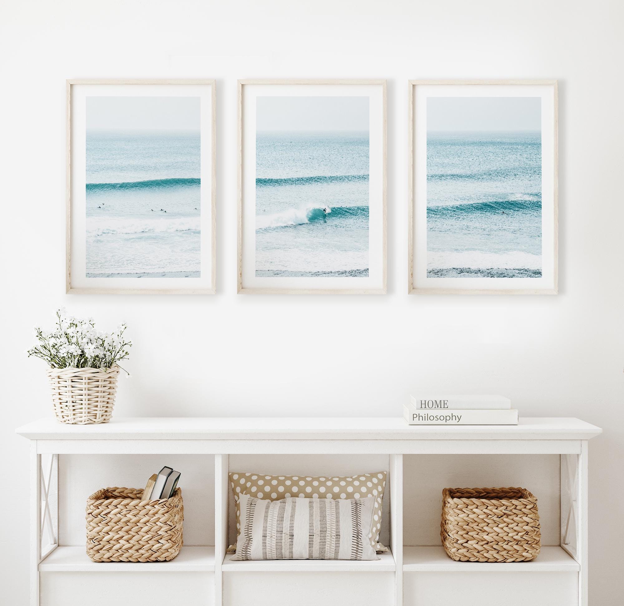 Ocean Wave Photography Triptych: Coastal Framed Wall Art Set
