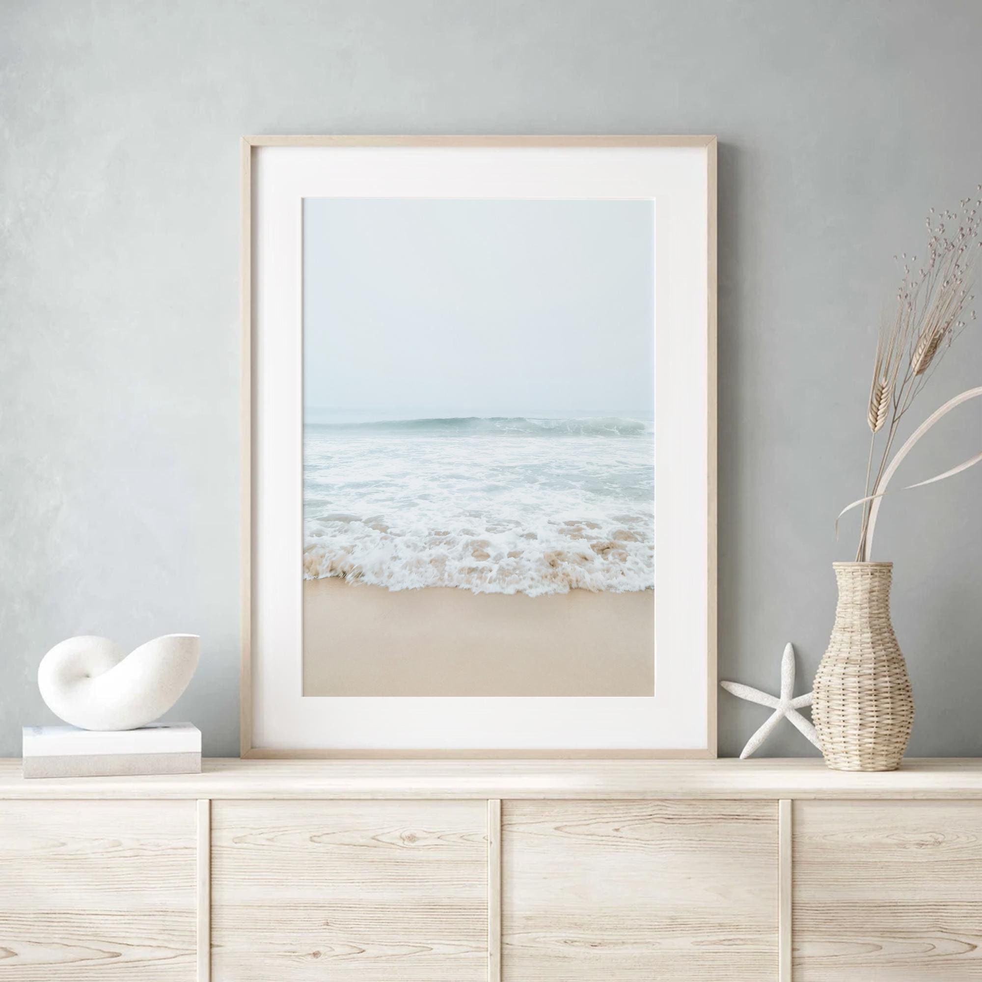 Neutral Sea Photography Fine Art Print: Coastal Boho Photography Framed Wall Decor