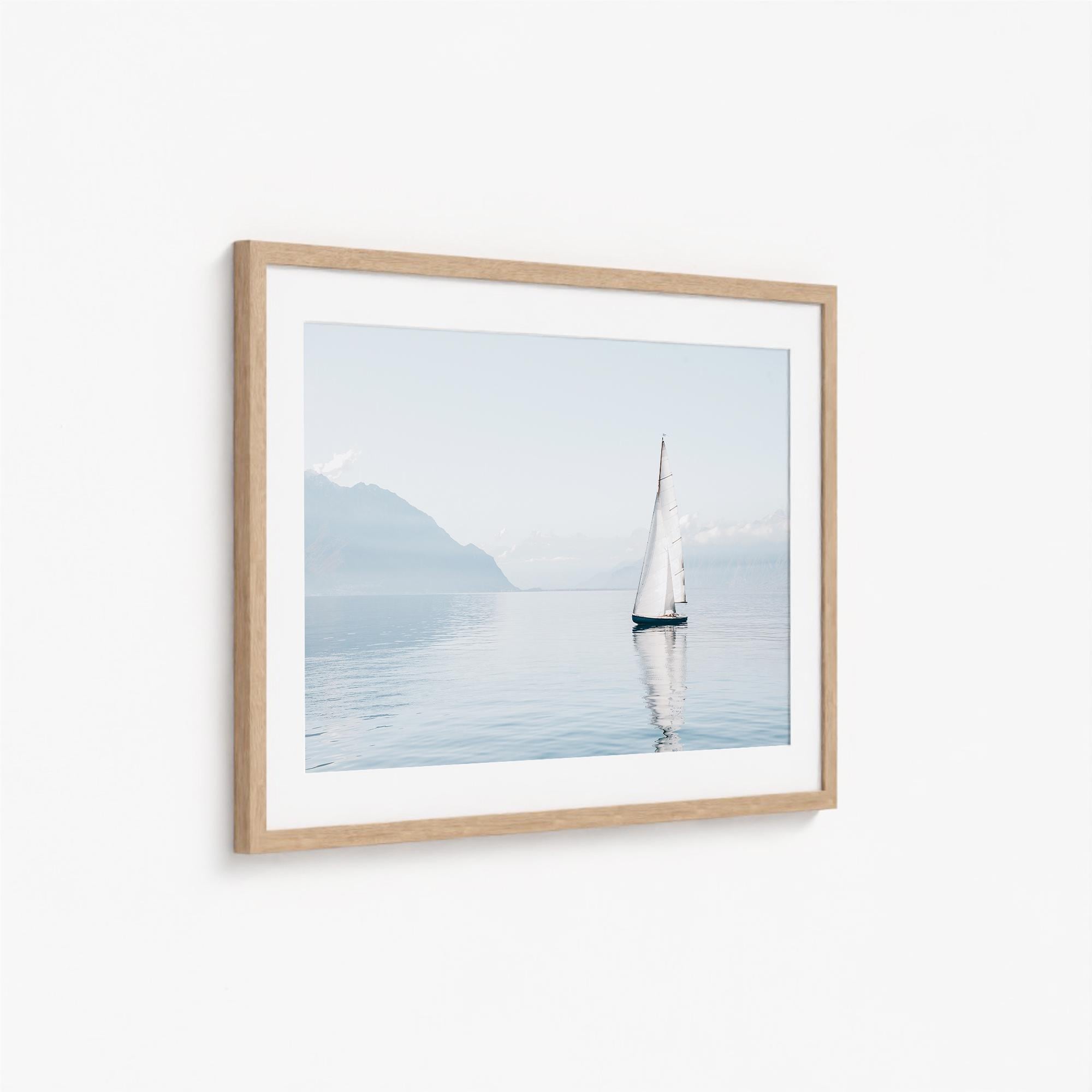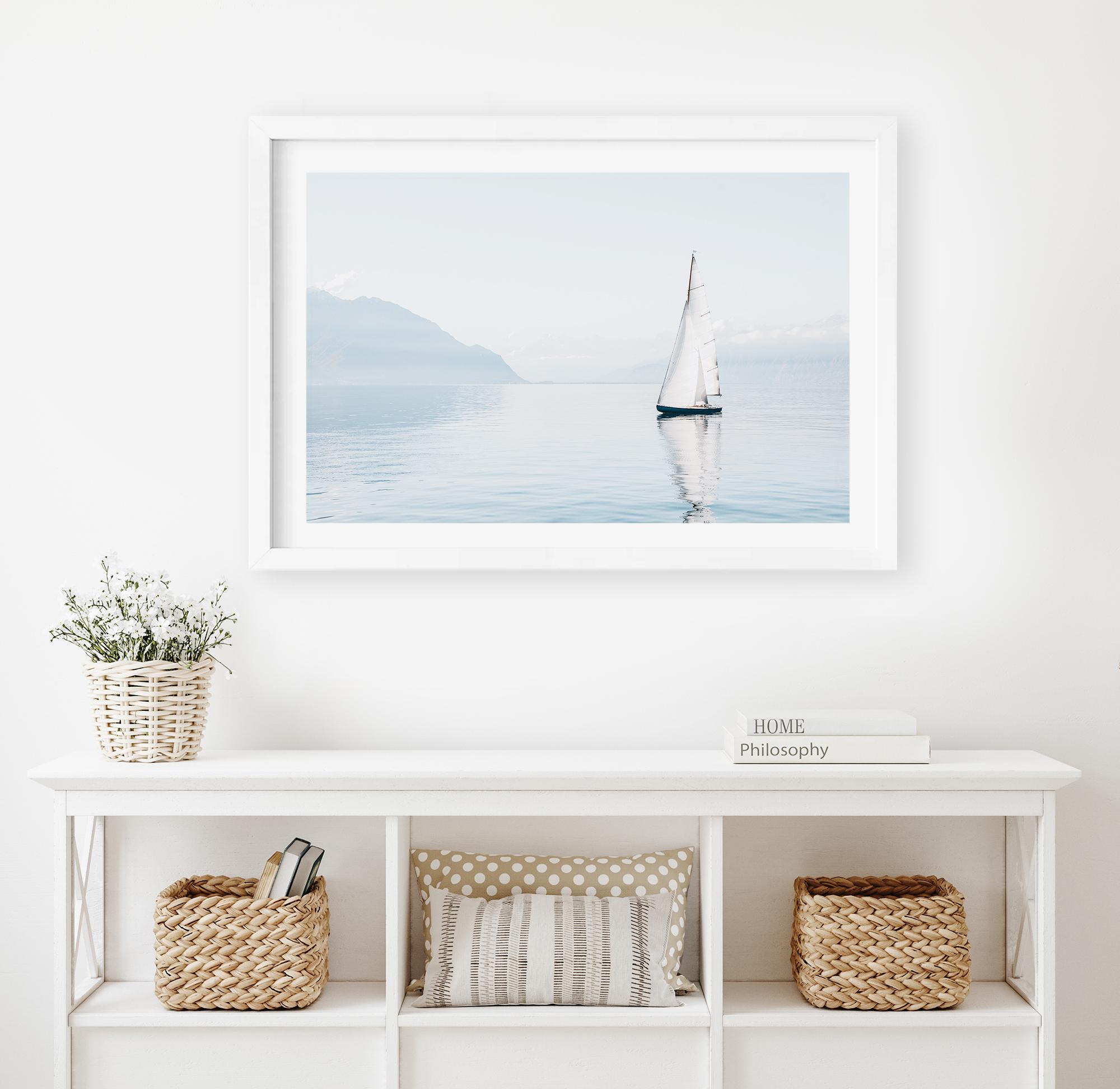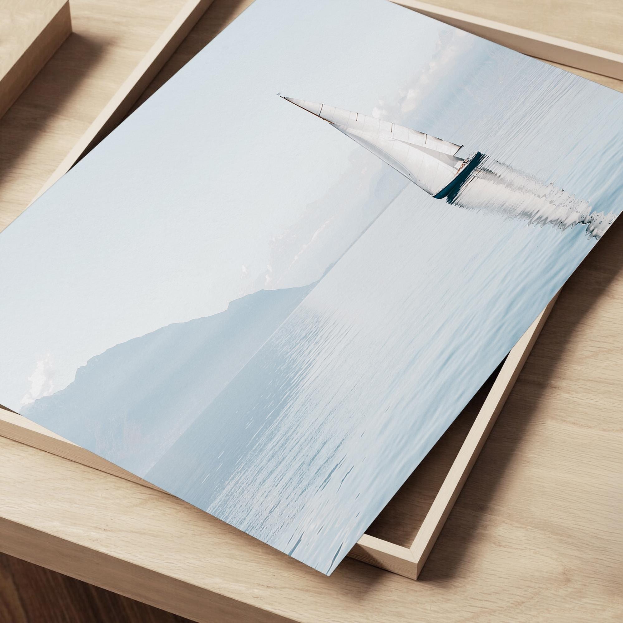 Blue Sailboat Wall Art: Modern Nautical Photography, Framed or Unframed