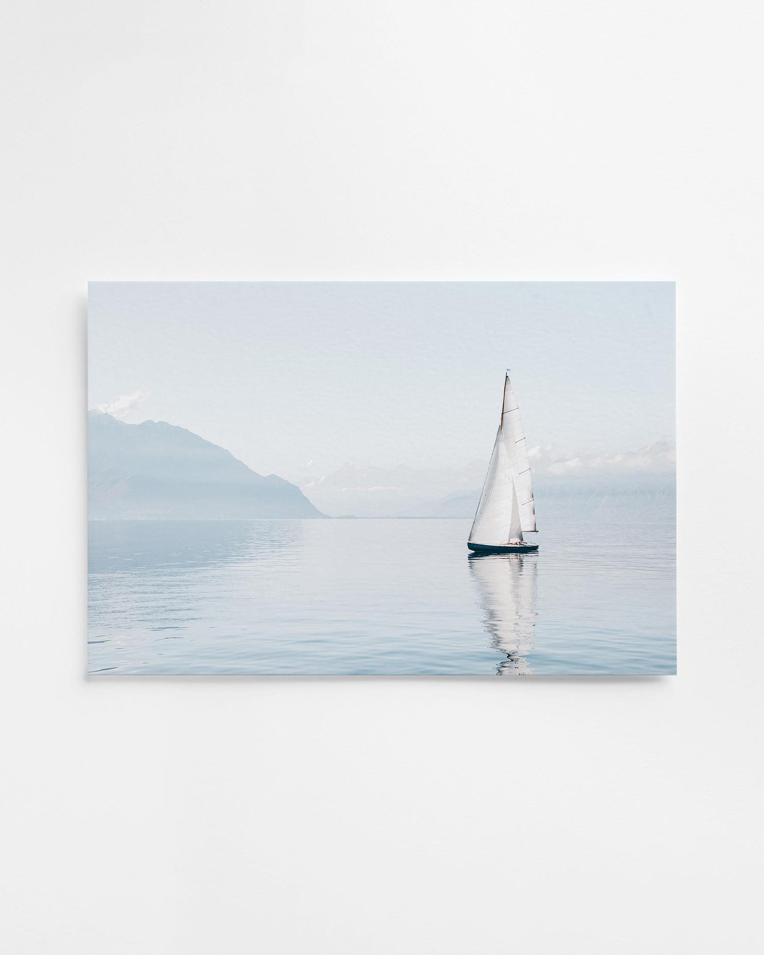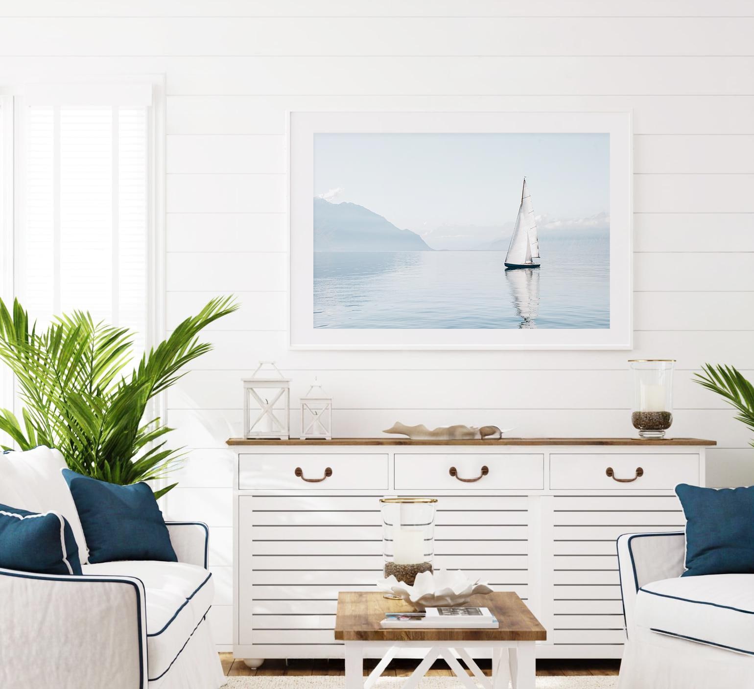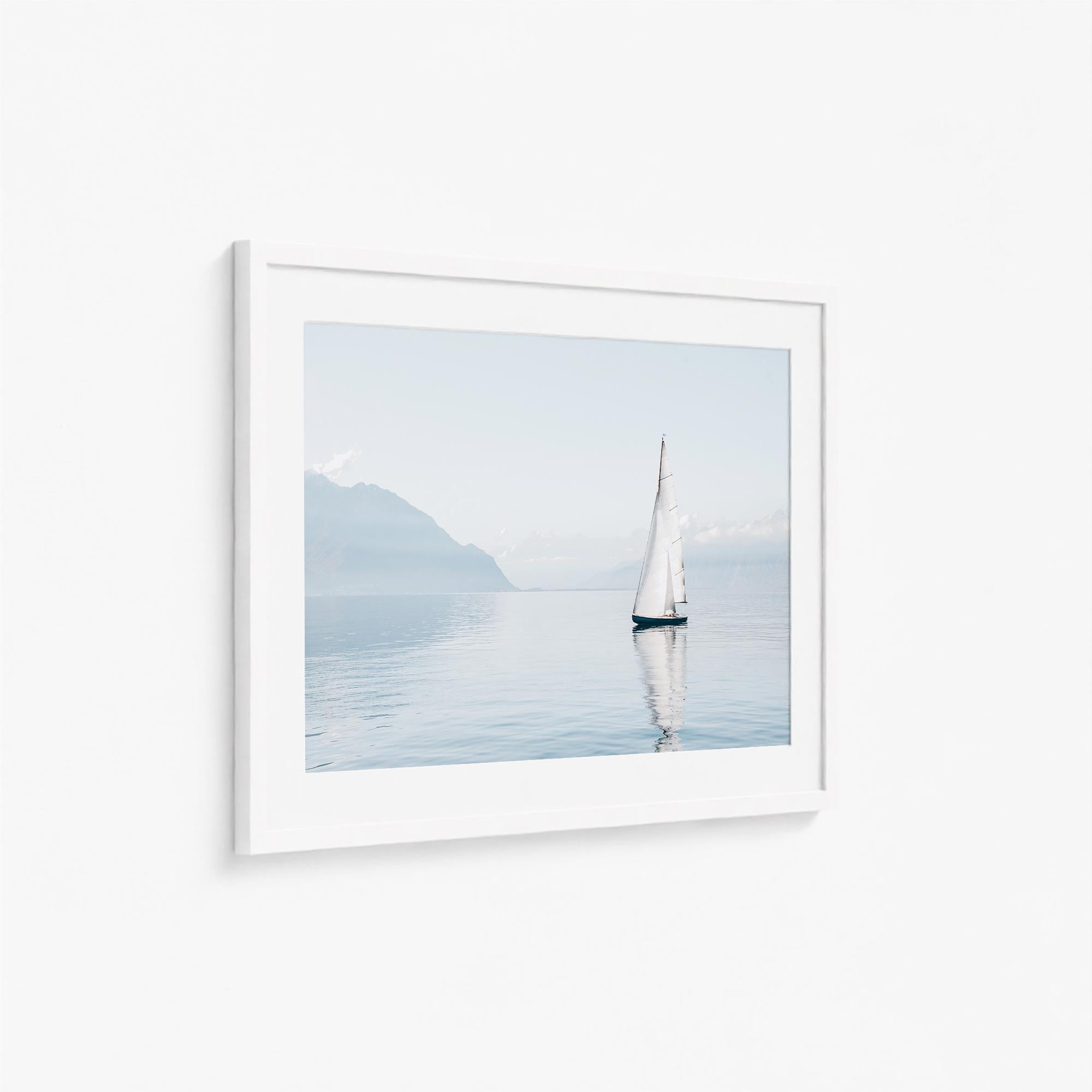 Blue Sailboat Wall Art: Modern Nautical Photography, Framed or Unframed