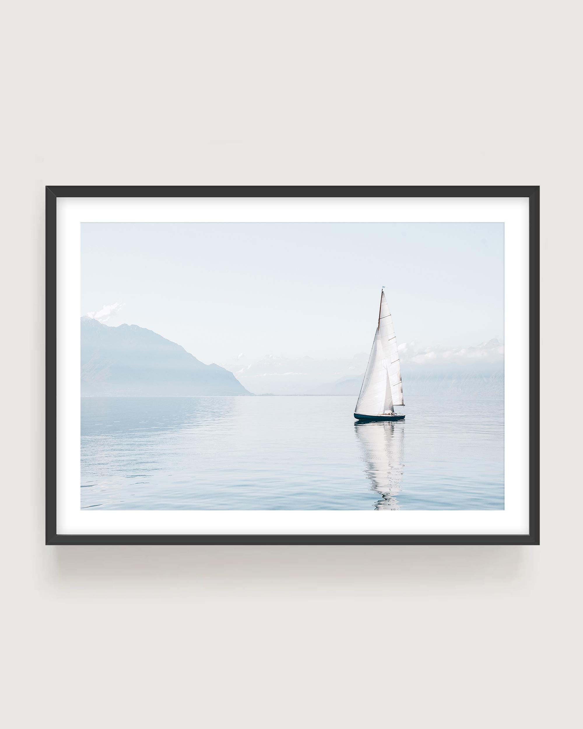 Blue Sailboat Wall Art - Modern Nautical Photography, Framed or Unframed