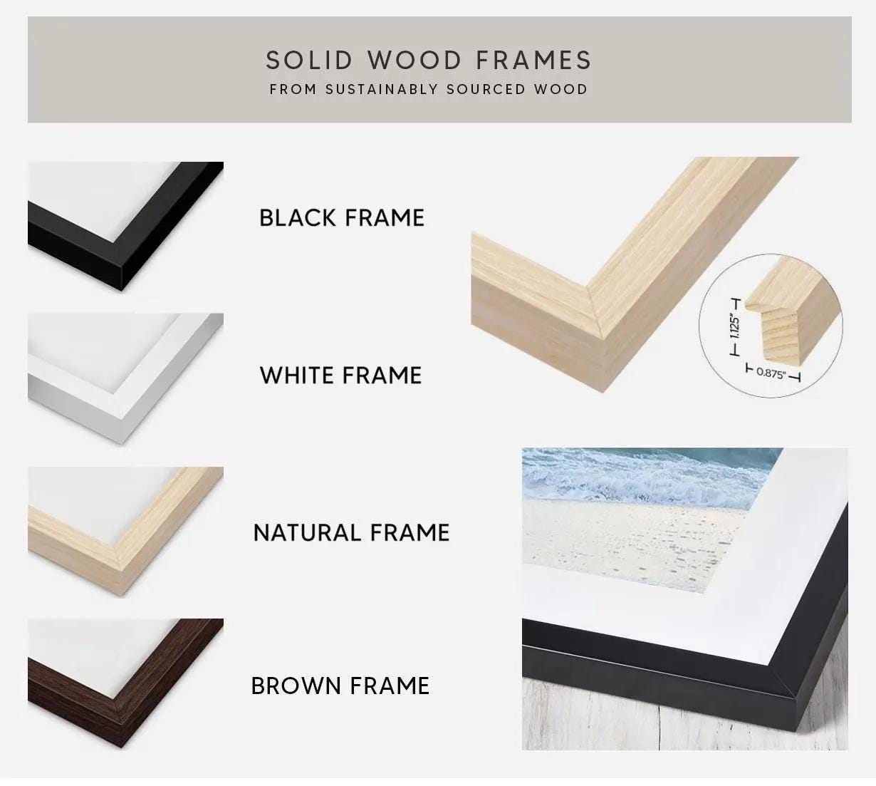 • Frames are crafted from solid, sustainable FSC® certified wood - beautifully refined, and built to last.