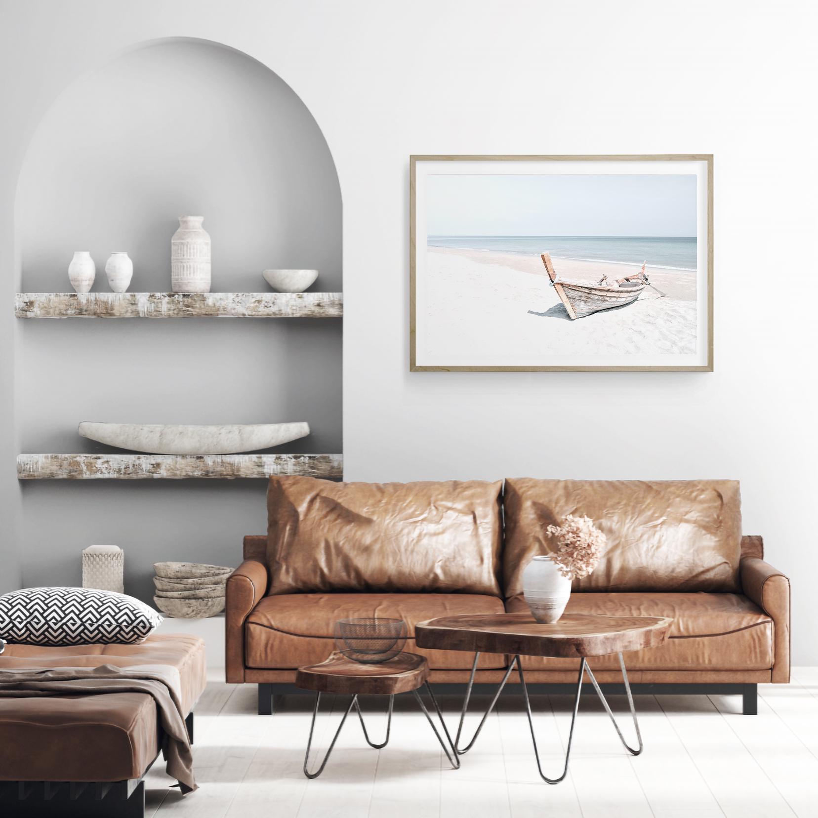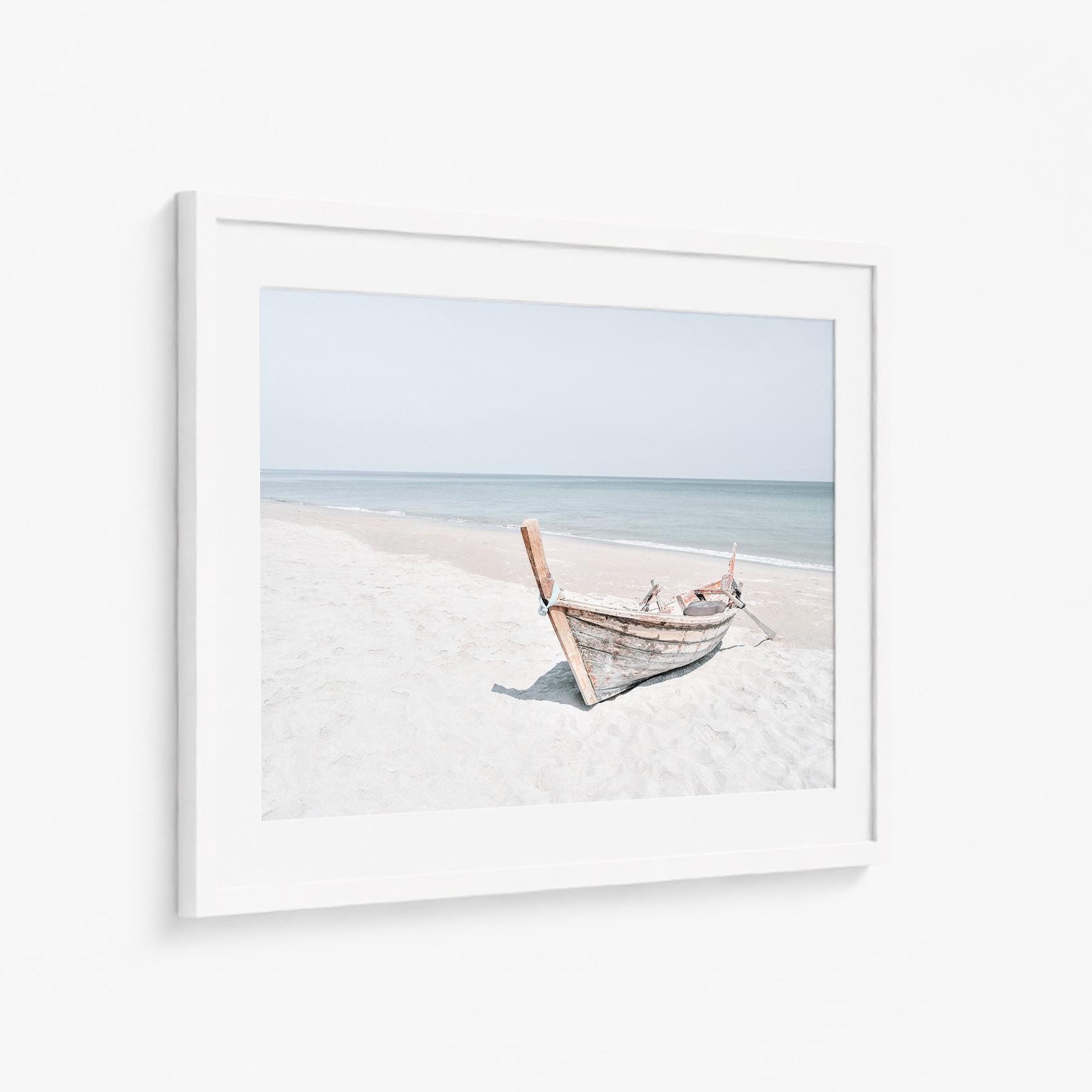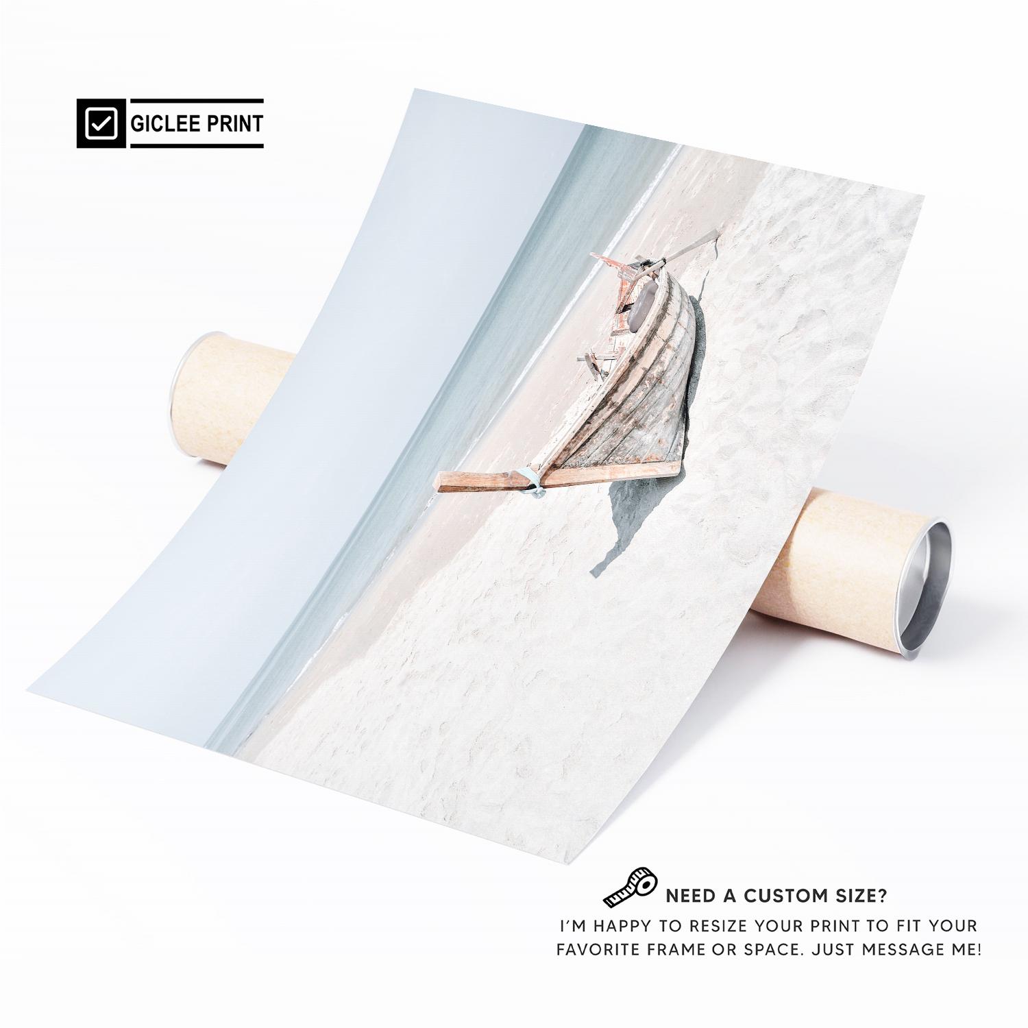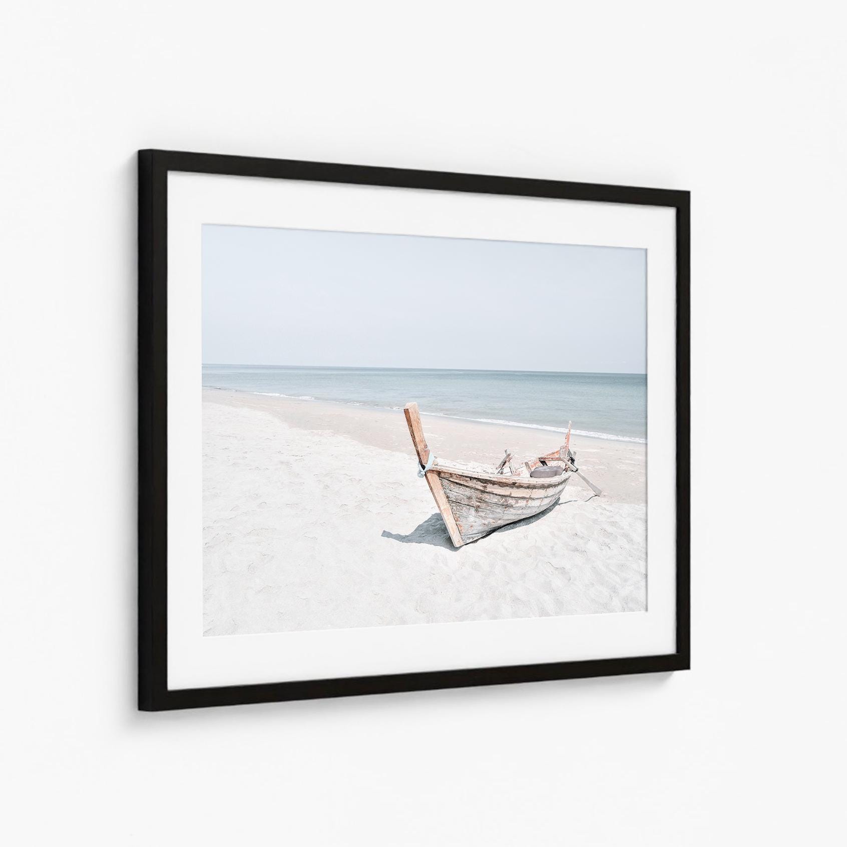 Coastal Boat Print, Minimalist Beach Fine Art, Framed or Unframed Large Horizontal Wall Decor