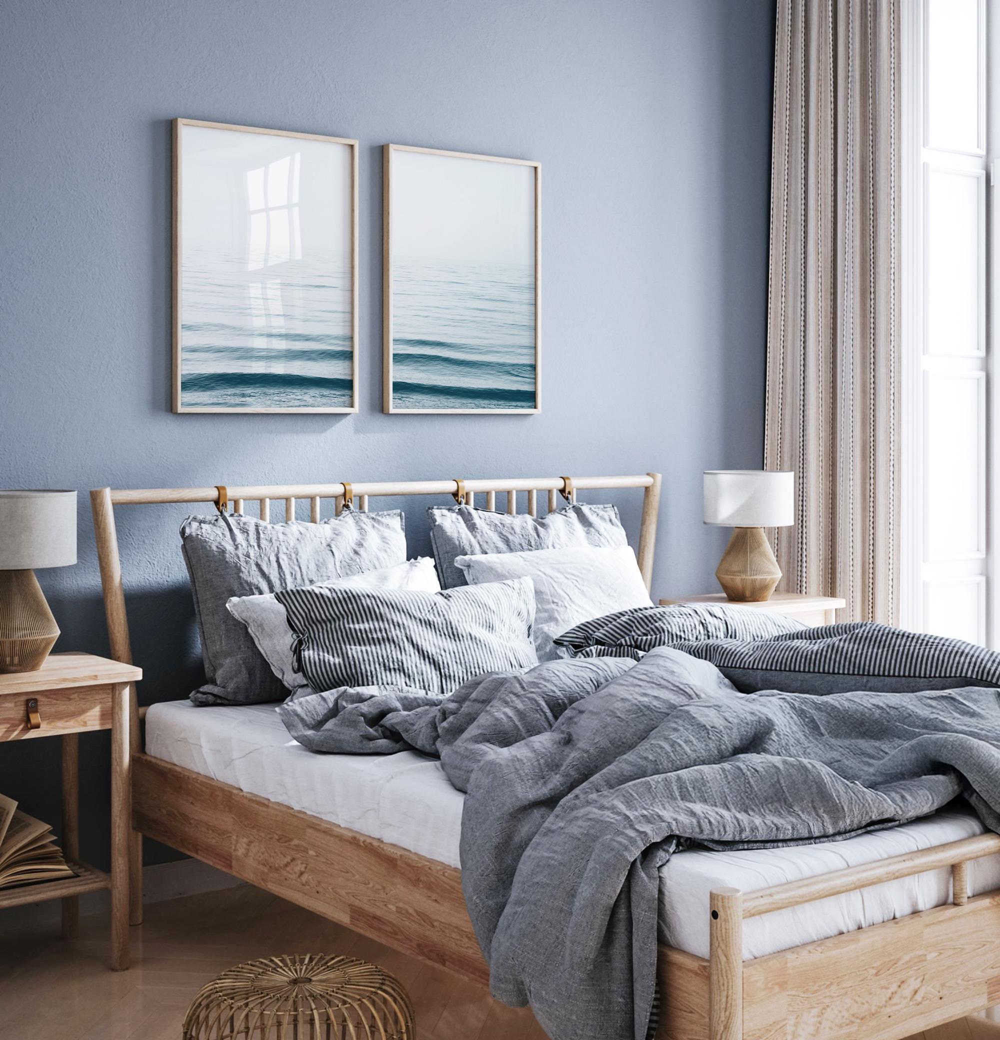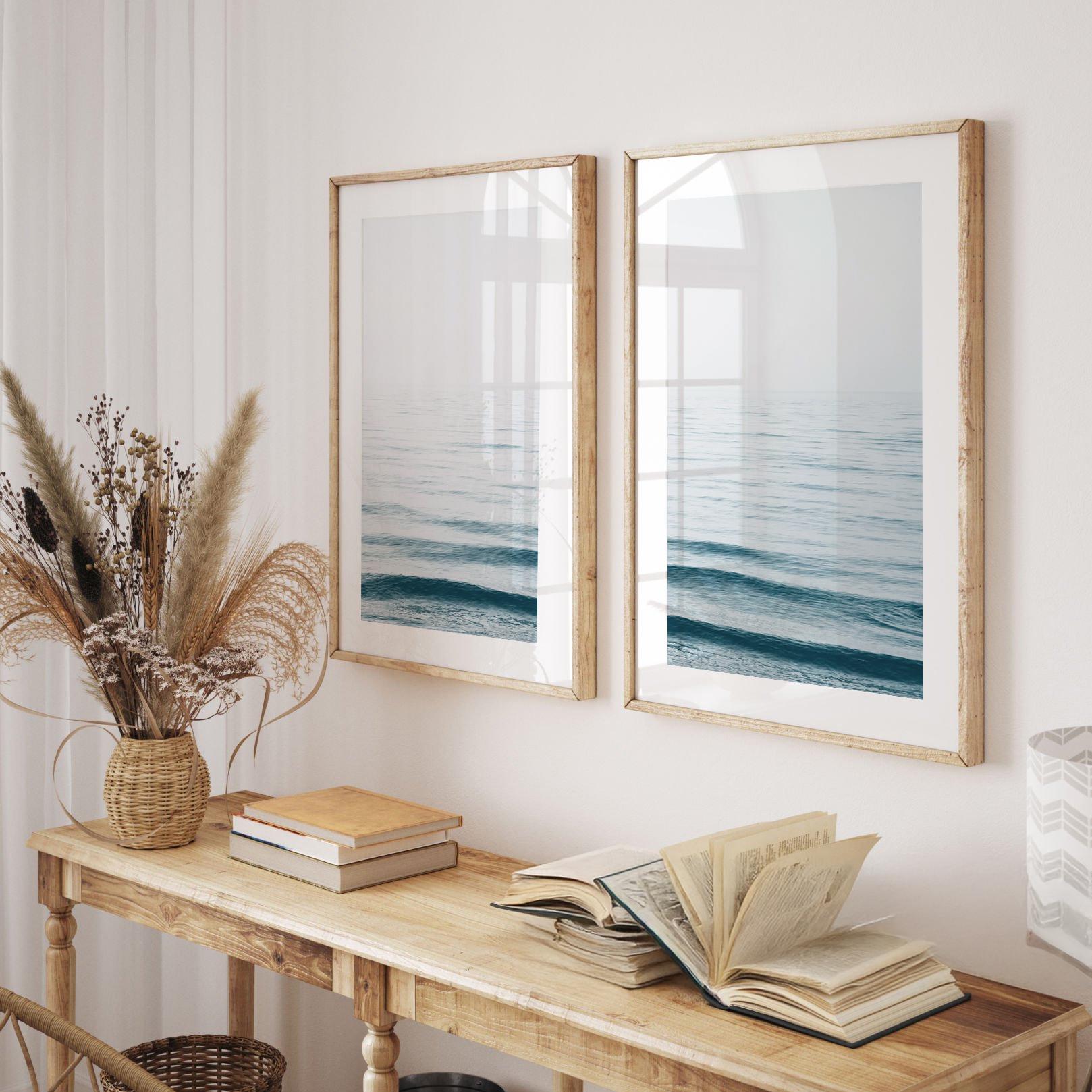 Bring calm coastal vibes into your home with this set of two blue ocean wave prints, a perfect pairing of movement and serenity for beach lovers and modern minimalists alike.