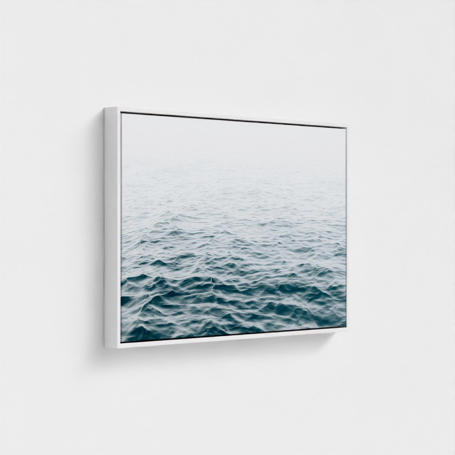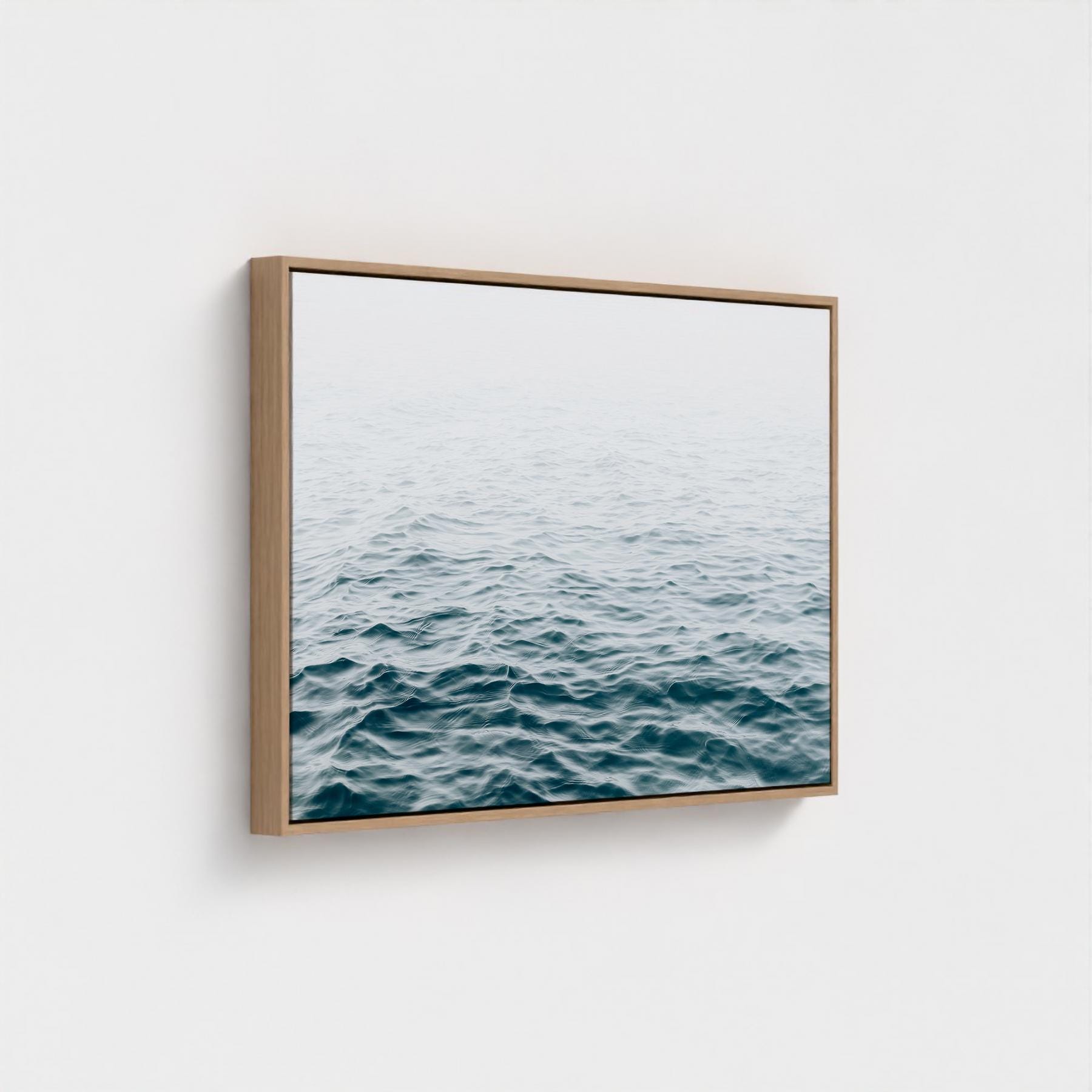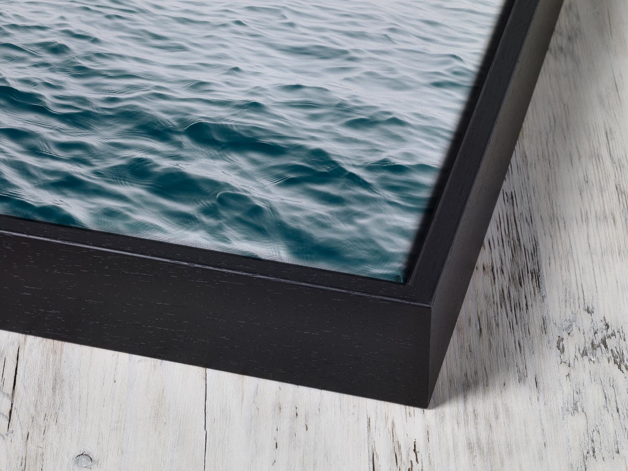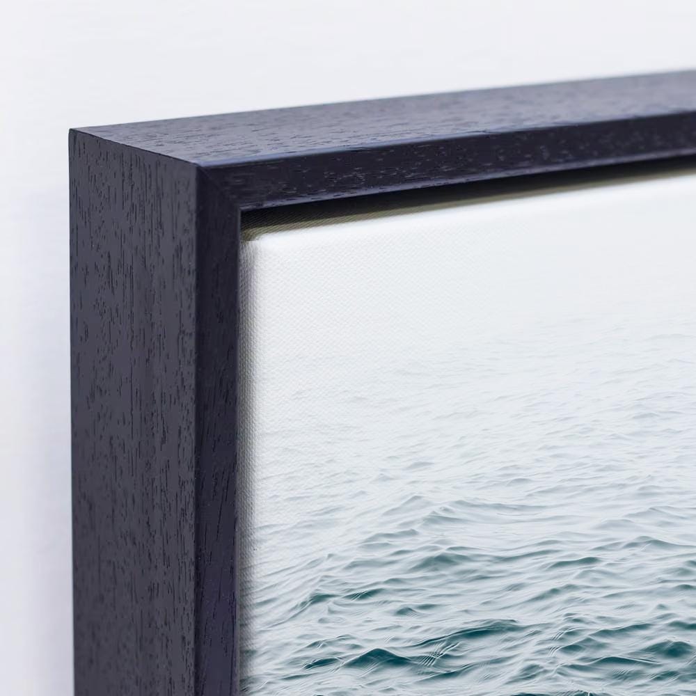 Giclee printed on premium 38mm stretched canvas, elegantly set within a classic floating frame. The thin wooden frame sitting 5mm from the canvas edge, creates a striking floating effect.