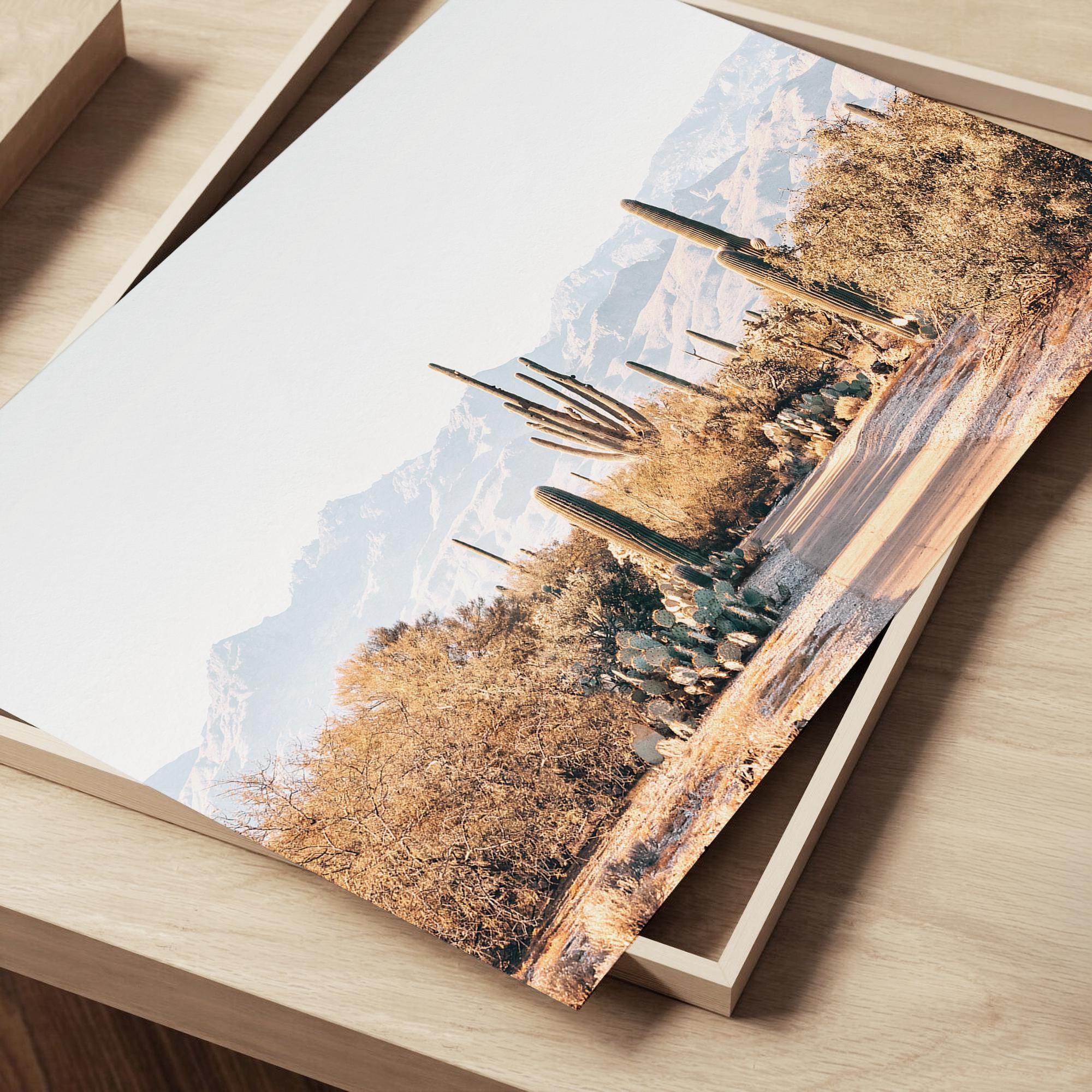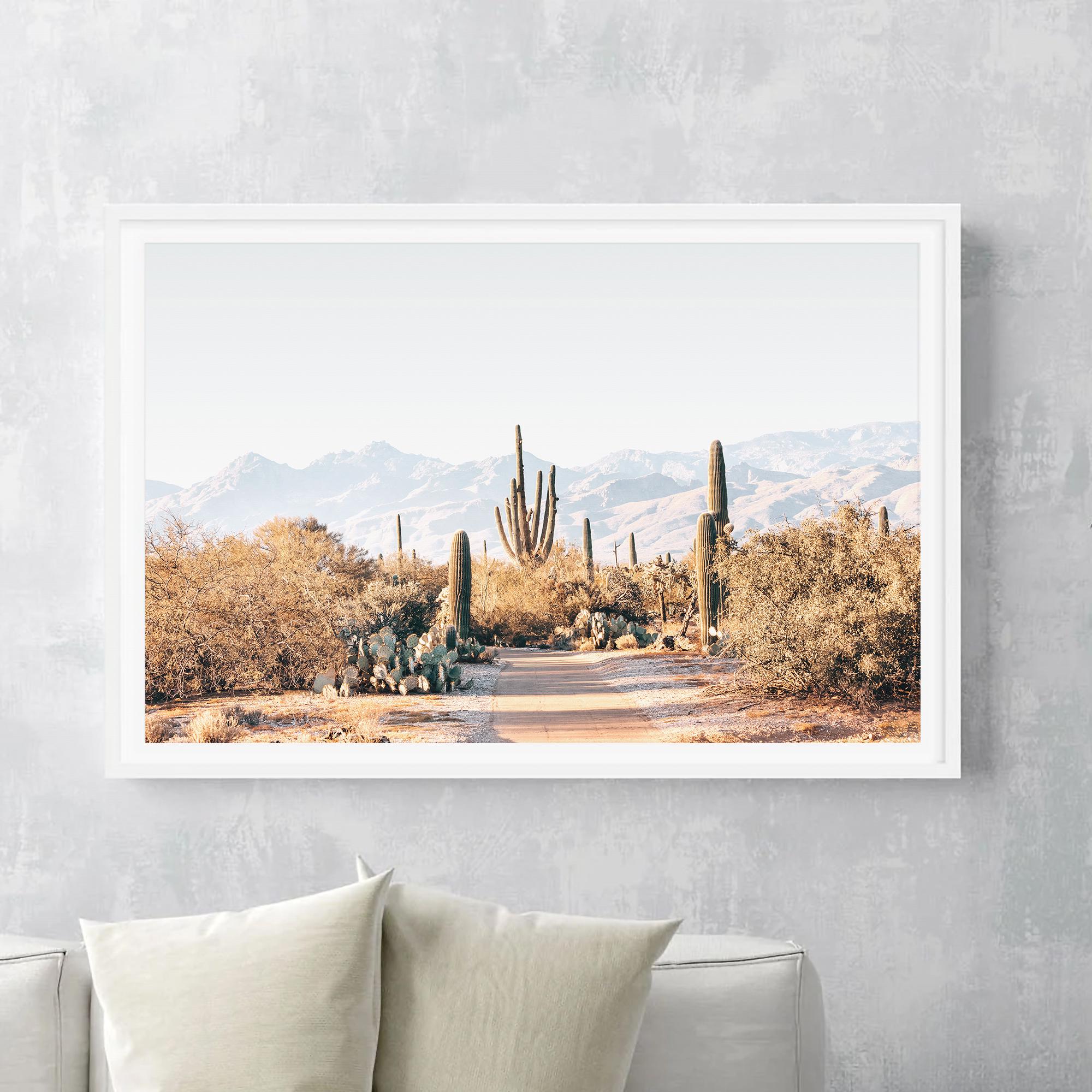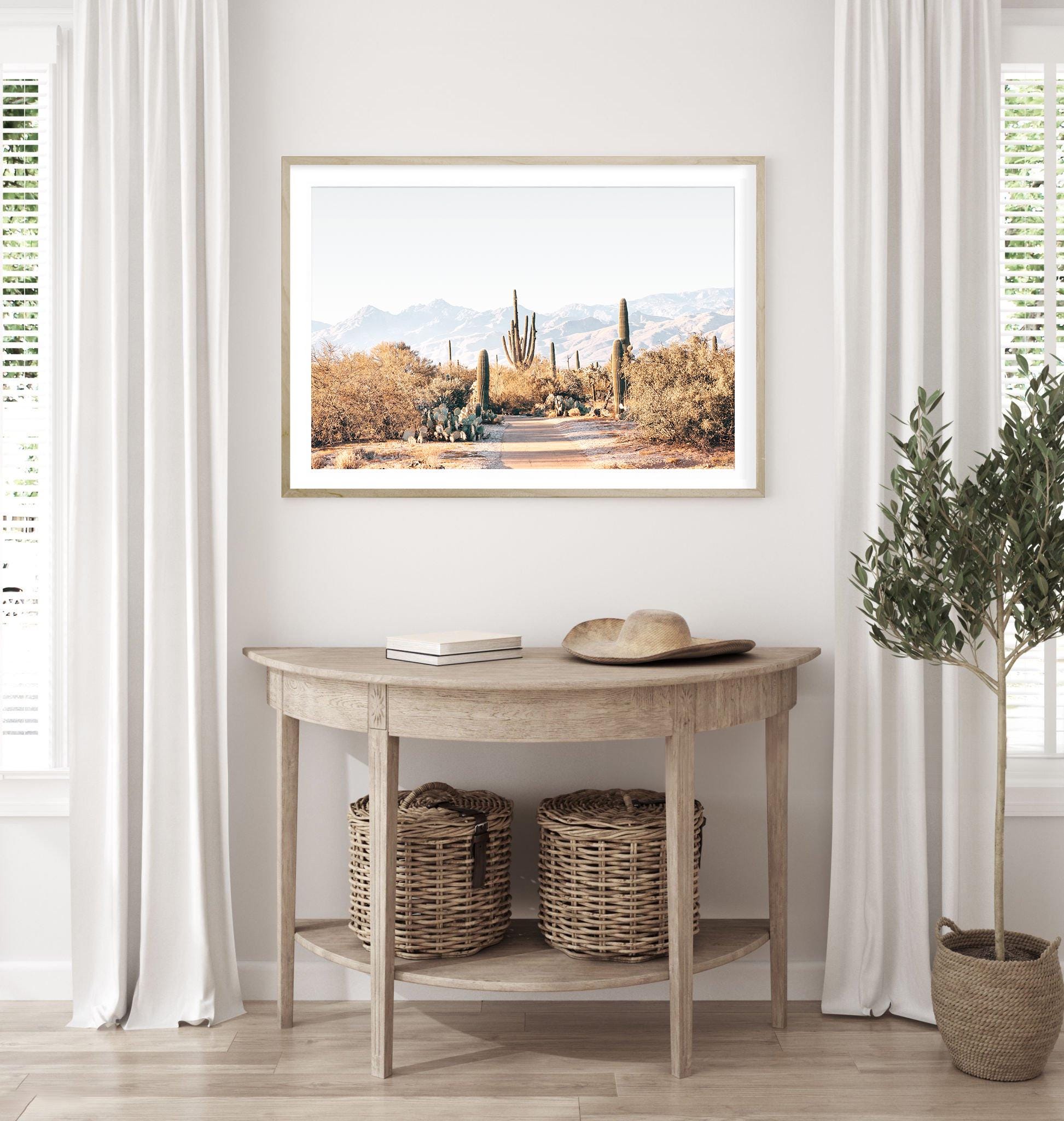 This warm, sandy-hued cactus print brings a calm, refined desert atmosphere to any space. Its symmetrical, architectural composition offers a polished, designer look that pairs beautifully with modern, minimalist, or boho-neutral interiors. A serene statement piece for entryways, large walls, or curated gallery sets.