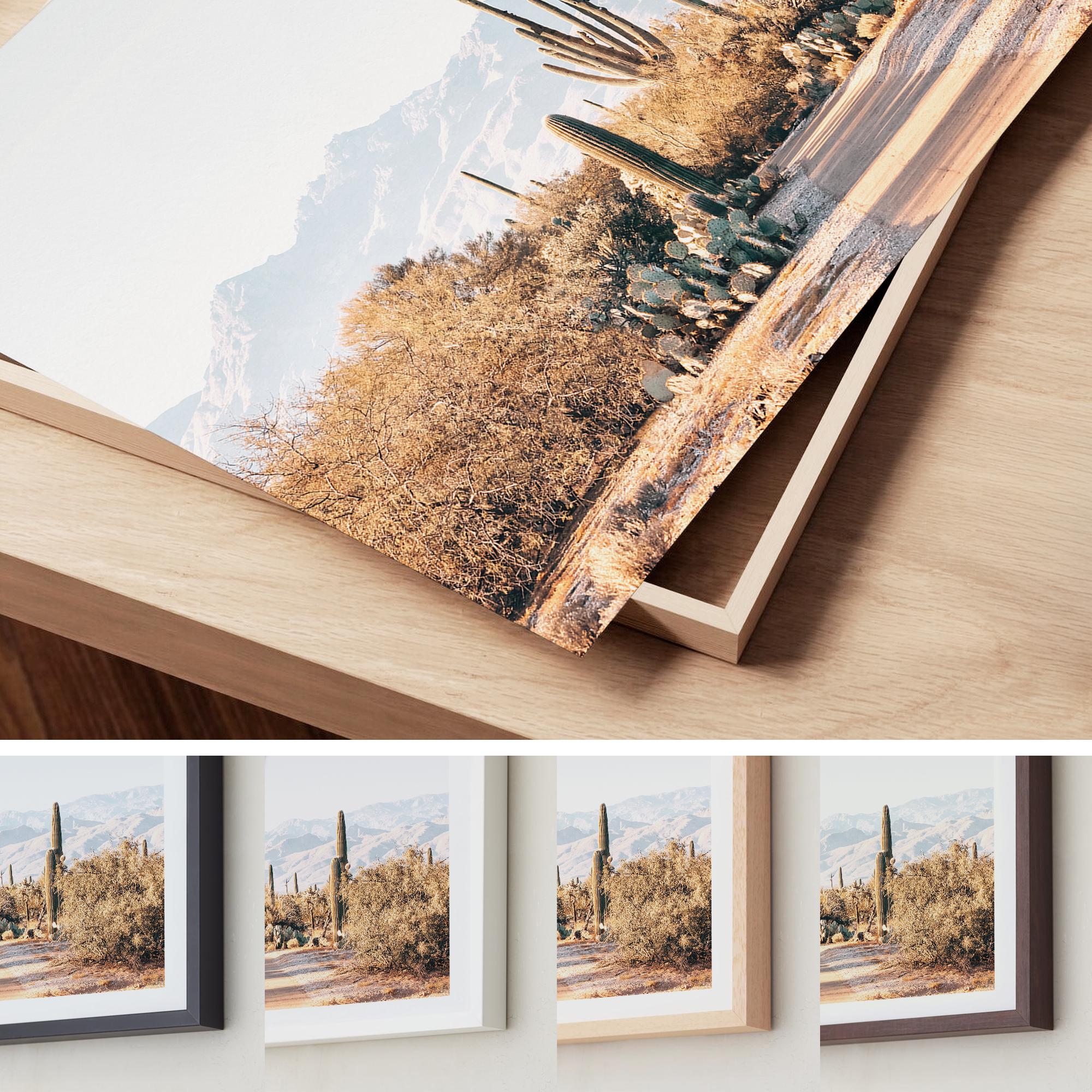 • Sizes refer to the visible print area inside the frame. Matted options keep the same frame size, but reduce the visible artwork area slightly.