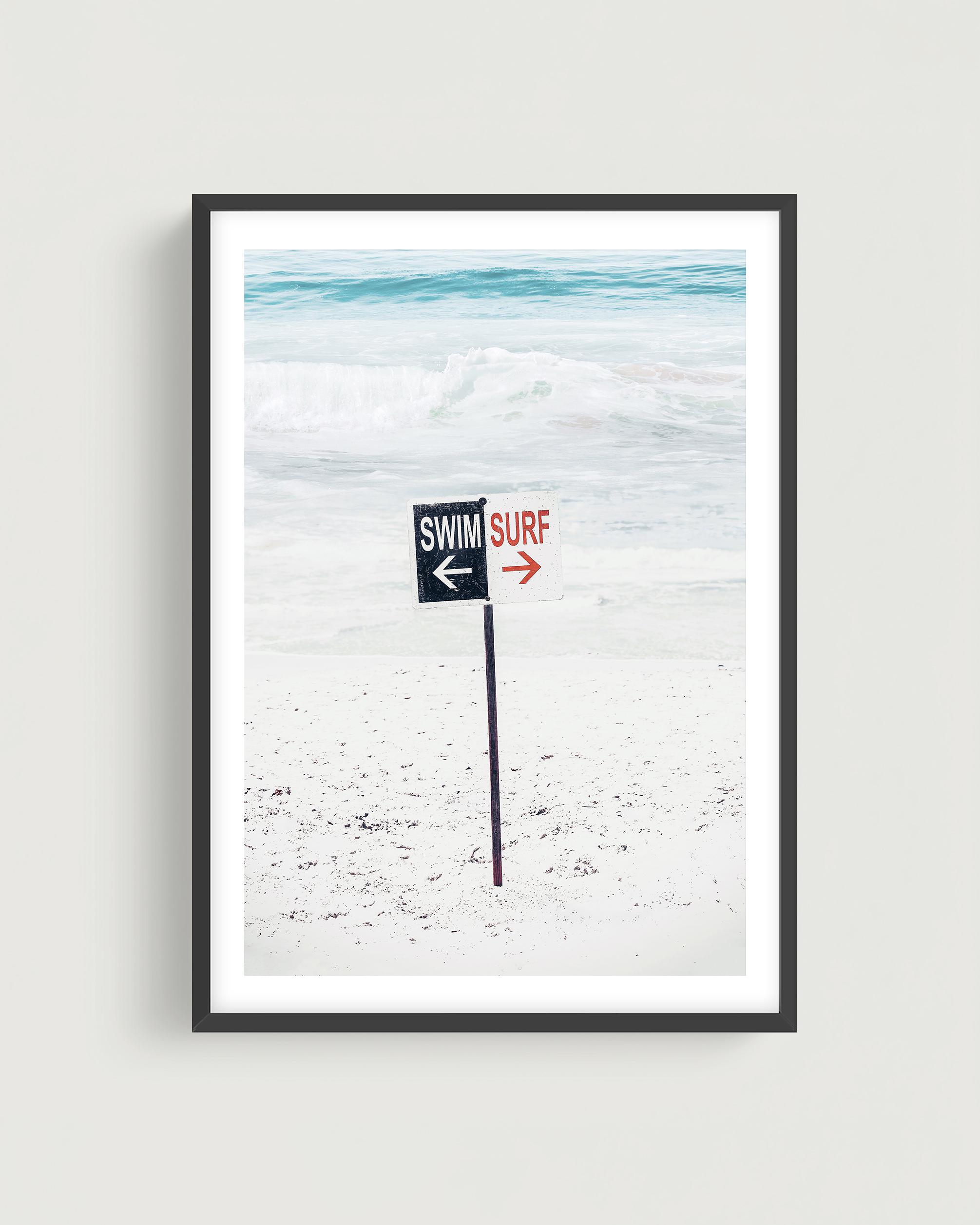 Surf Beach Sign Photography Print, Framed or Unframed Modern Coastal Wall Art