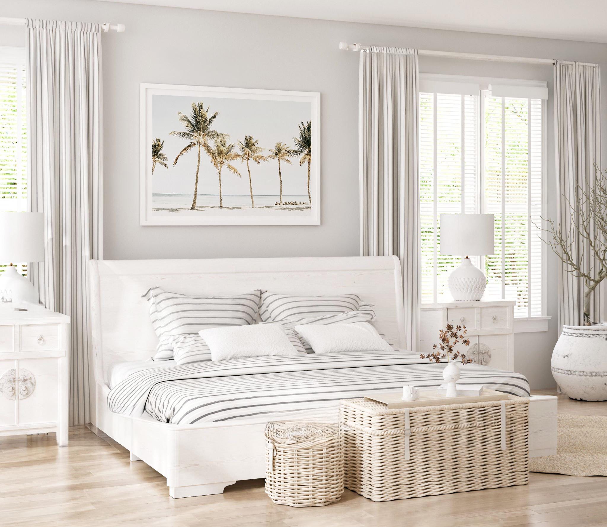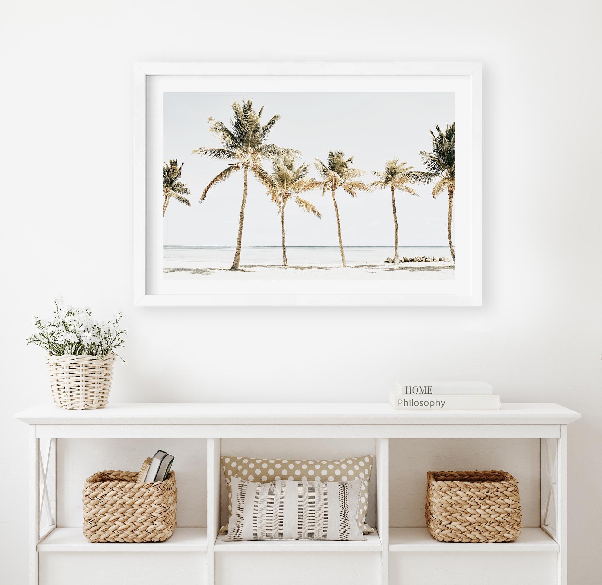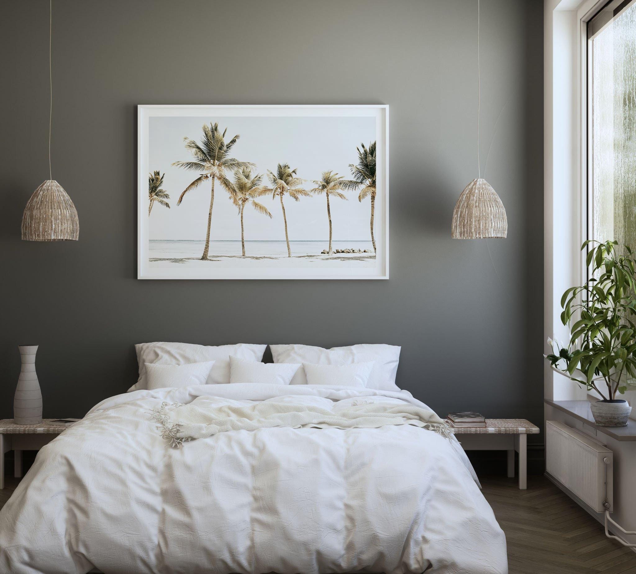 Tropical Palm Tree Beach Print, Coastal Photography, Framed or Unframed