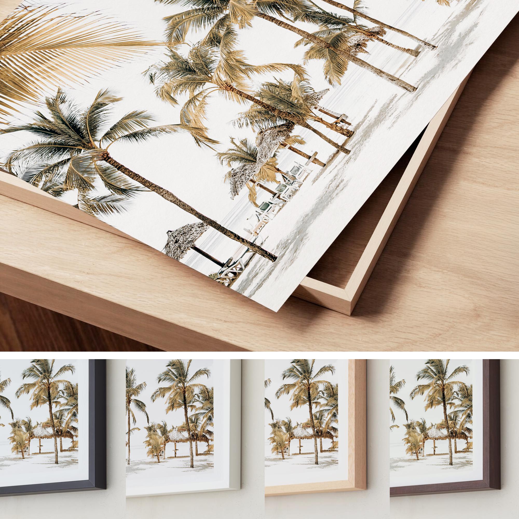 Tropical Palm Tree Beach Print - Golden Sunlight Coastal Photography