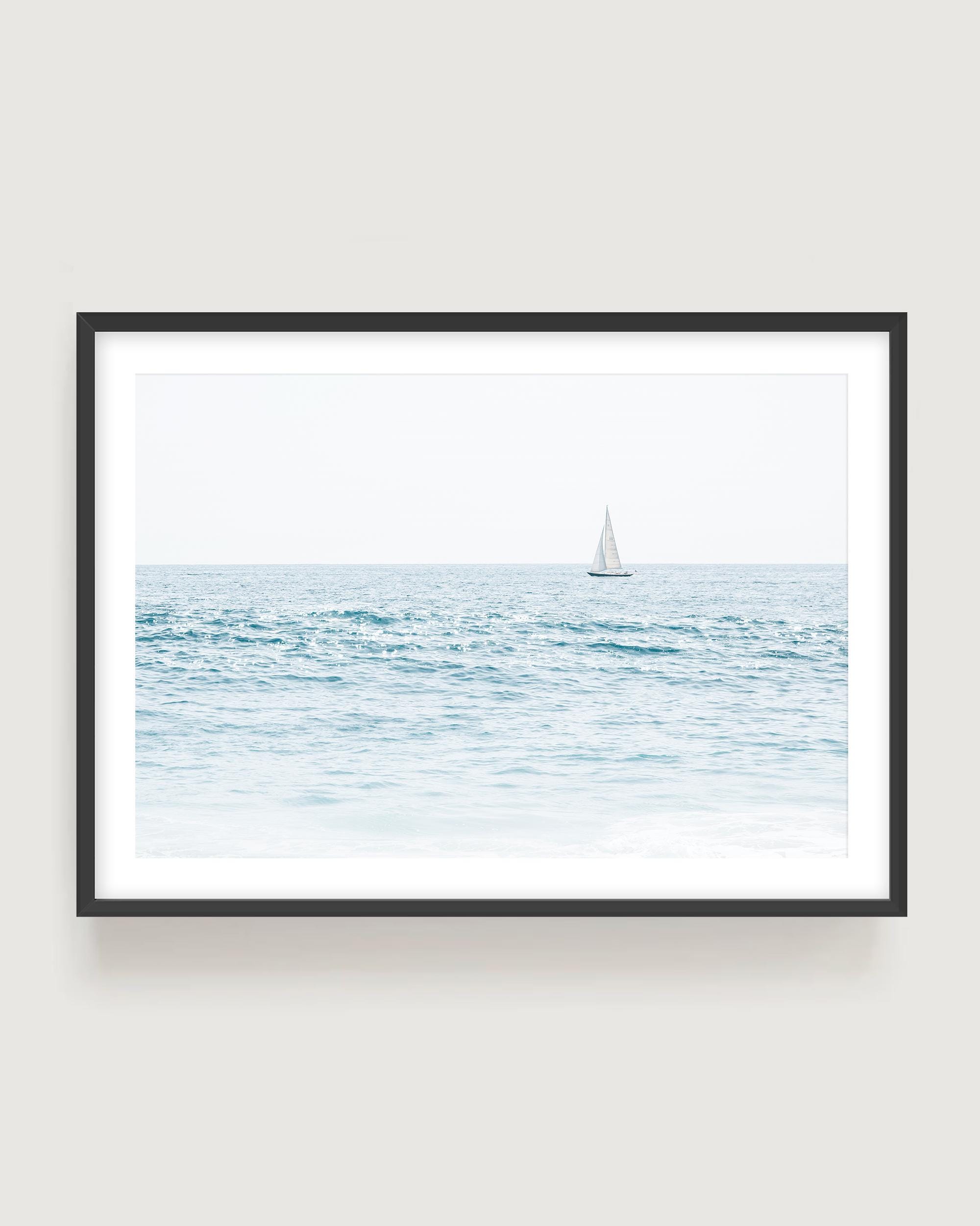 Minimalist Sailboat Seascape Wall Art Print, Coastal Nautical Photo
