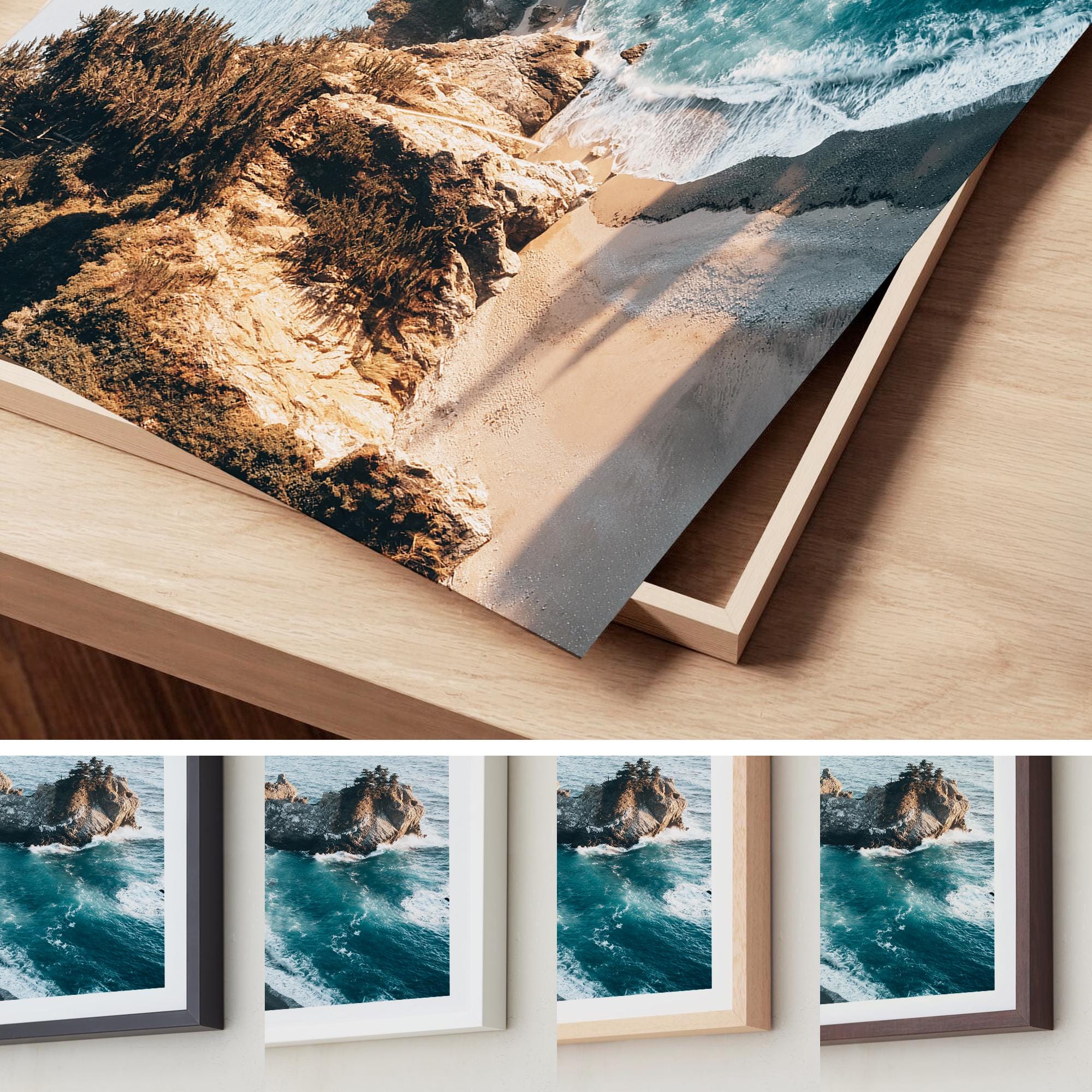 • Sizes refer to the visible print area inside the frame. Matted options keep the same frame size, but reduce the visible artwork area slightly.