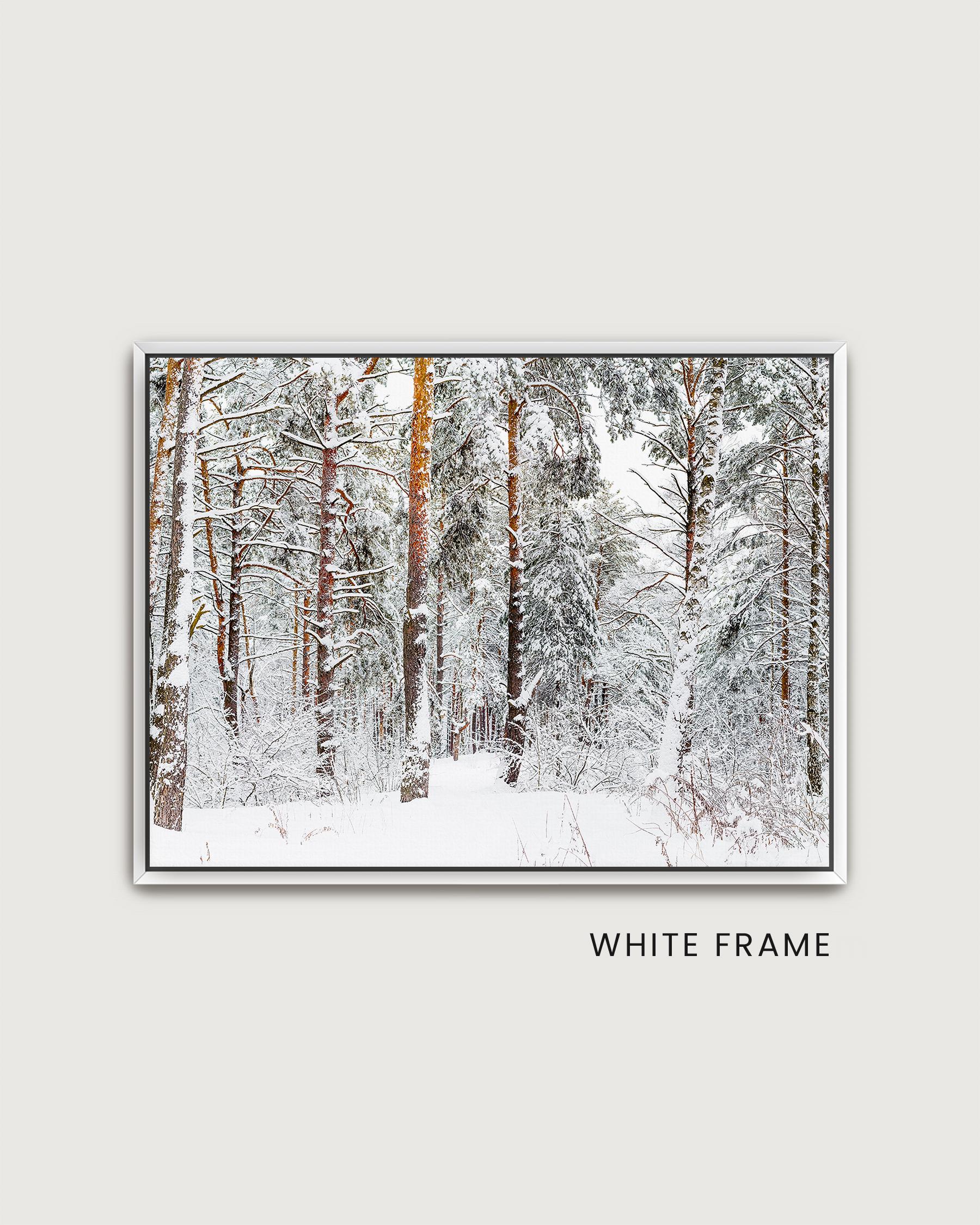 Hand-stretched over solid wood stretcher bars and mounted inside the floating gallery frame, for modern, high-end look. Includes elegant black backboard and preinstalled hanging wire. Canvas depth: 1.5", floating frame depth: 1.88.