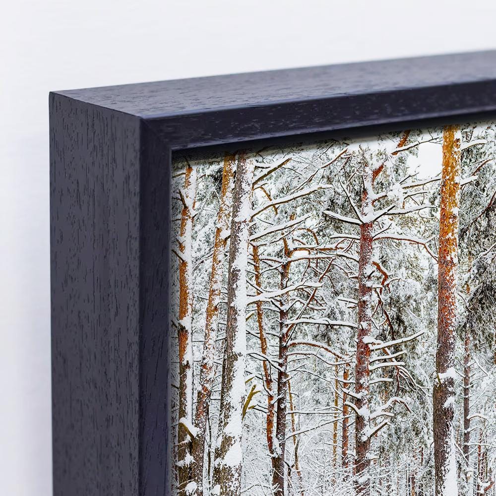 • Framed canvas are crafted from sustainably sourced wood. A thin, frame sits 5mm from the canvas edge, creating a floating effect.