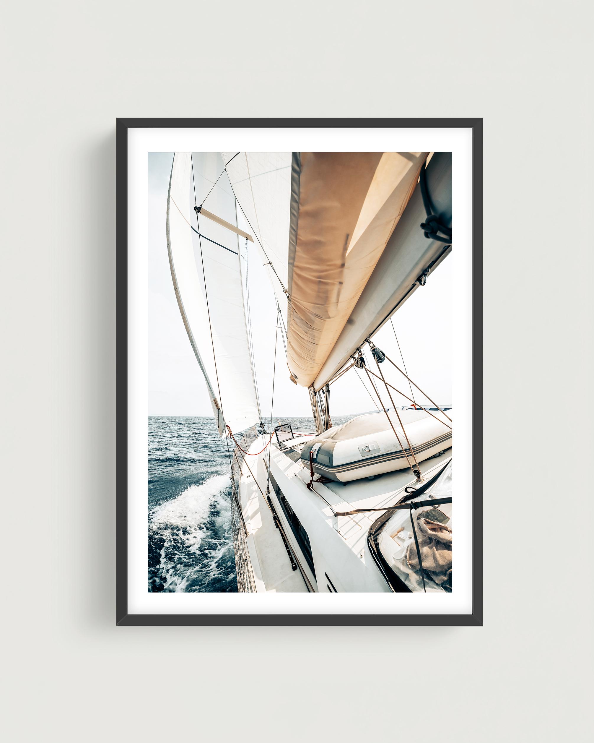 Sailing Yacht Deck Photography Print, Nautical Coastal Wall Art, Framed or Unframed