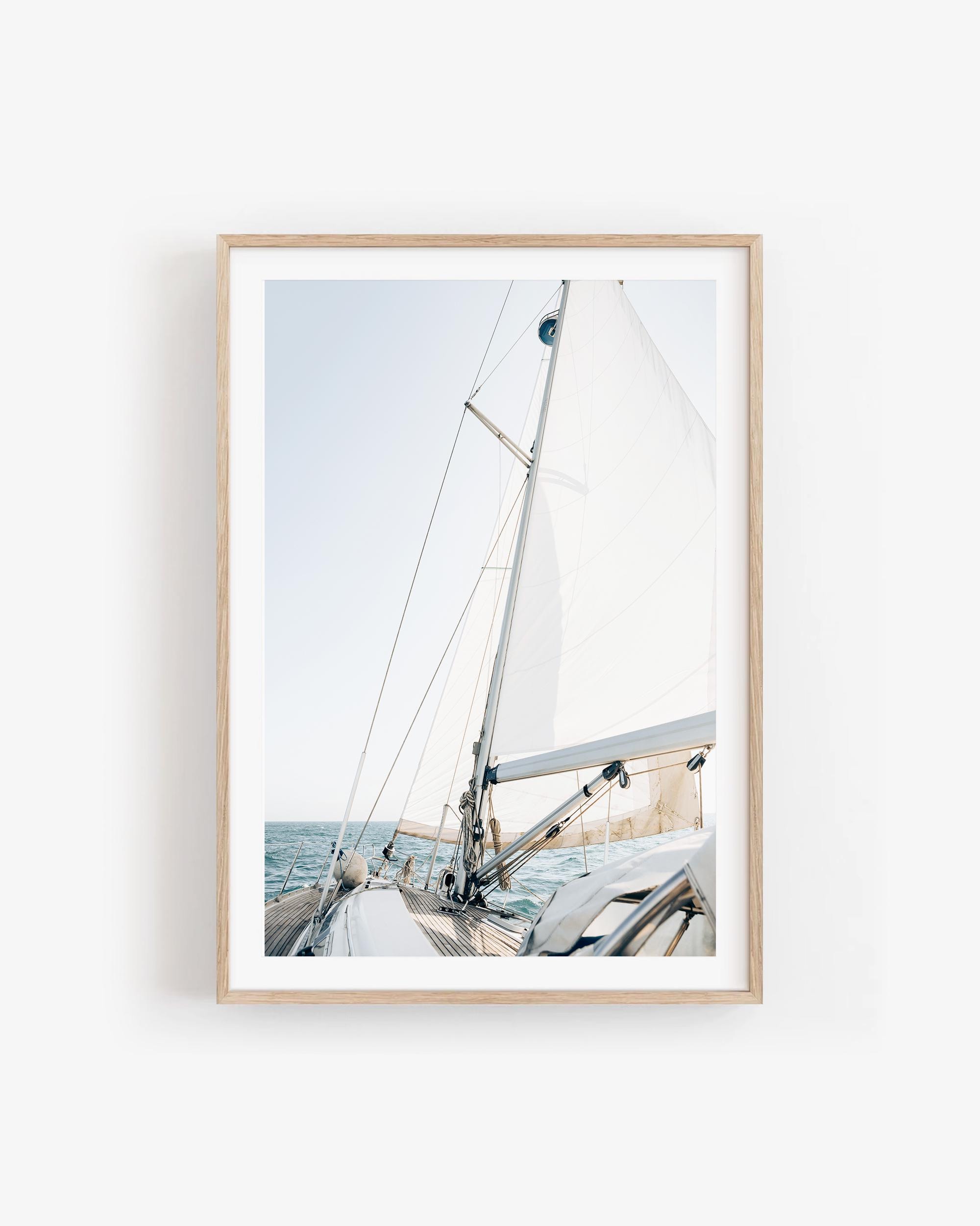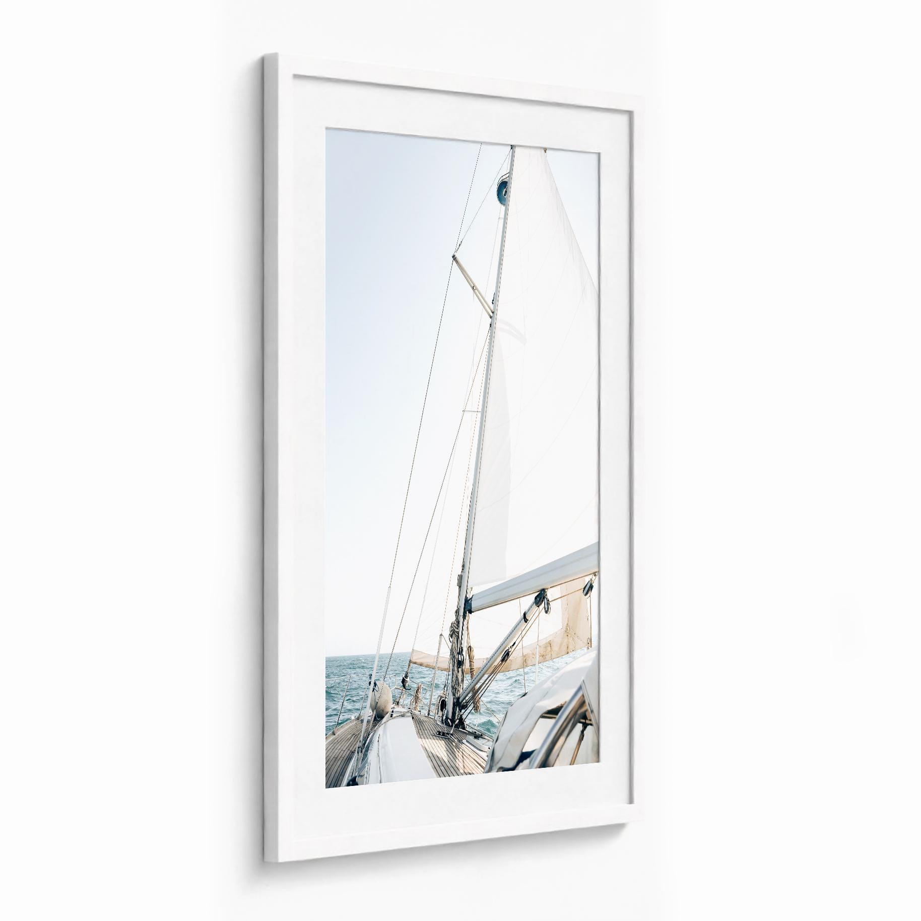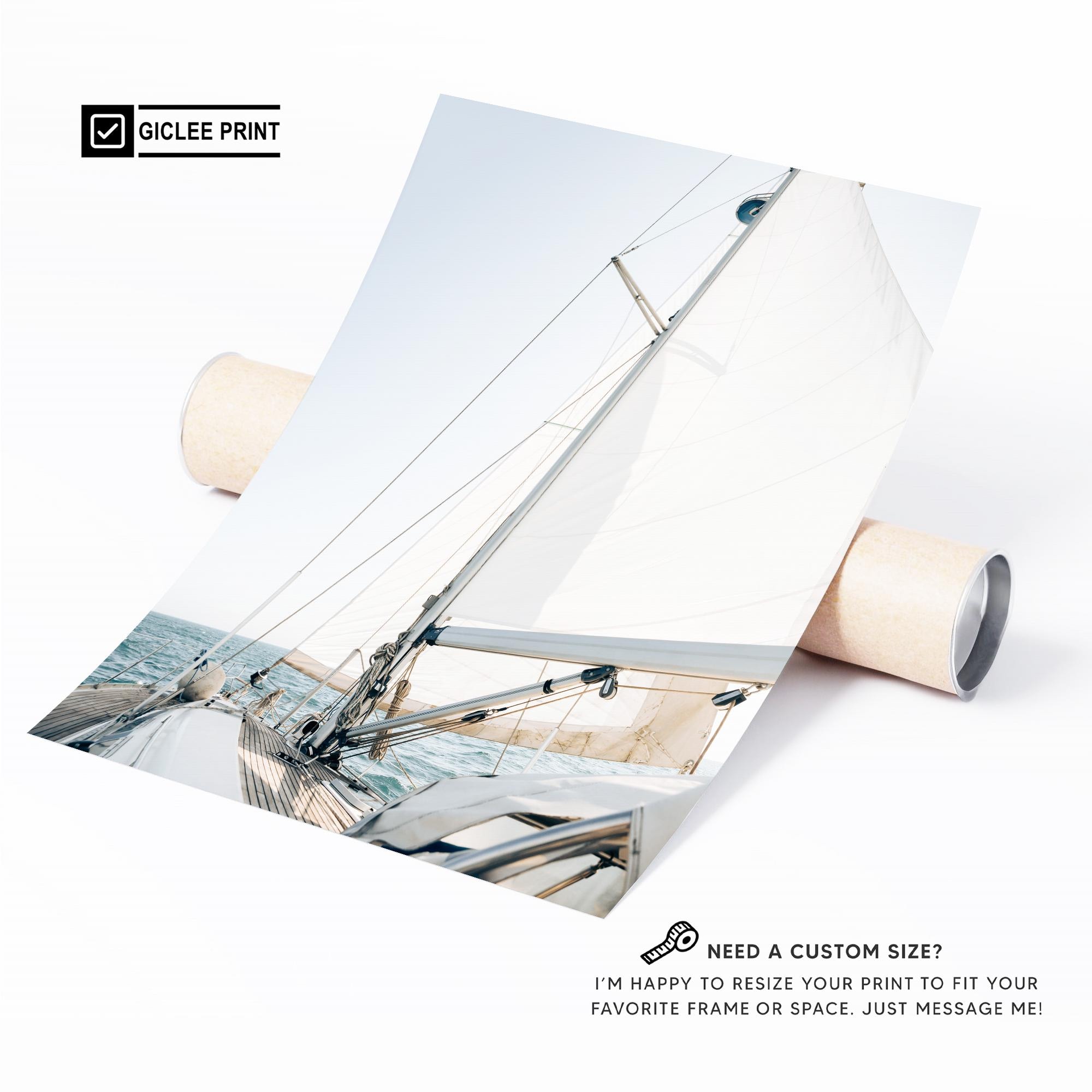 White Sailboat Fine Art Print, Coastal Nautical Wall Art Framed or Unframed