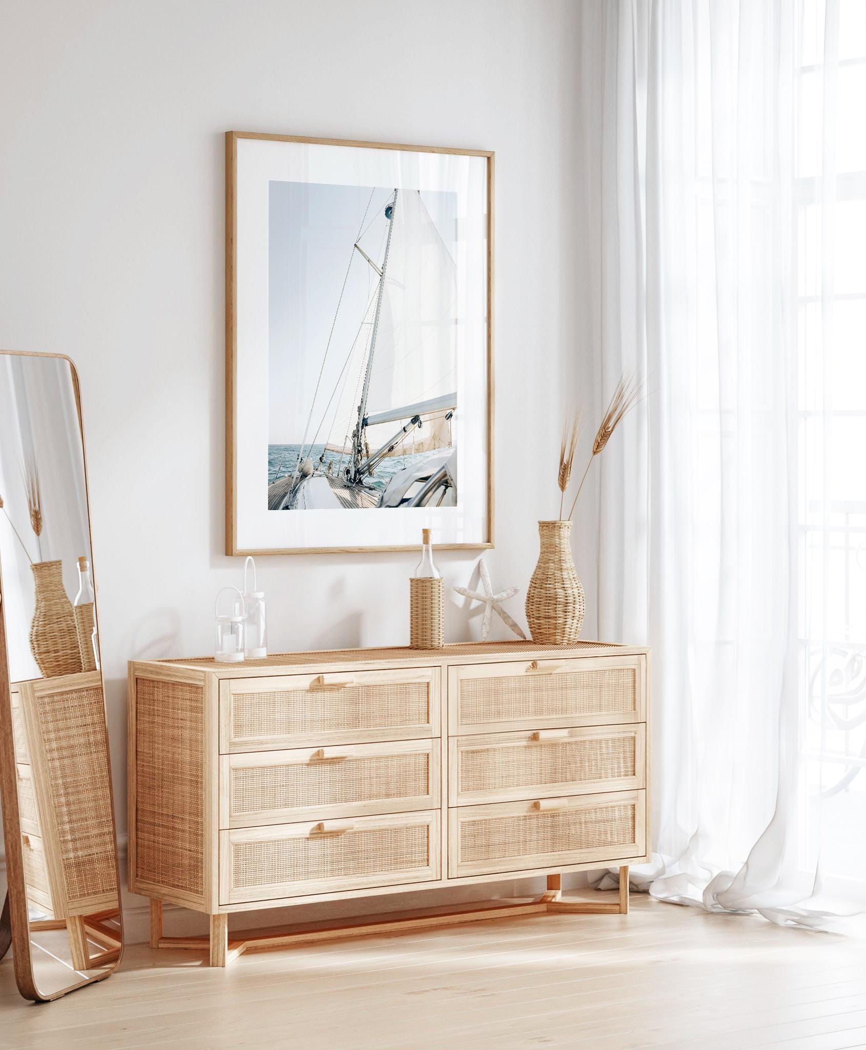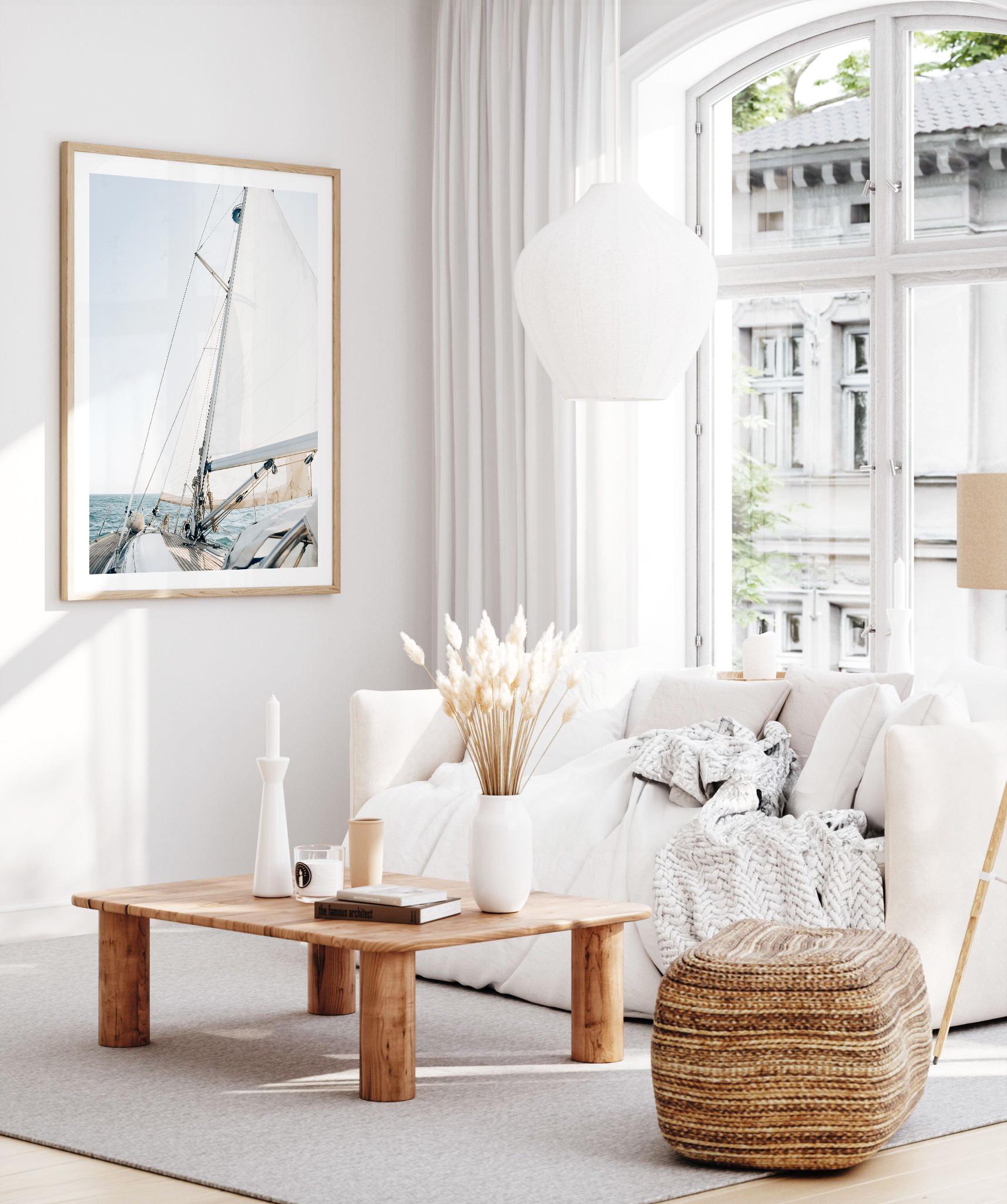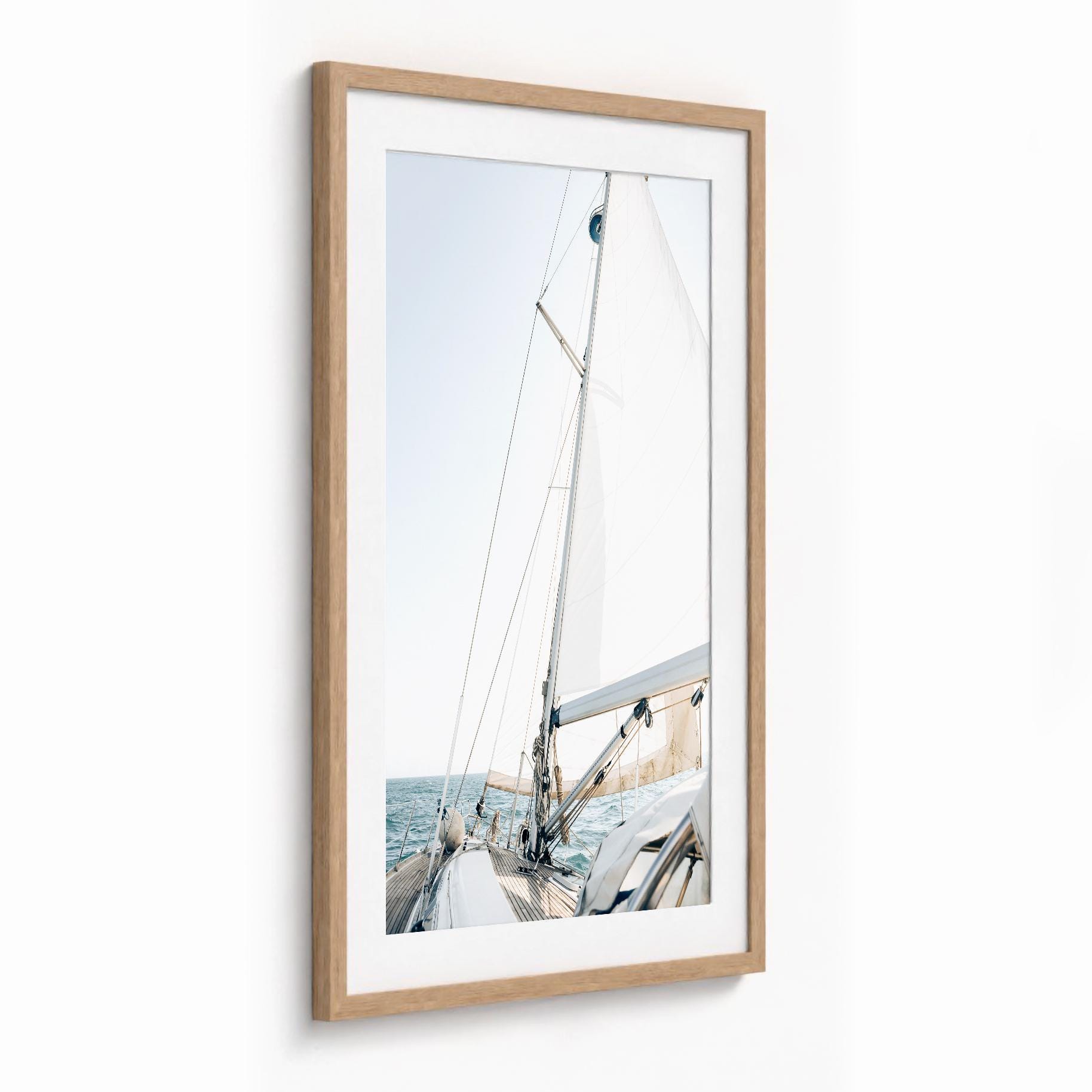 White Sailboat Fine Art Print, Coastal Nautical Wall Art Framed or Unframed