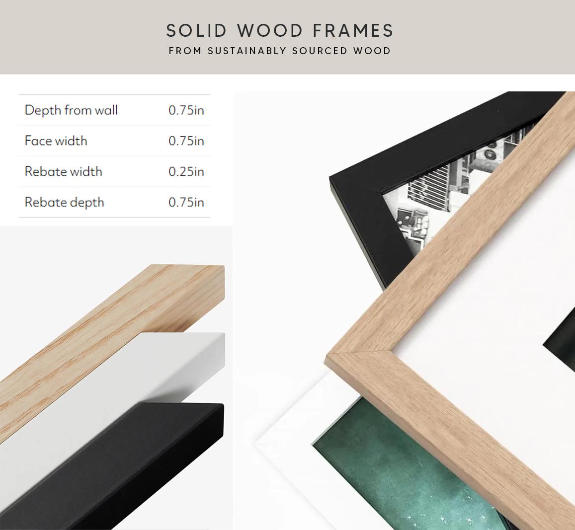 • Frames are crafted from solid, sustainable FSC®-certified wood (0.8" thick) - lightweight, beautifully refined, and built to last.