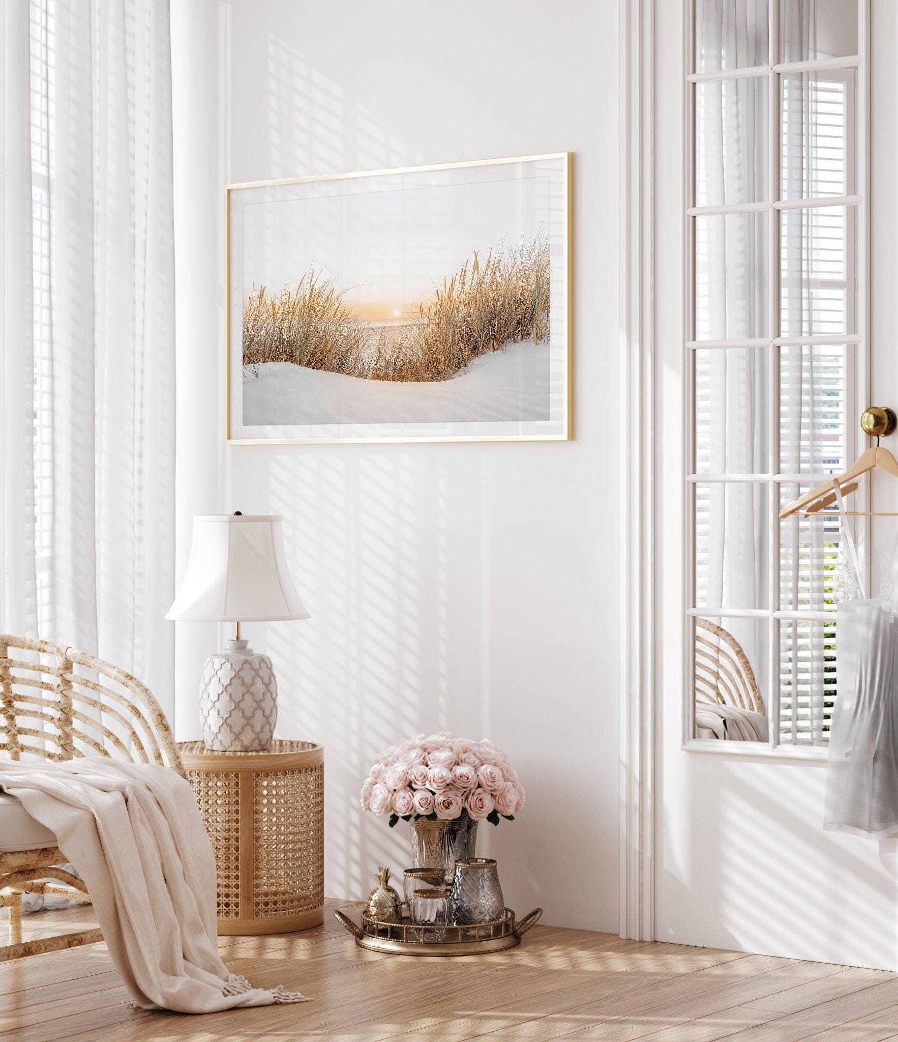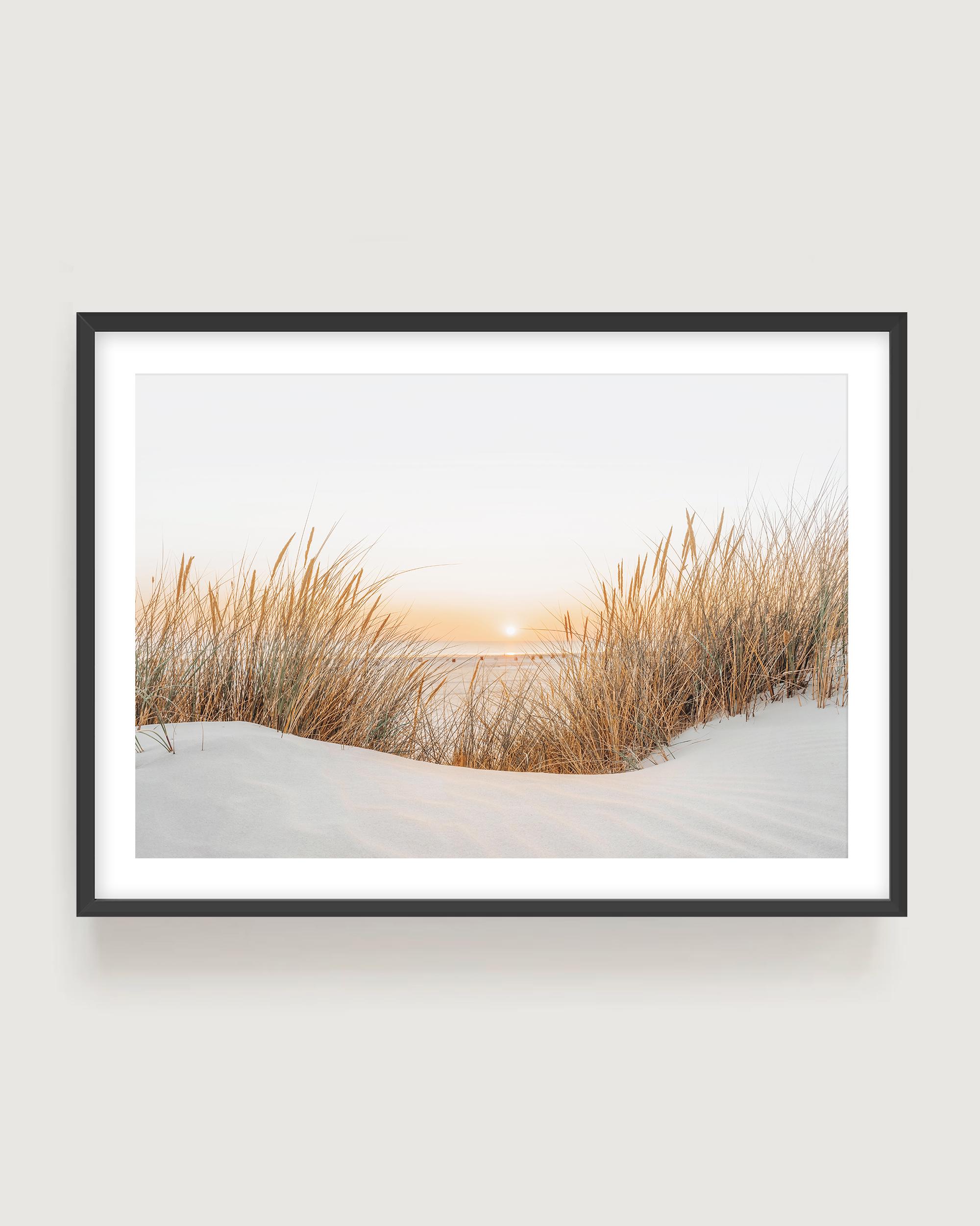 Beach Grass Sunset Print - Calming Coastal Wall Art (Framed or Unframed)