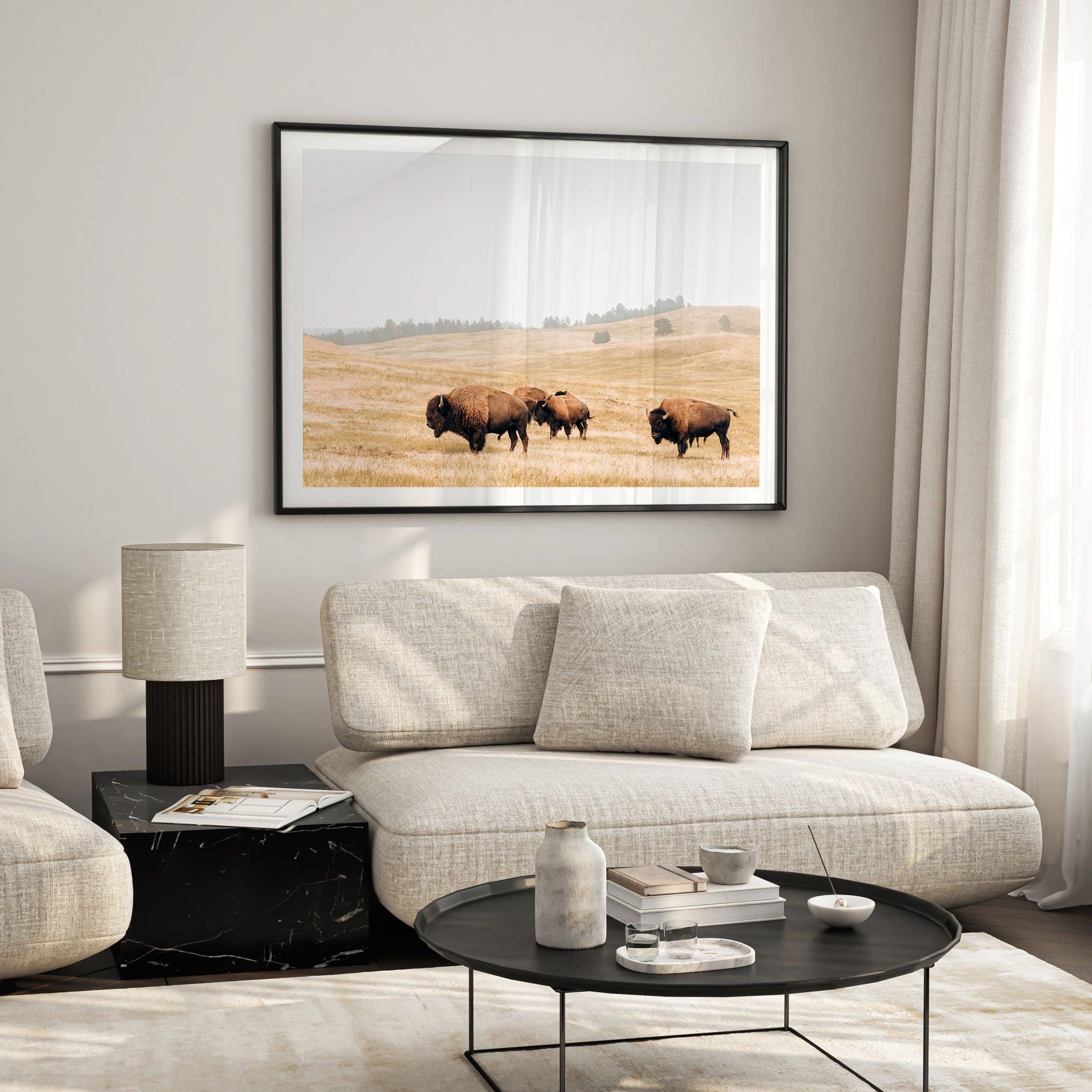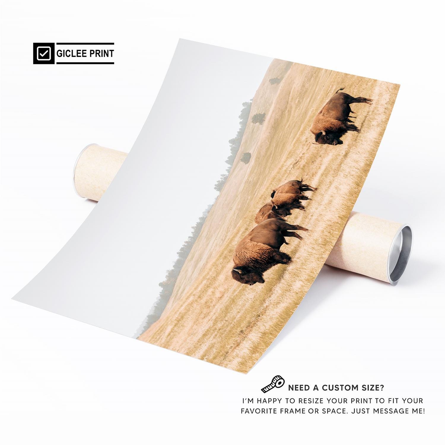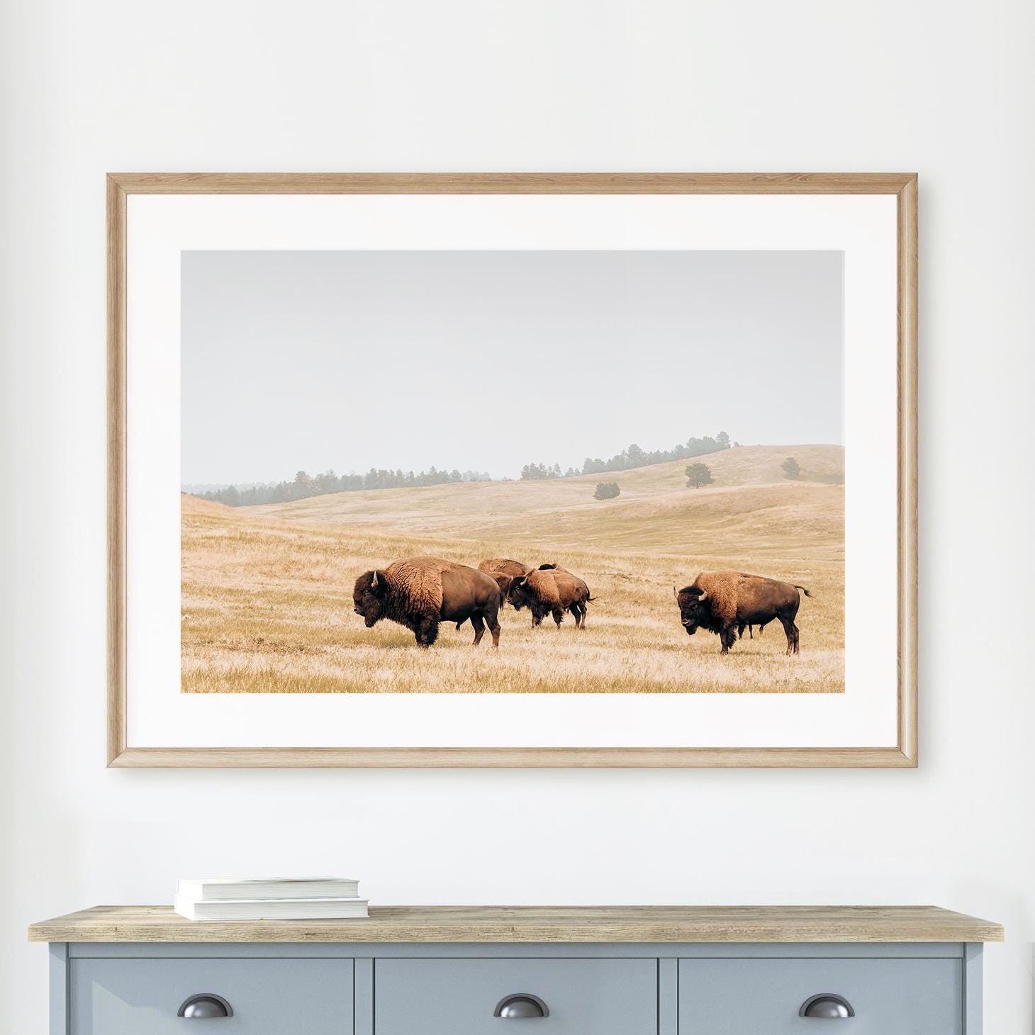 Bison Wildlife Fine Art Print, Western Landscape Photography, American Buffalo Large Horizontal Wall Art