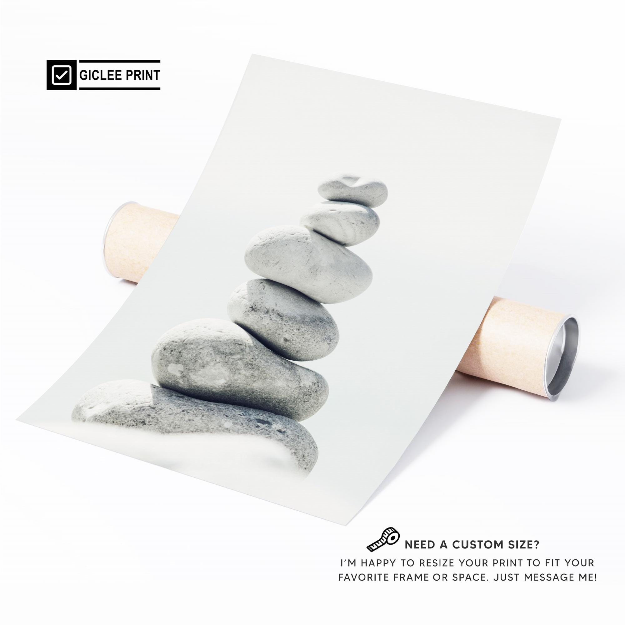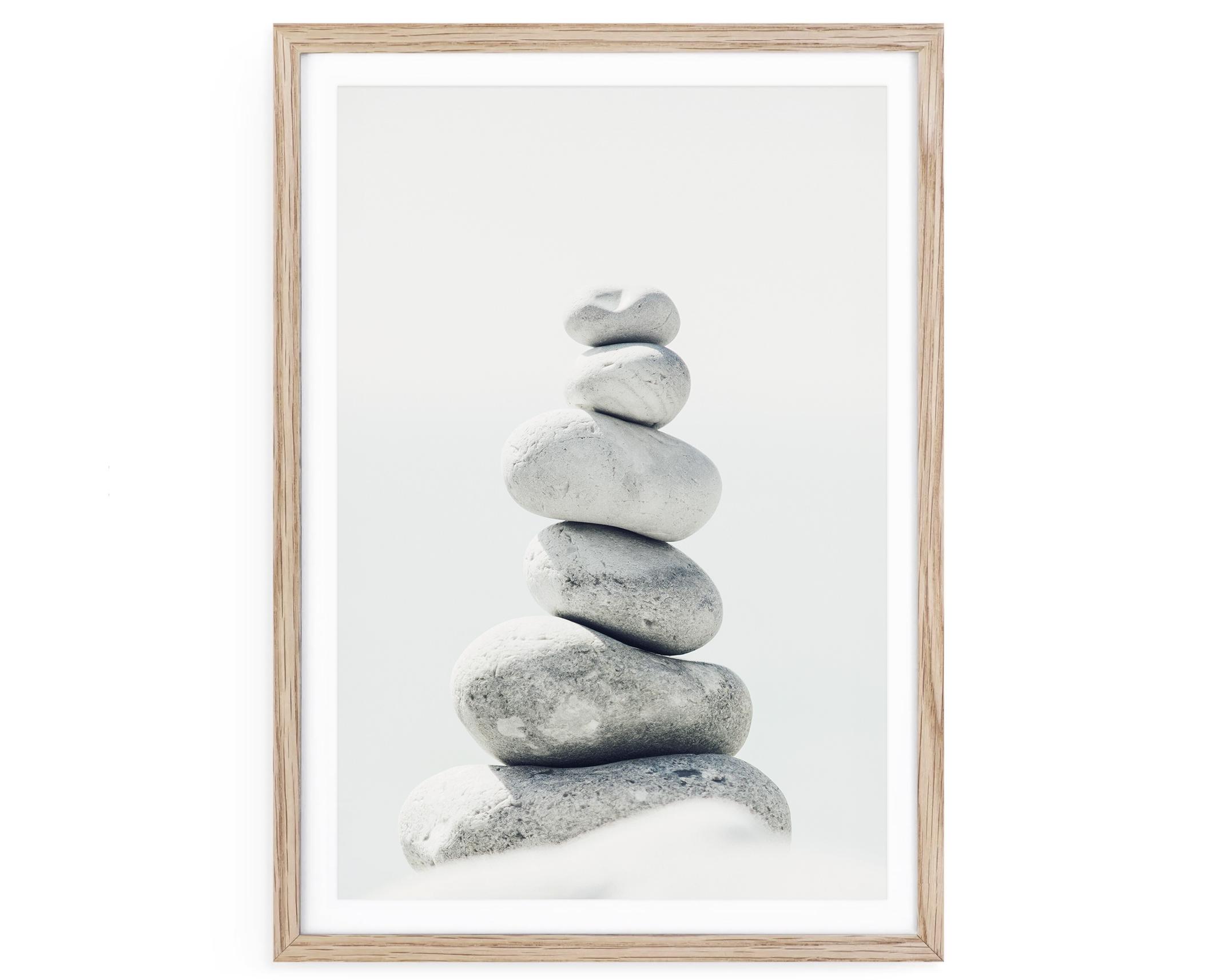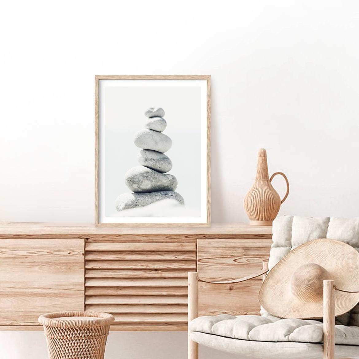 Coastal Pebble Stack Print: Neutral Fine Art Photography