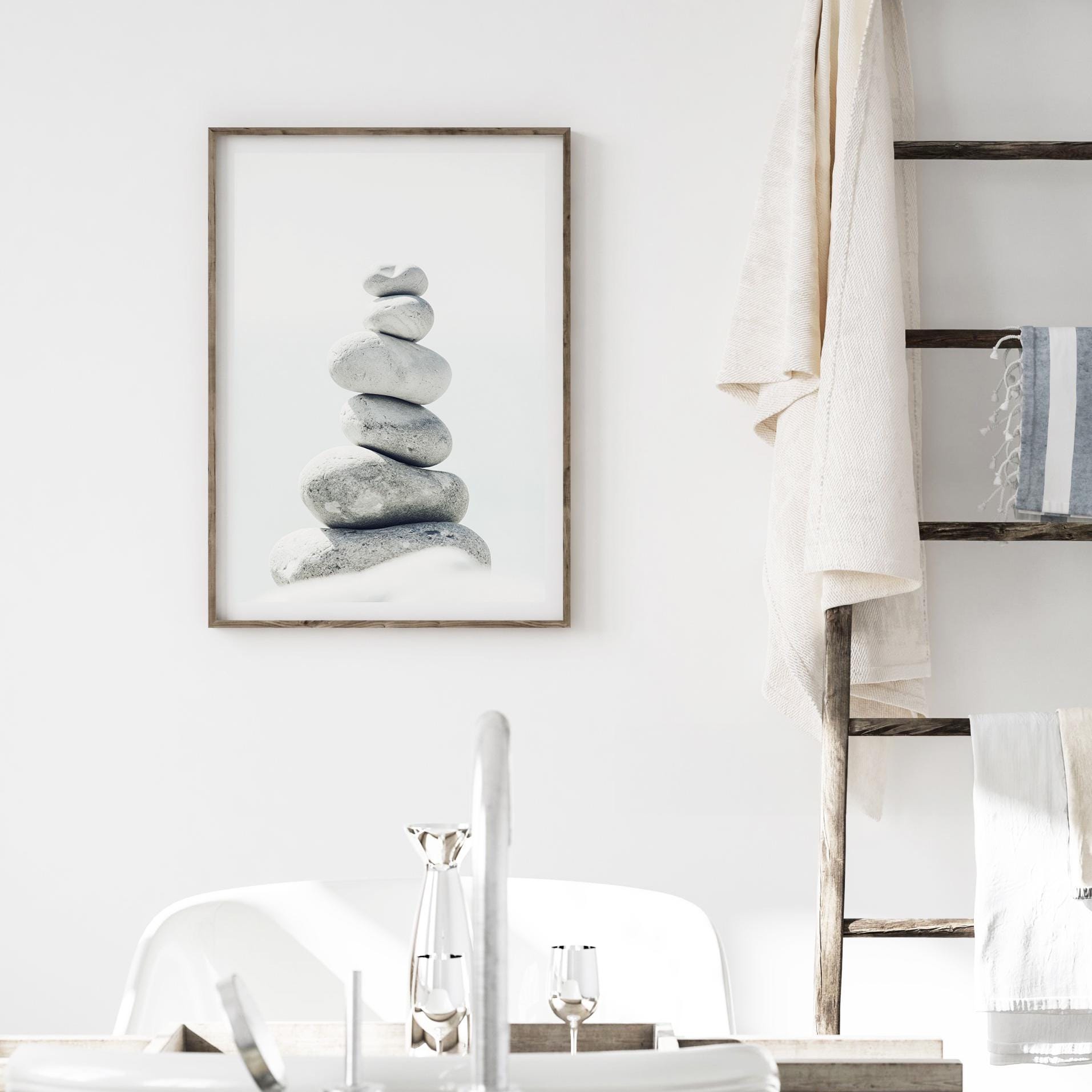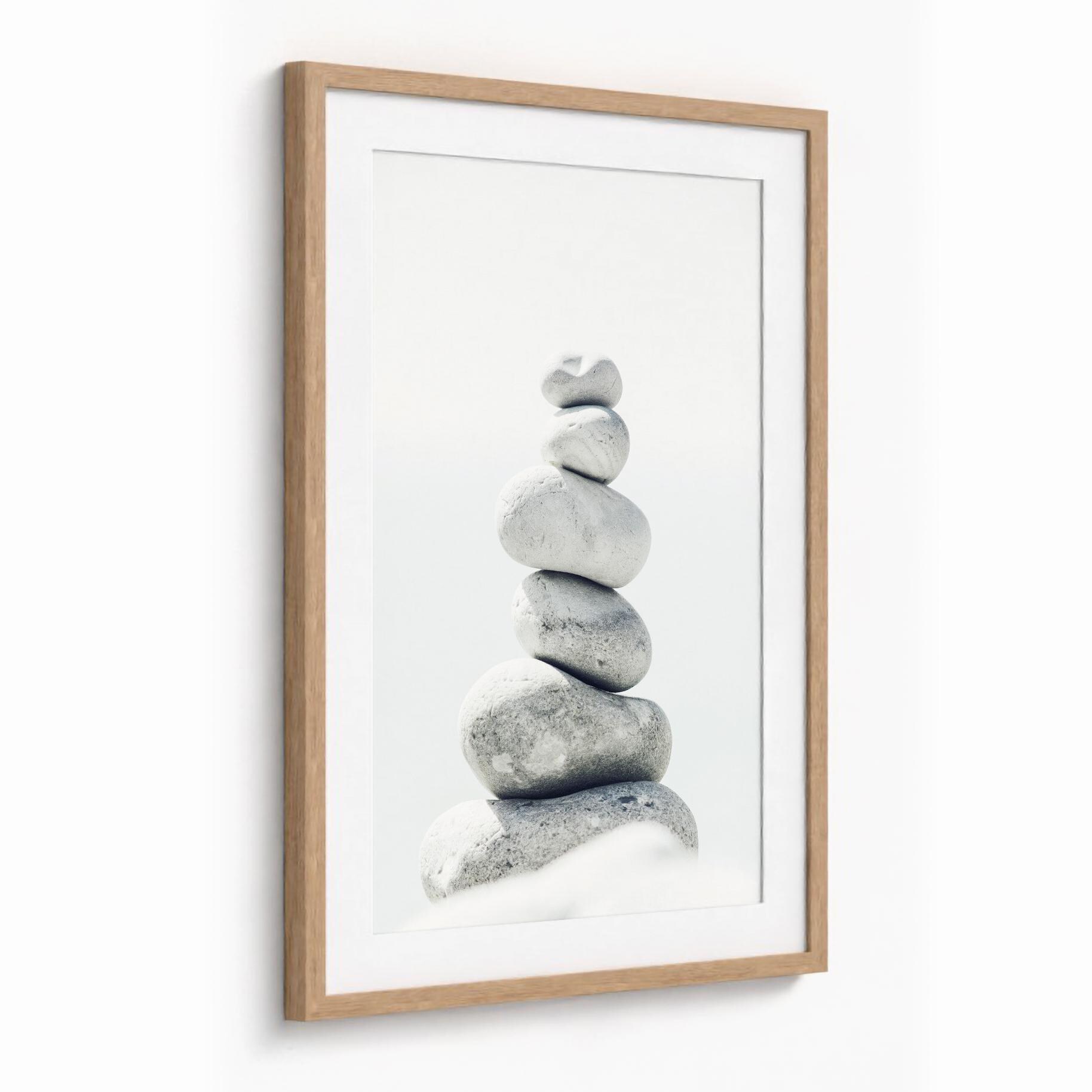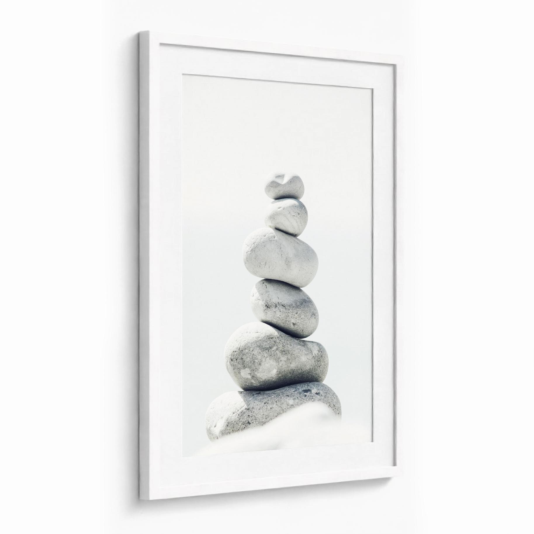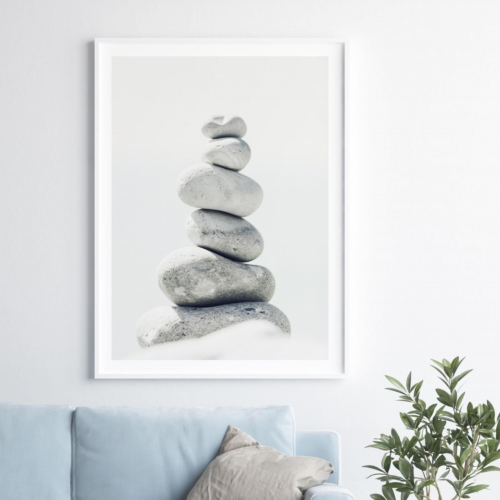Coastal Pebble Stack Print: Neutral Fine Art Photography