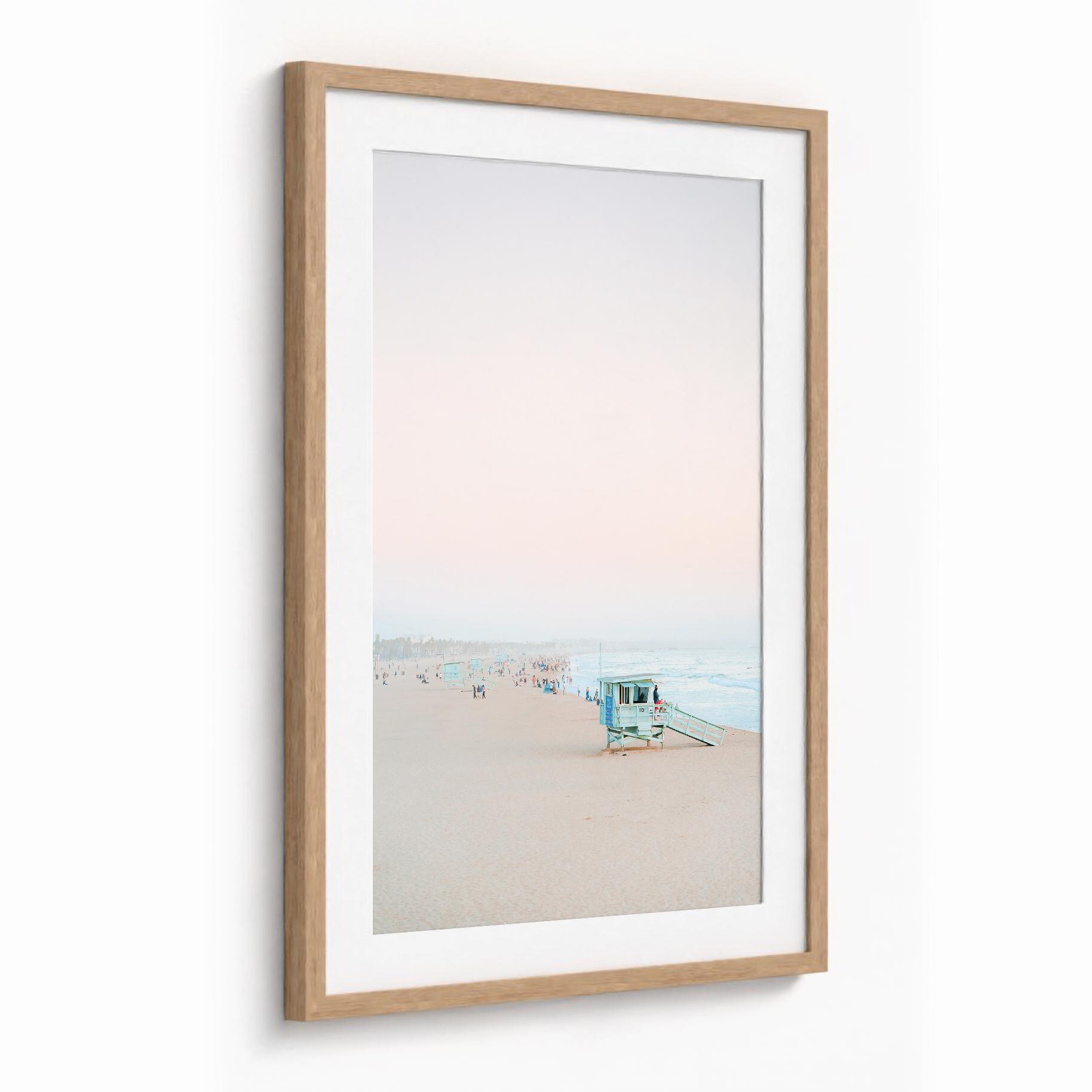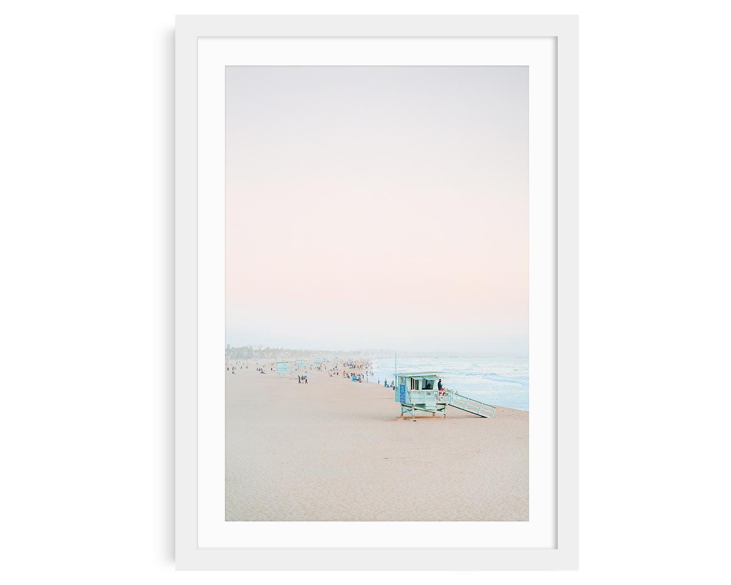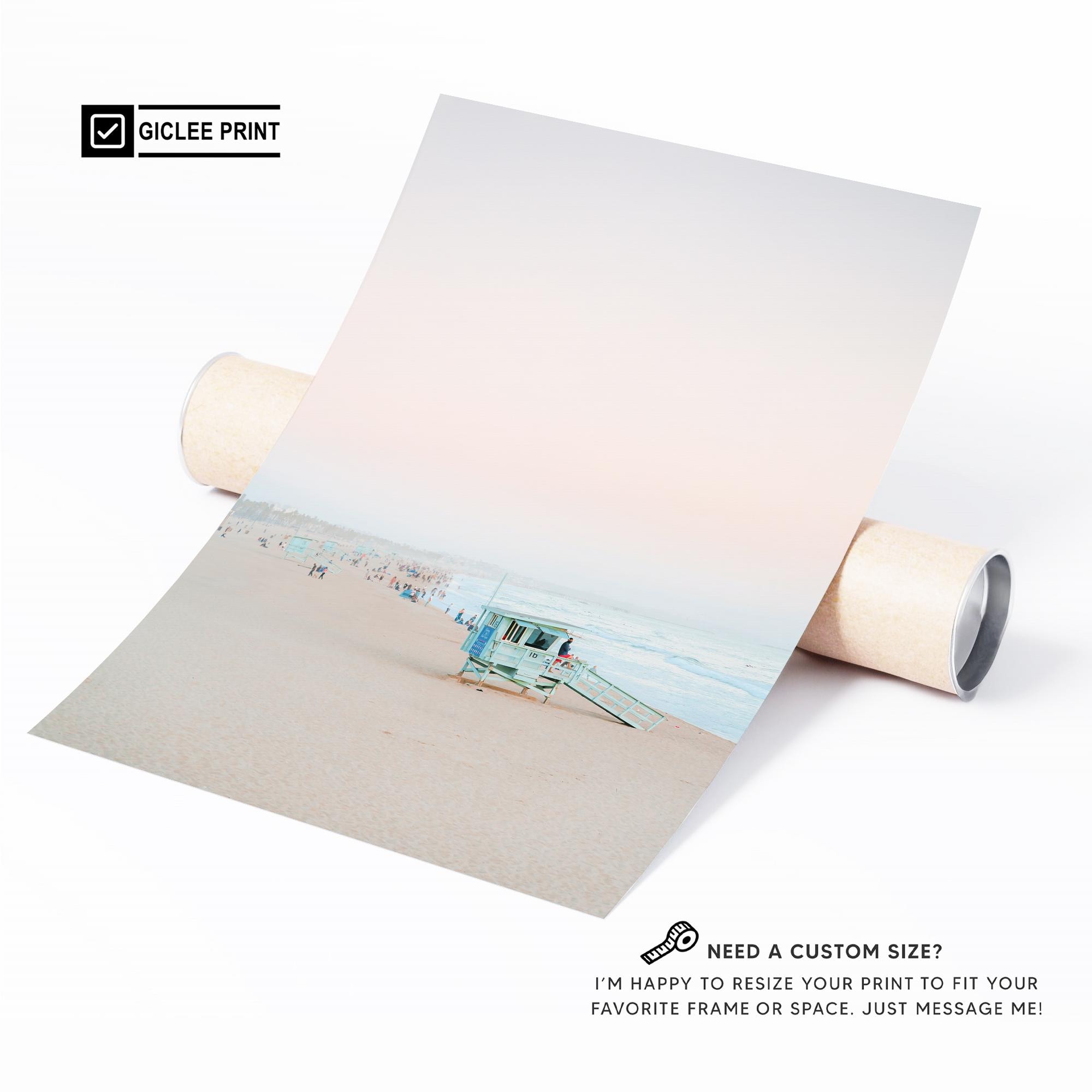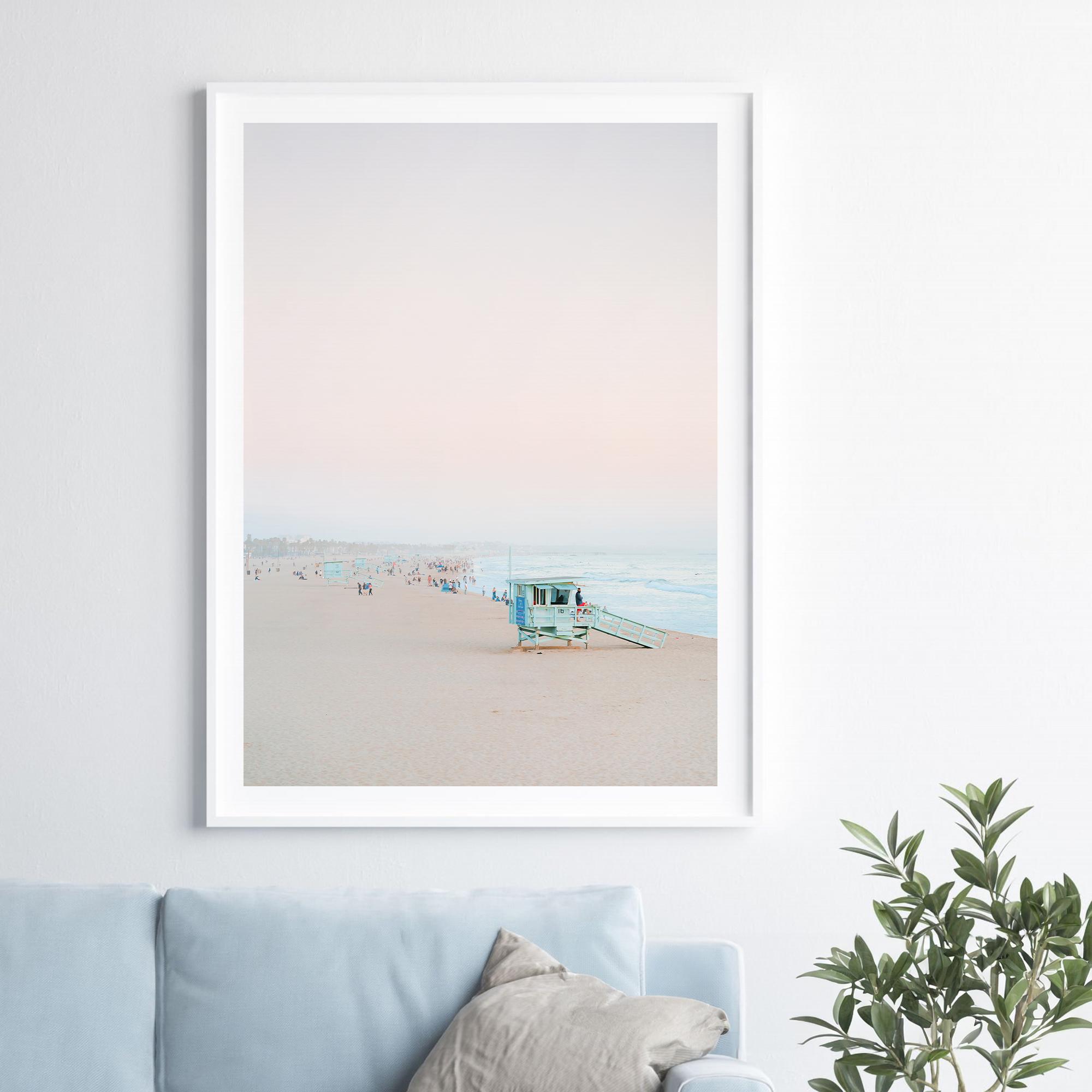 Santa Monica Beach Print, Coastal California Fine Art Photography, Minimalist Blush Sunset Wall Art
