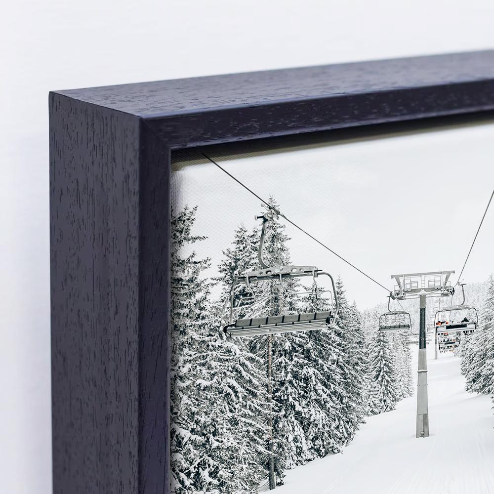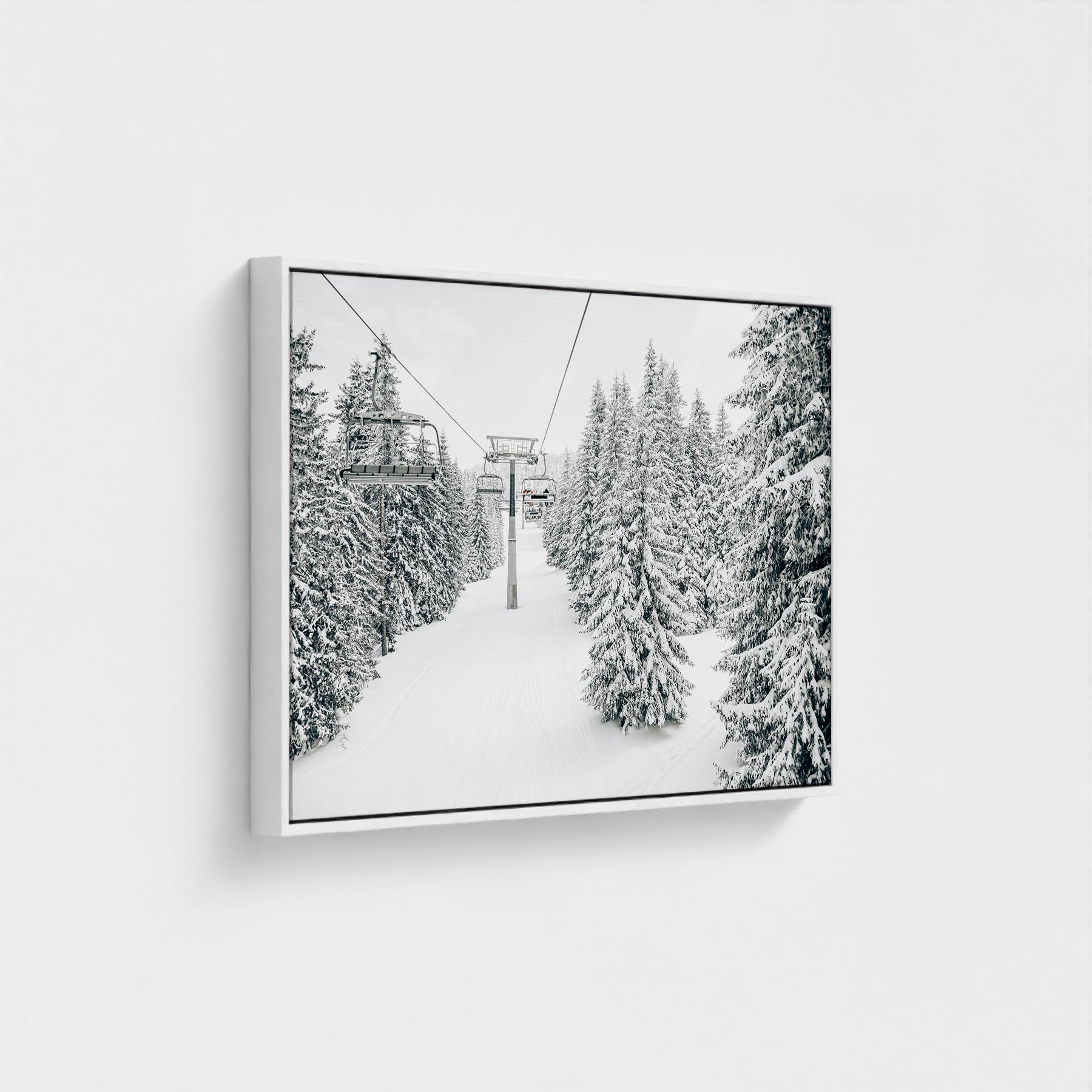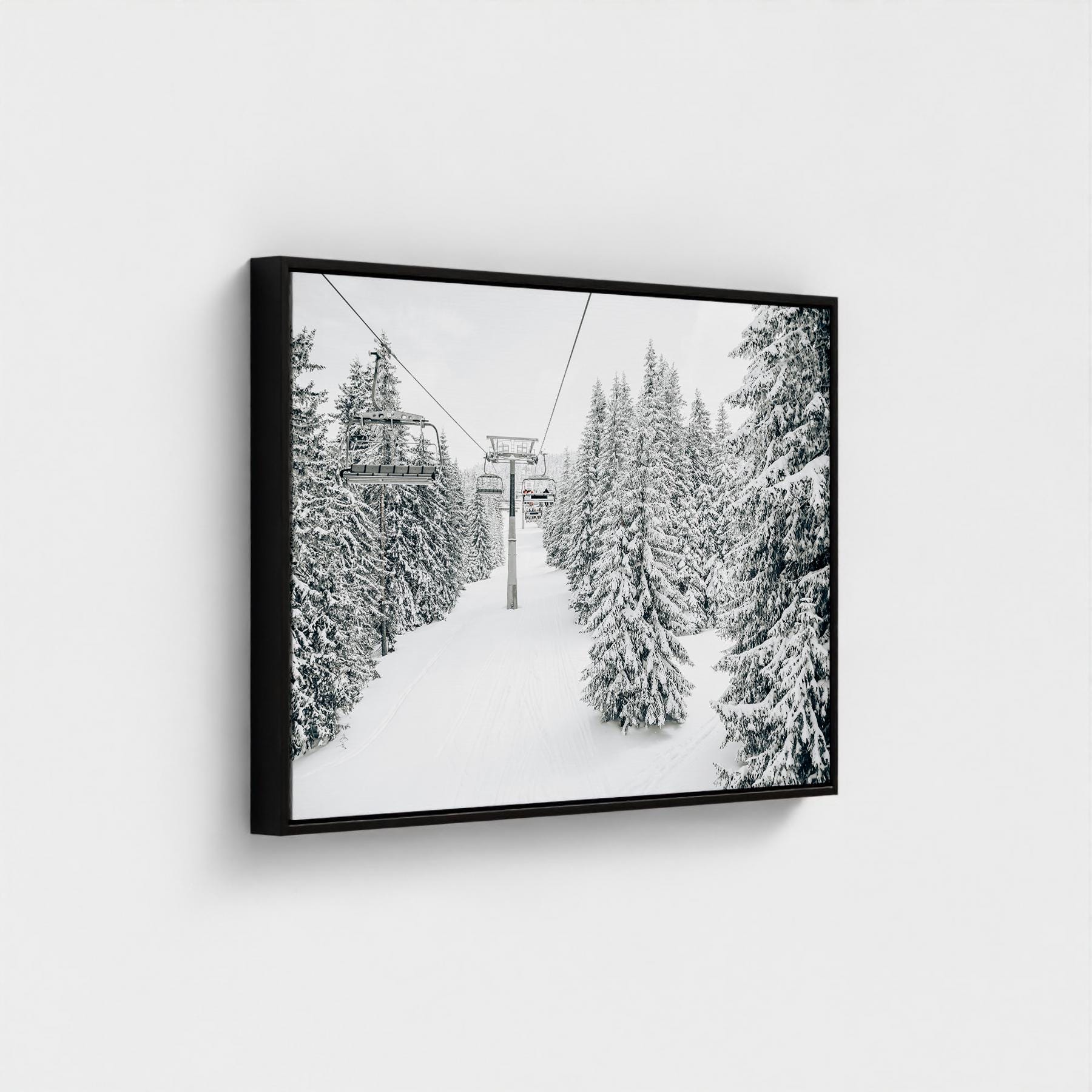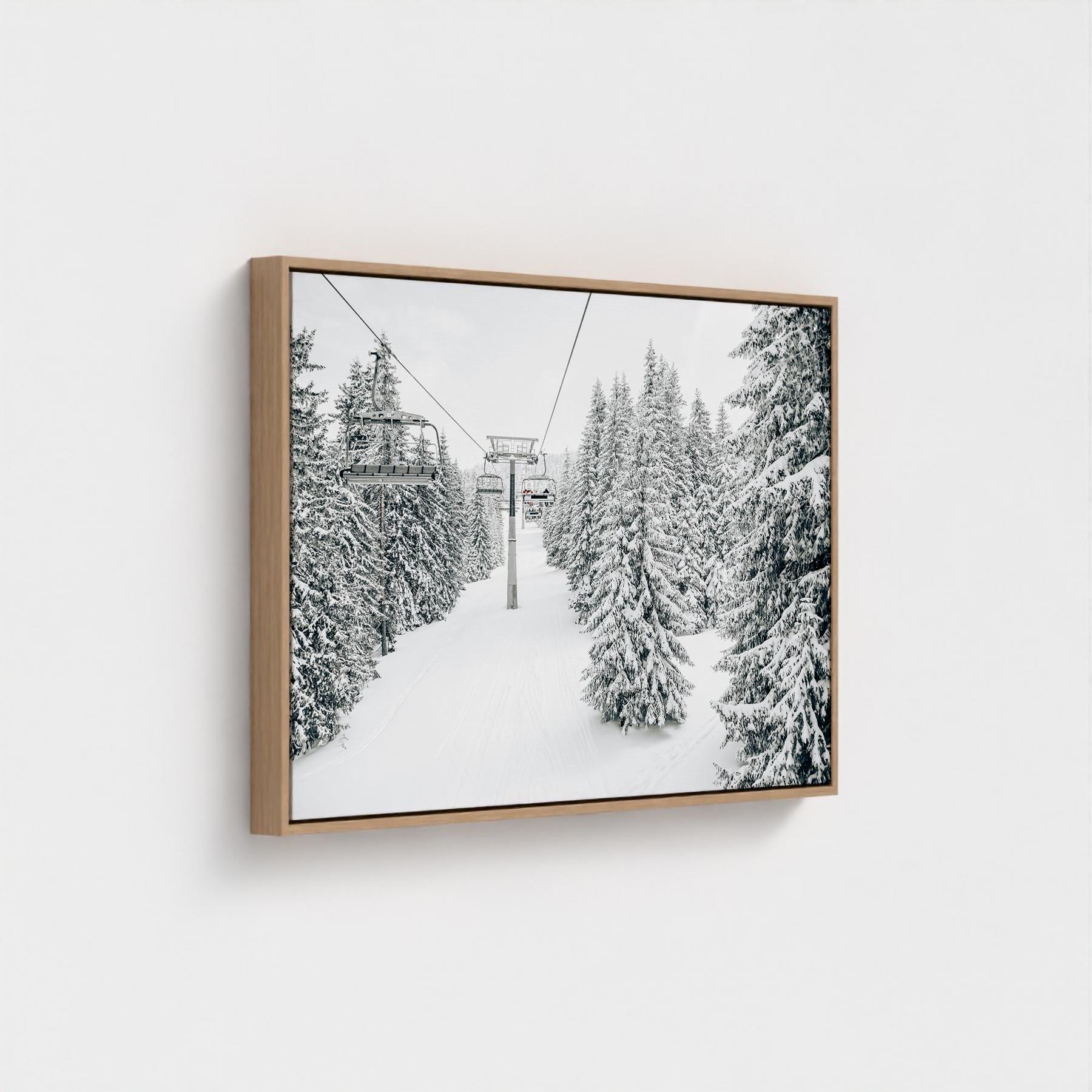 Bring a sense of calm and modern simplicity into your home with fine art photography giclee printed on premium 38mm stretched canvas. This serene winter landscape brings a cozy alpine feel to your space, ideal for cabin decor, ski homes, or seasonal wall art.
