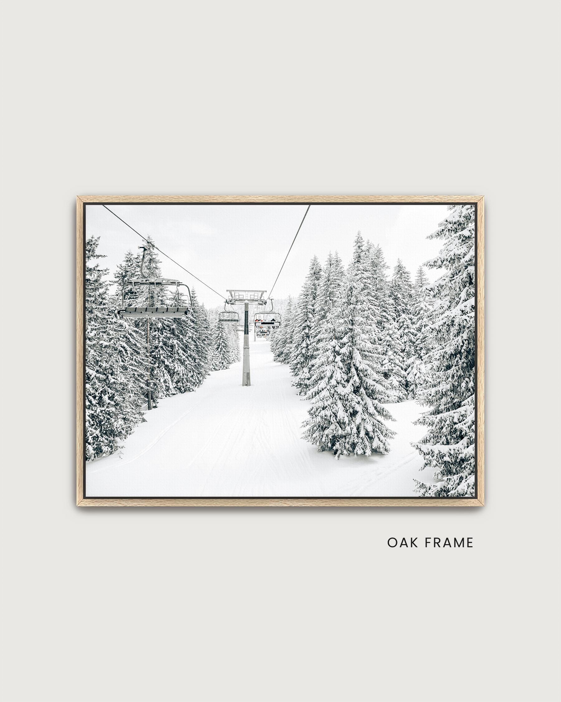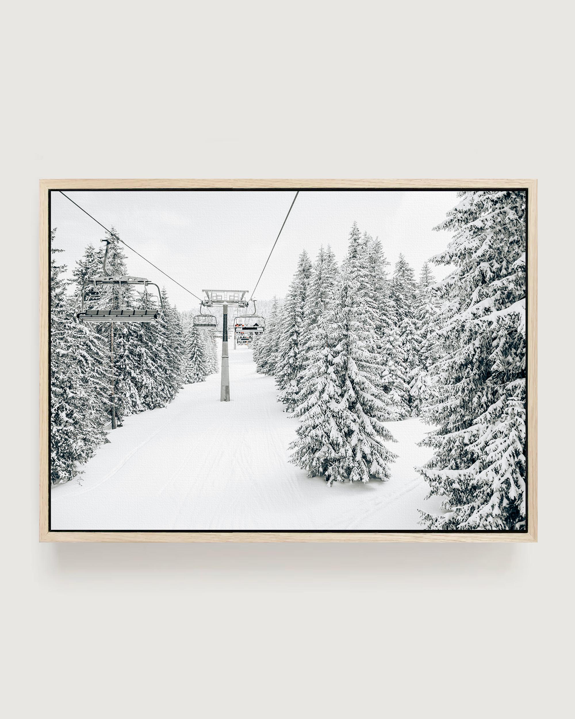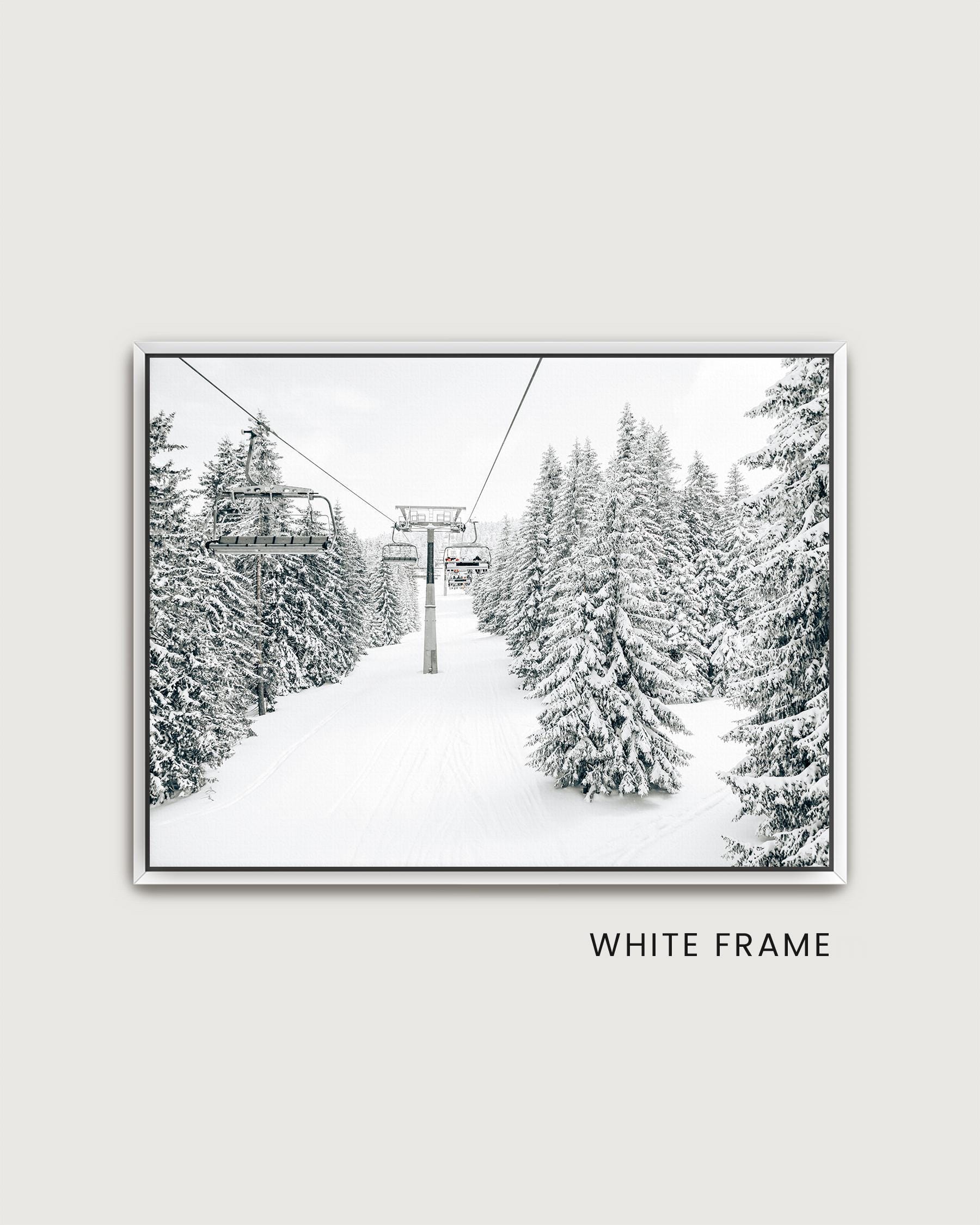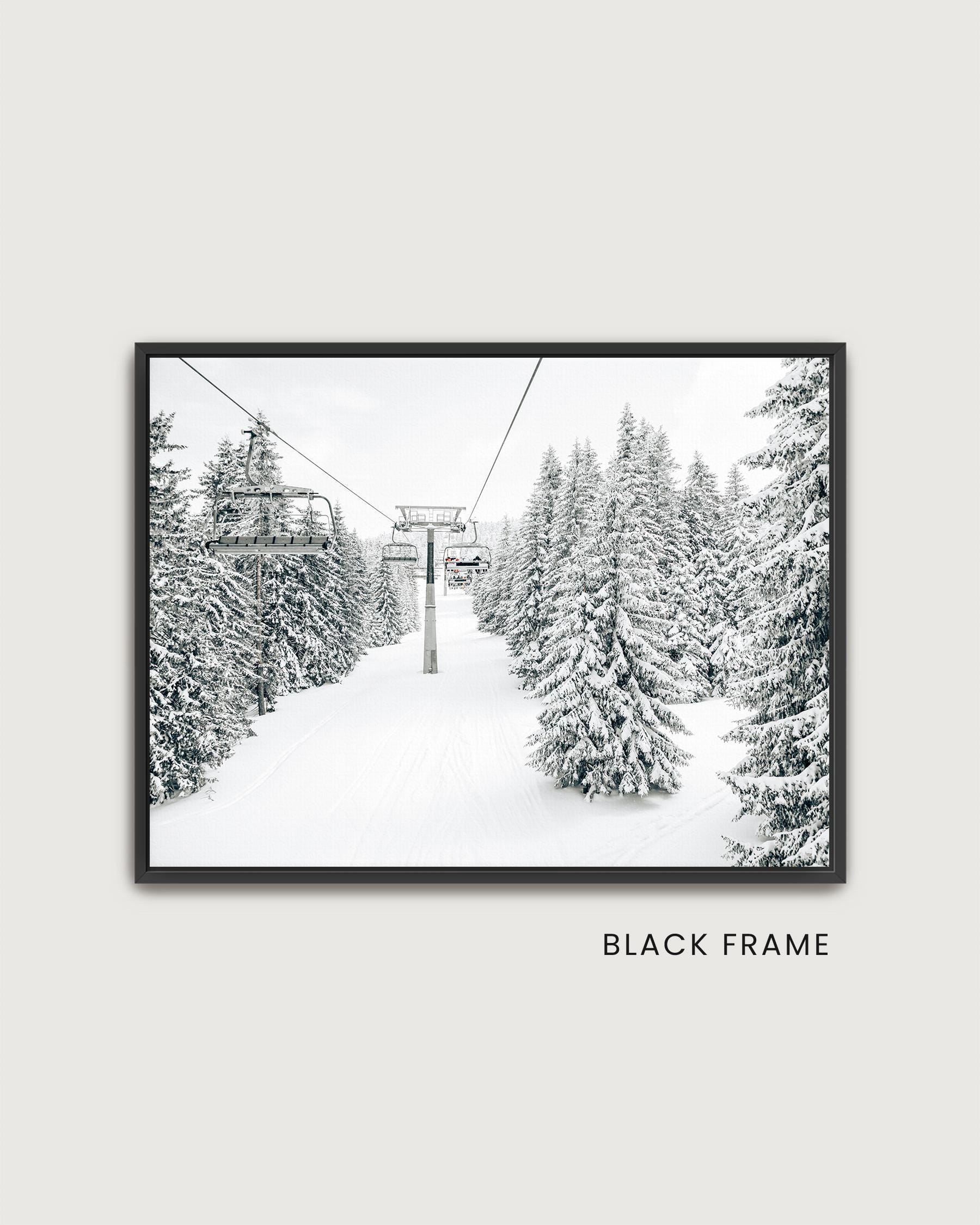 Framed Winter Landscape Canvas - Snowy Ski Lift, Alpine Decor