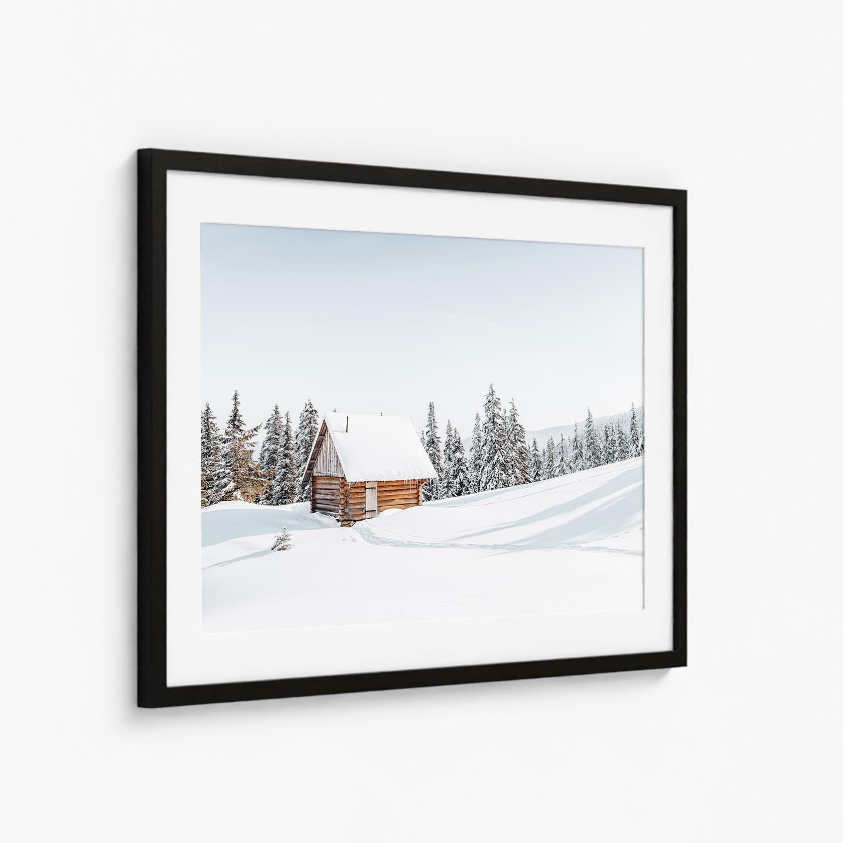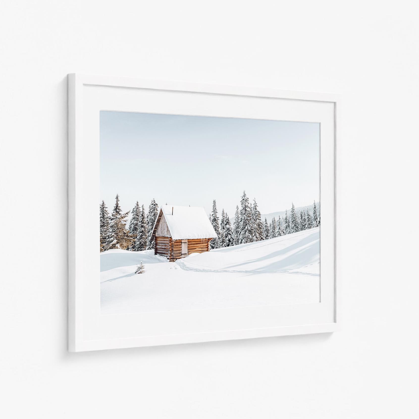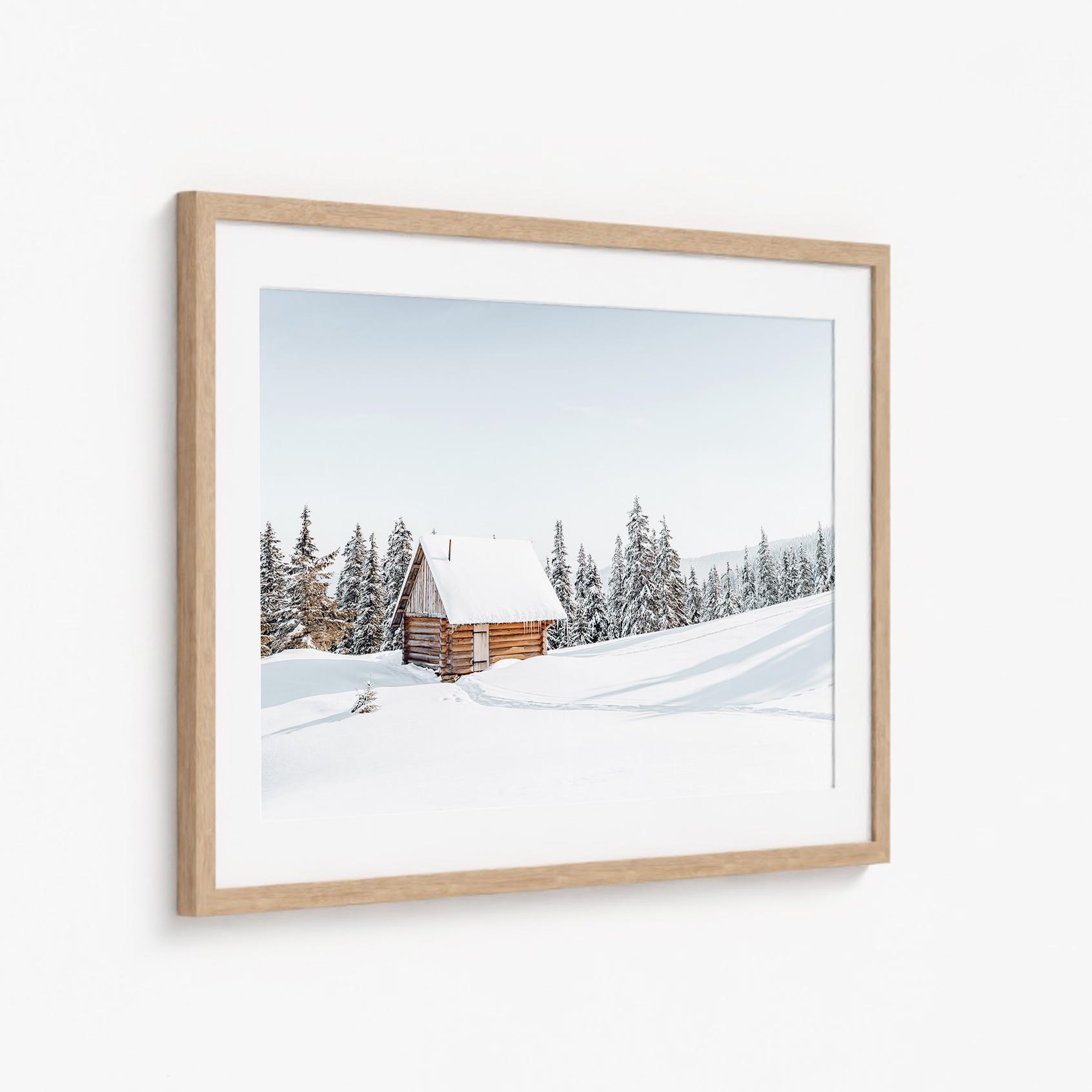 Winter Cabin Photography Print: Snowy Landscape Wall Art