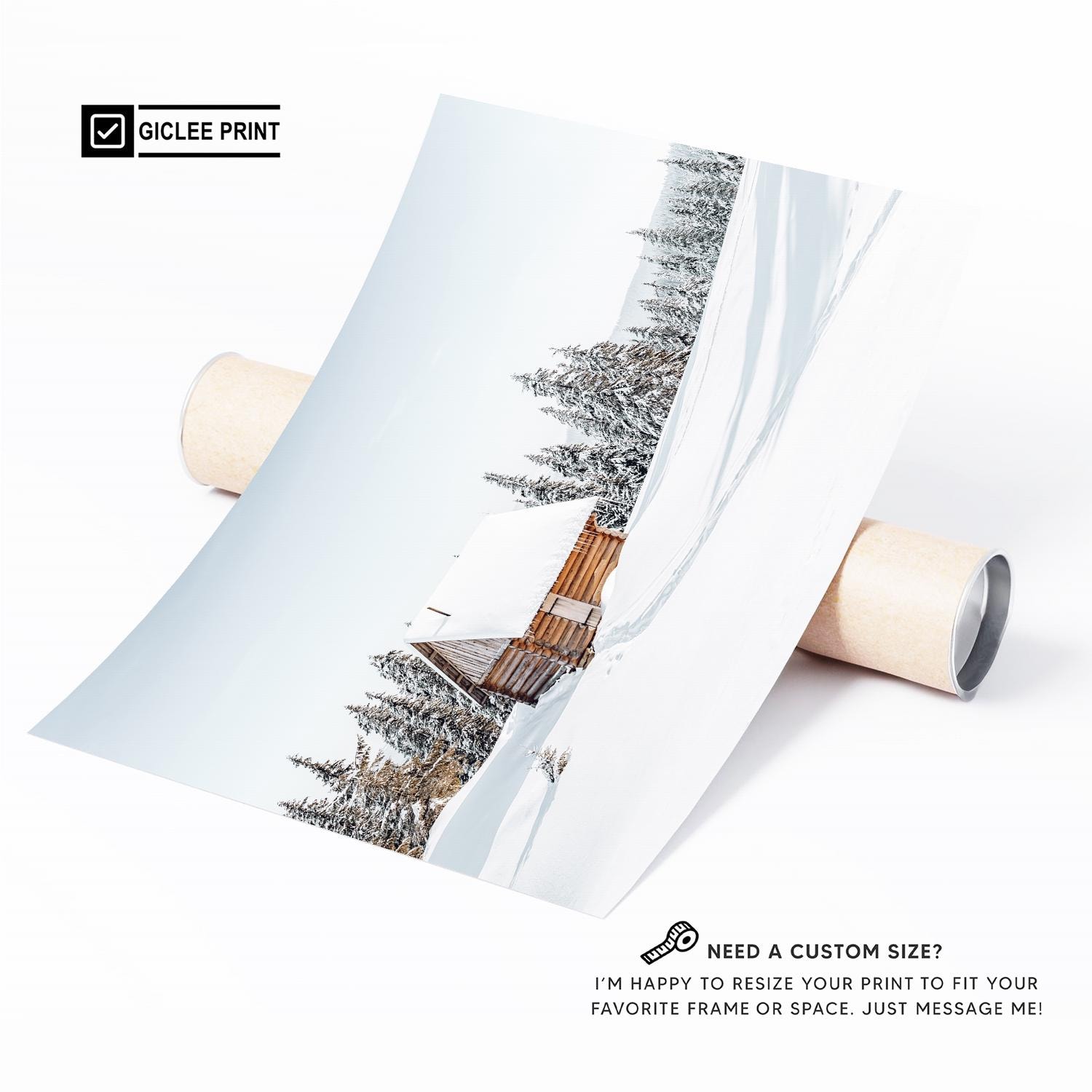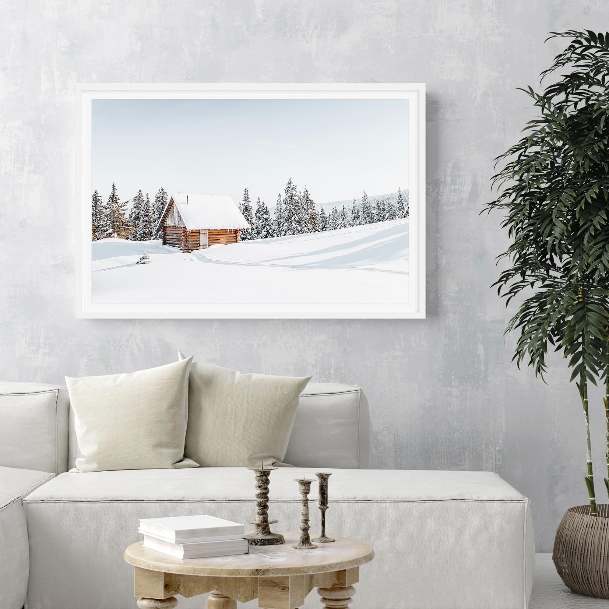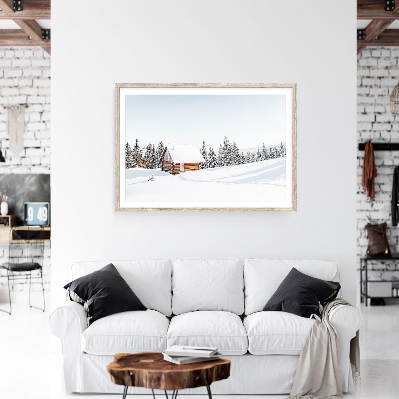 Winter Cabin Photography Print: Snowy Landscape Wall Art