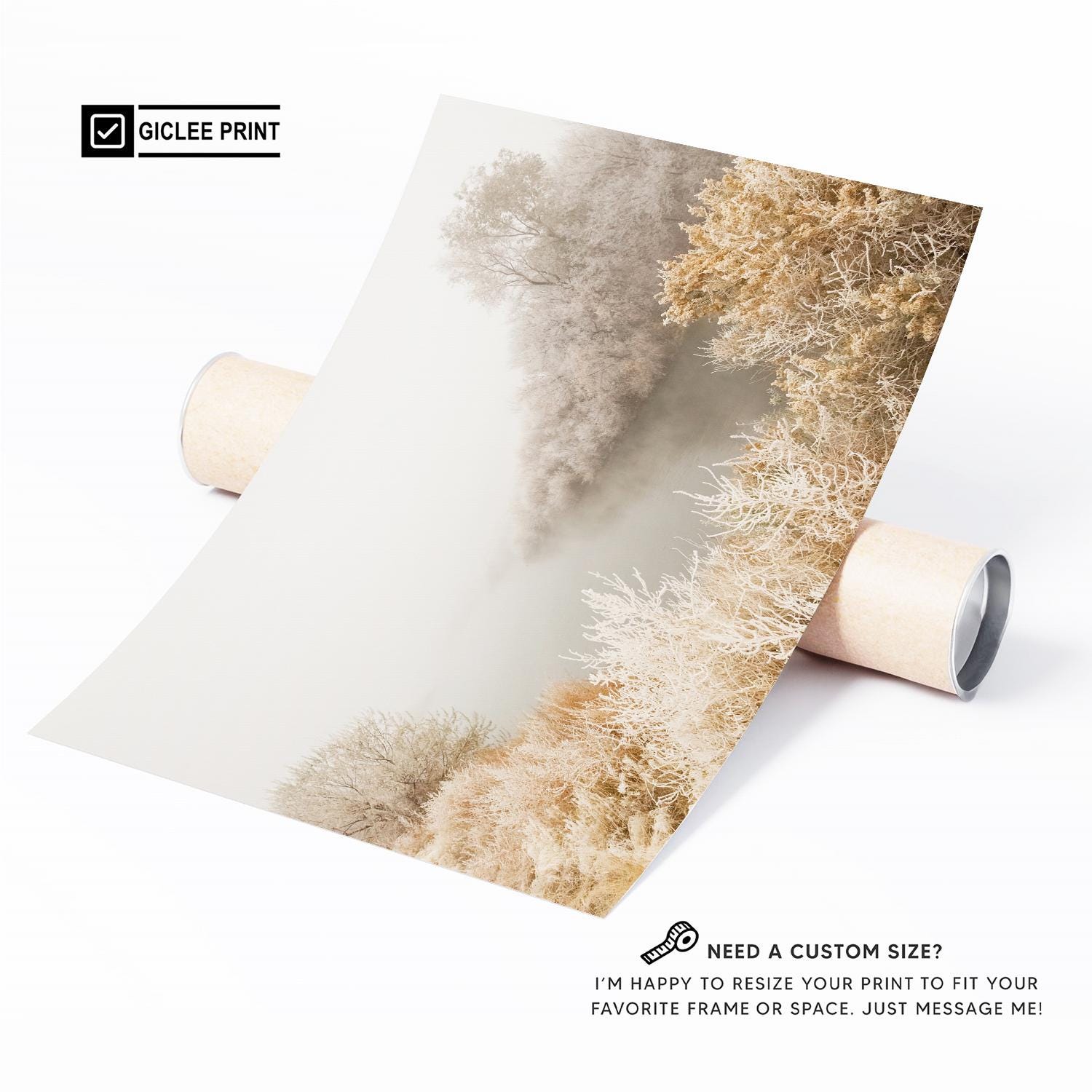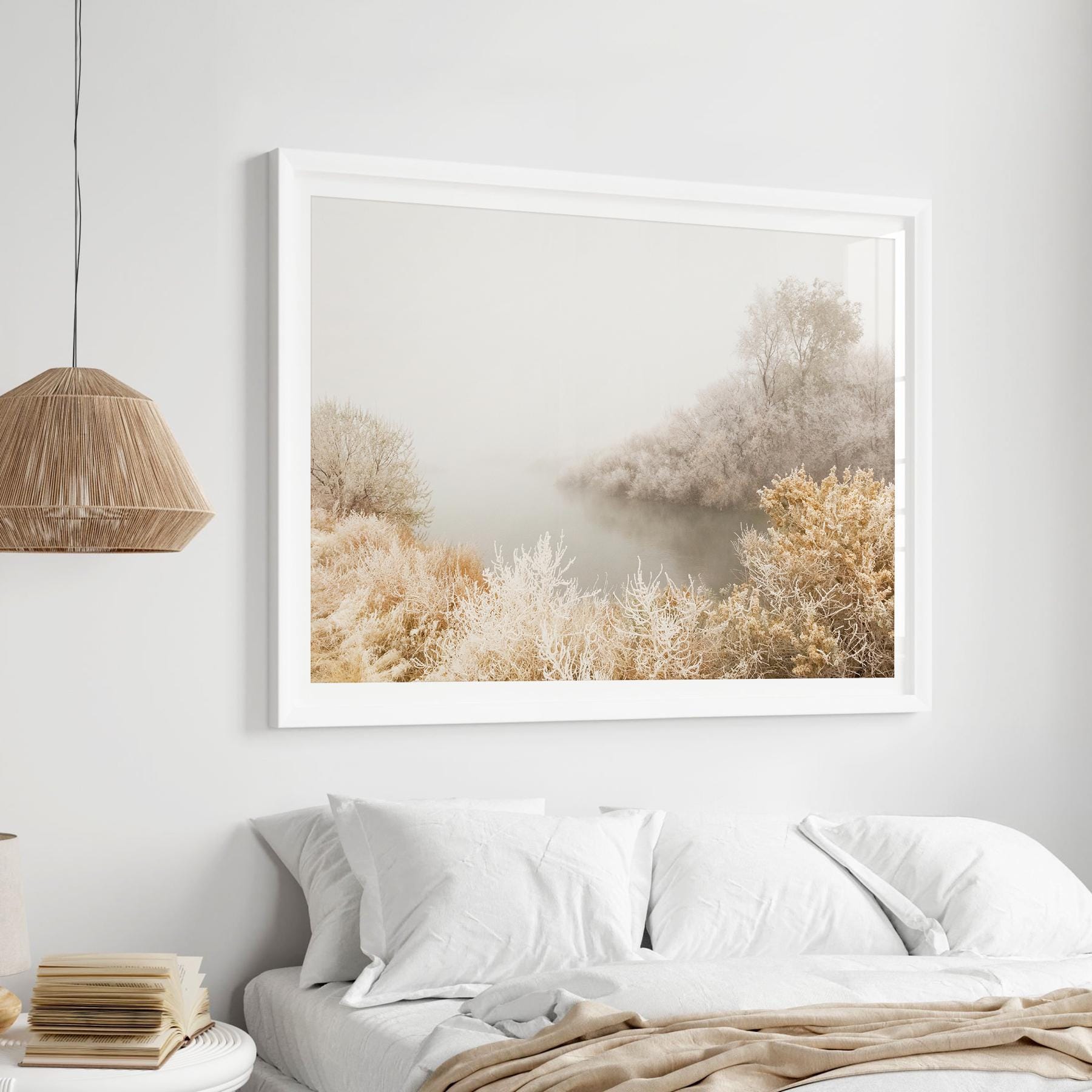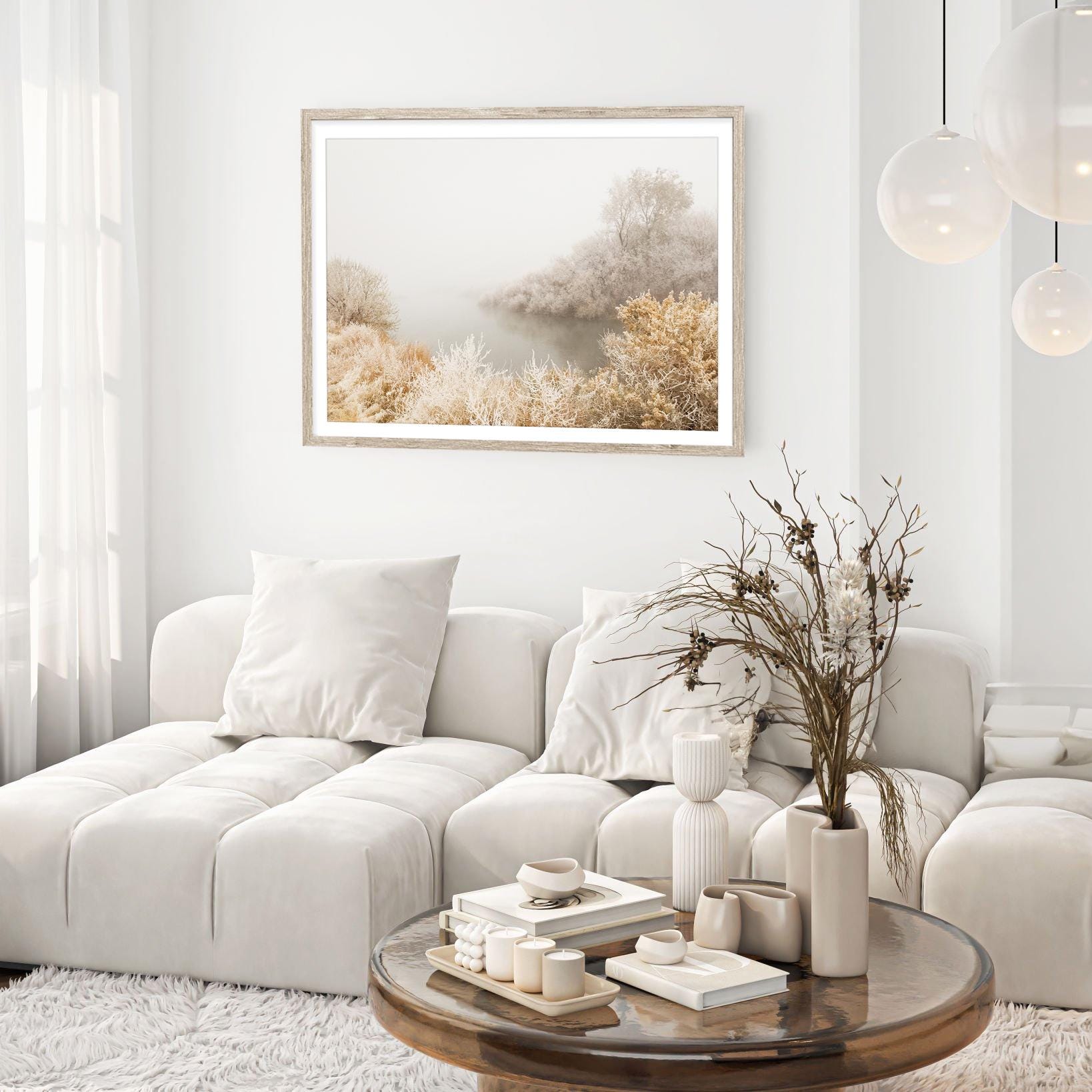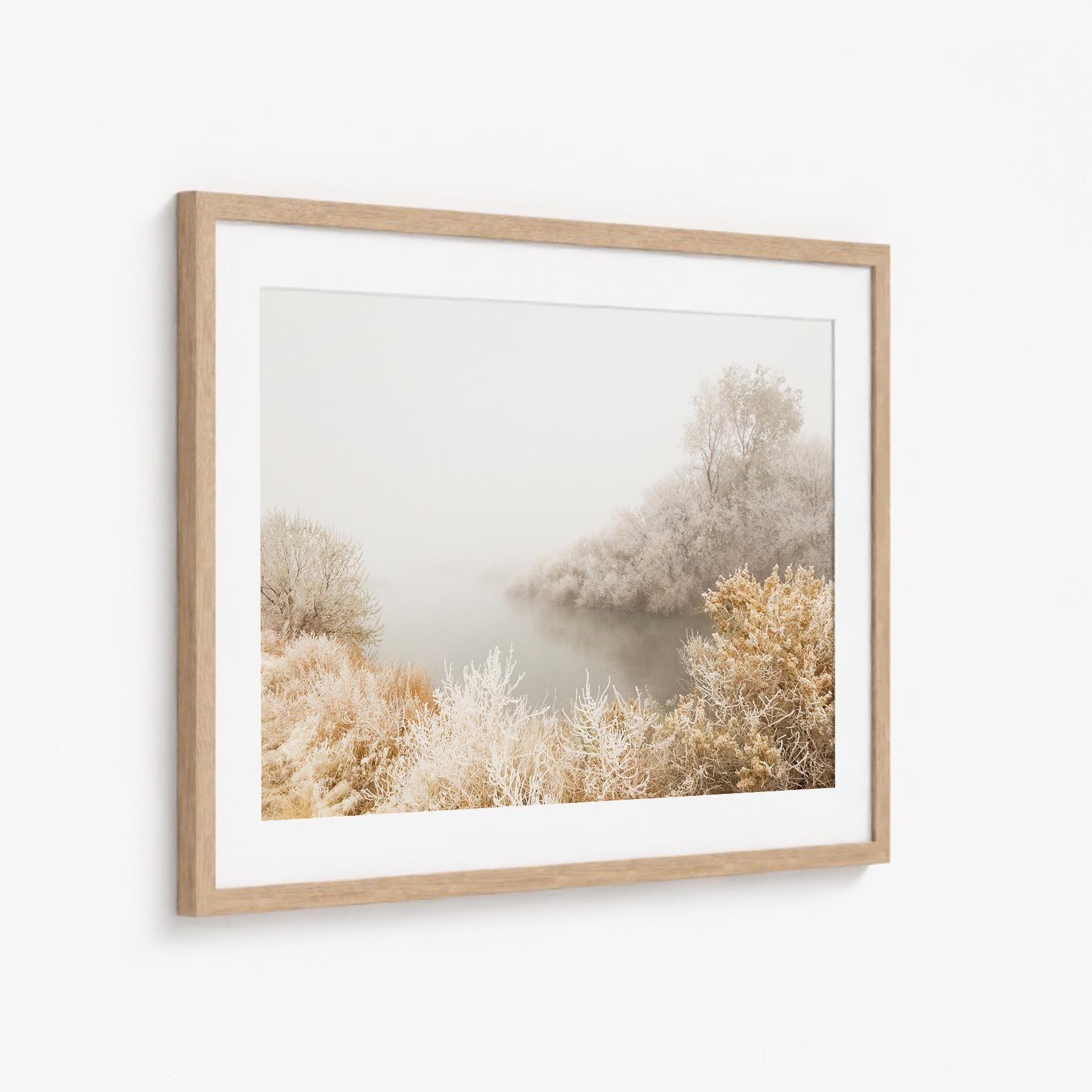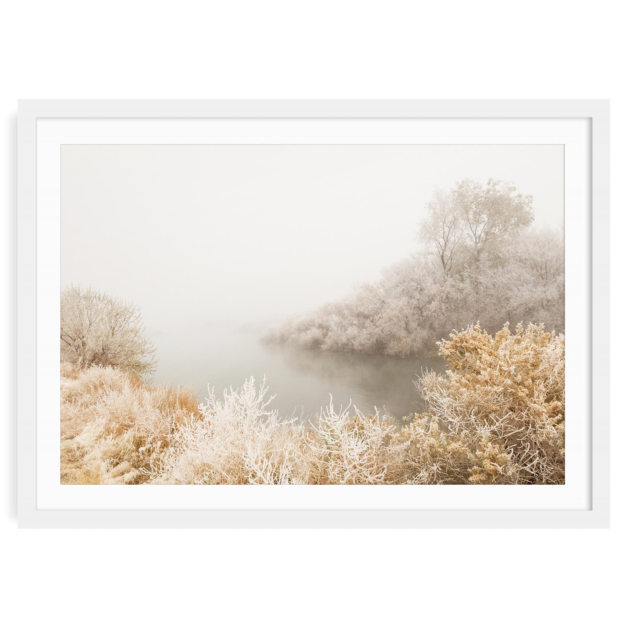 Winter Morning River Fine Art Print, Neutral Nature Photography Framed or Unframed