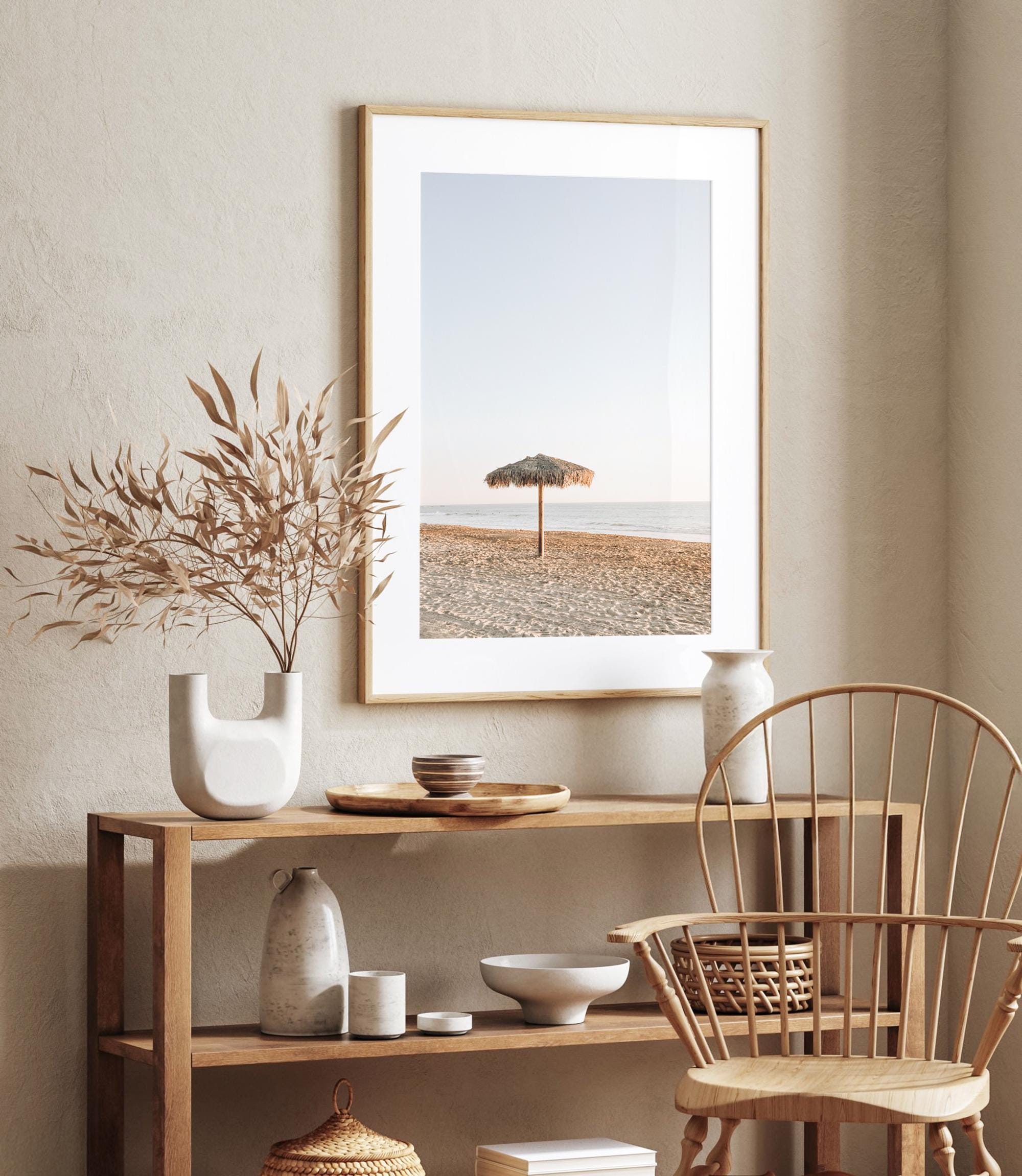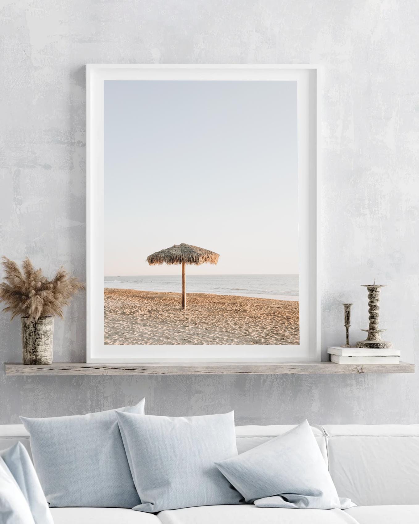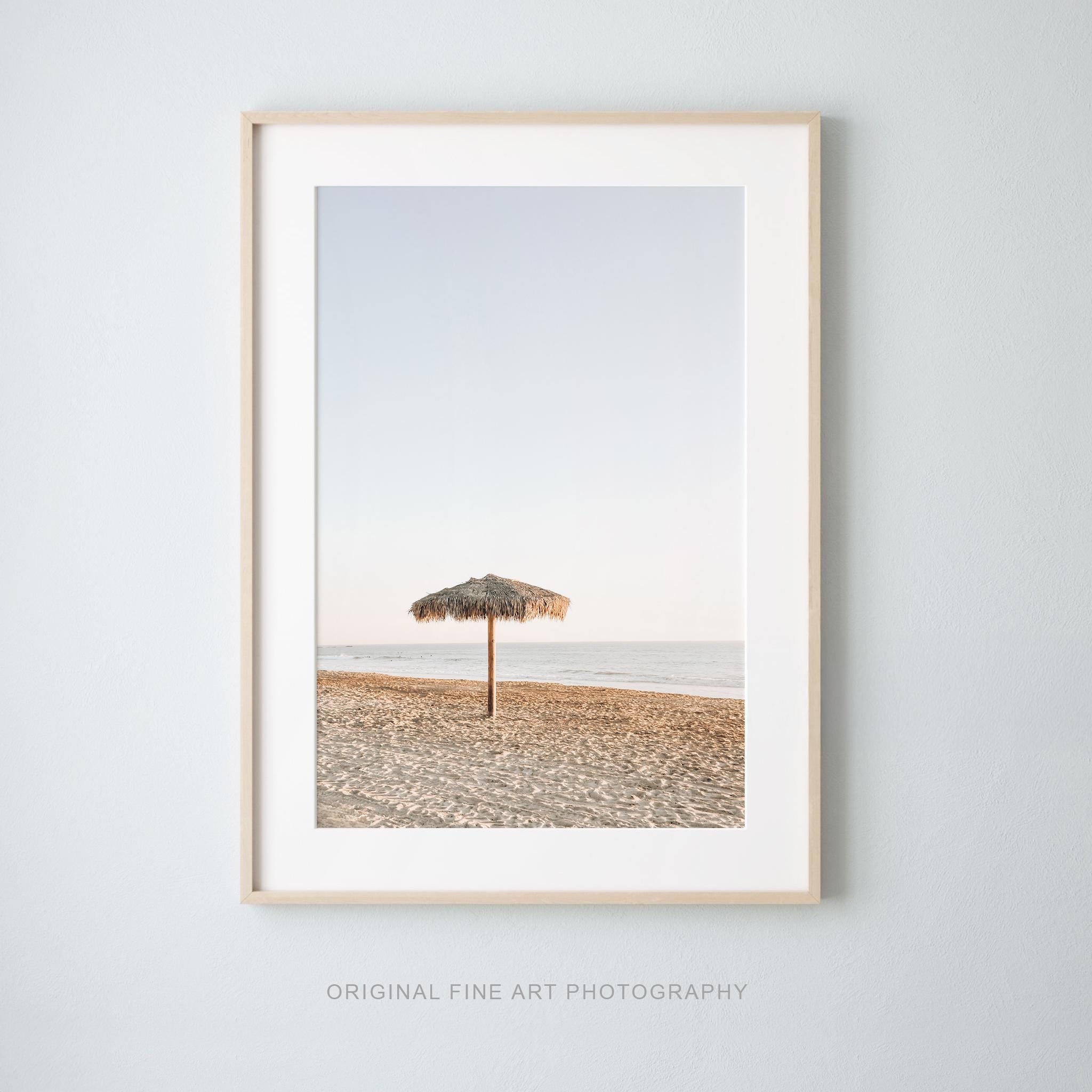 Beach Photography Print: Neutral Coastal Umbrella Decor, San Clemente Wall Art