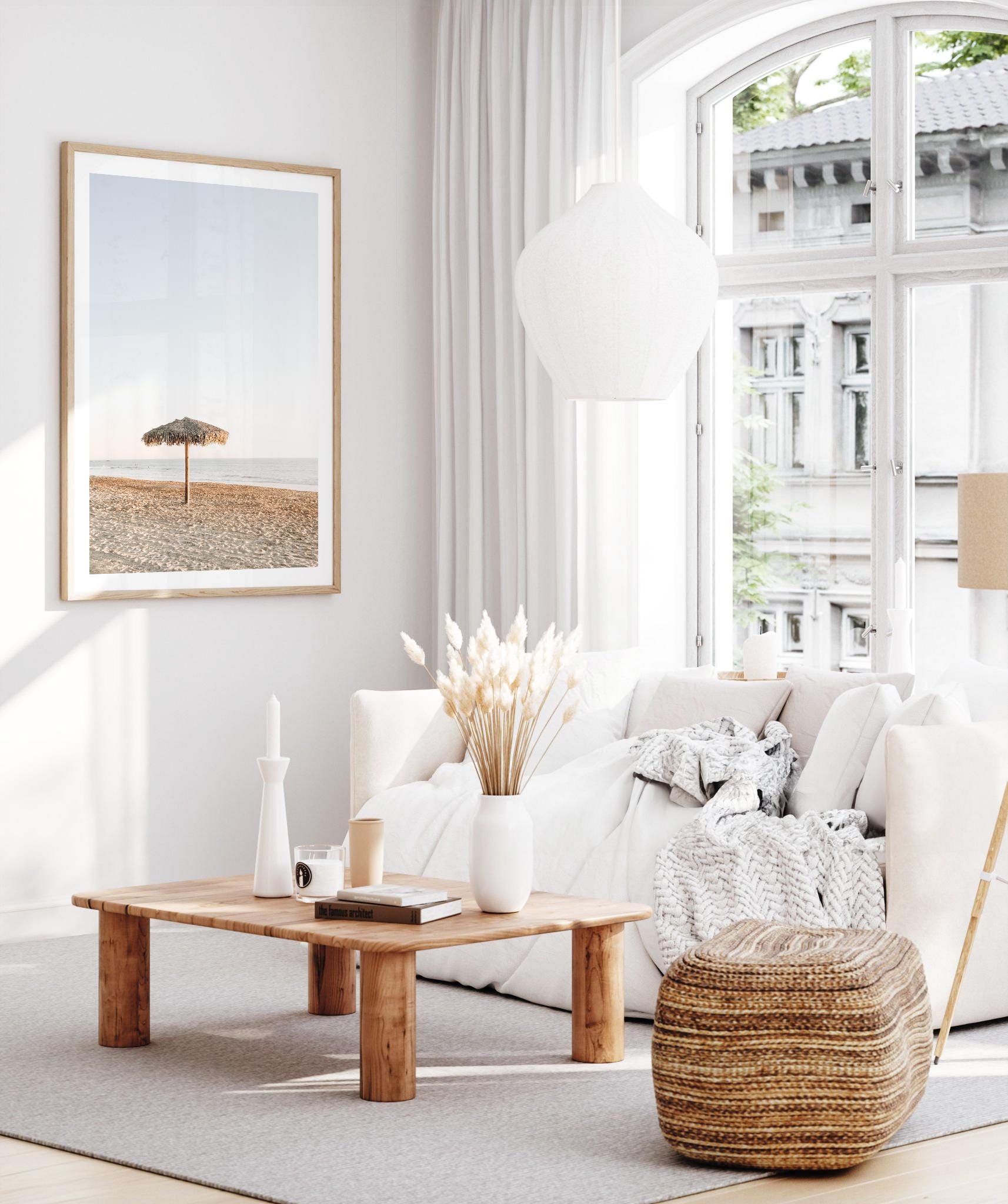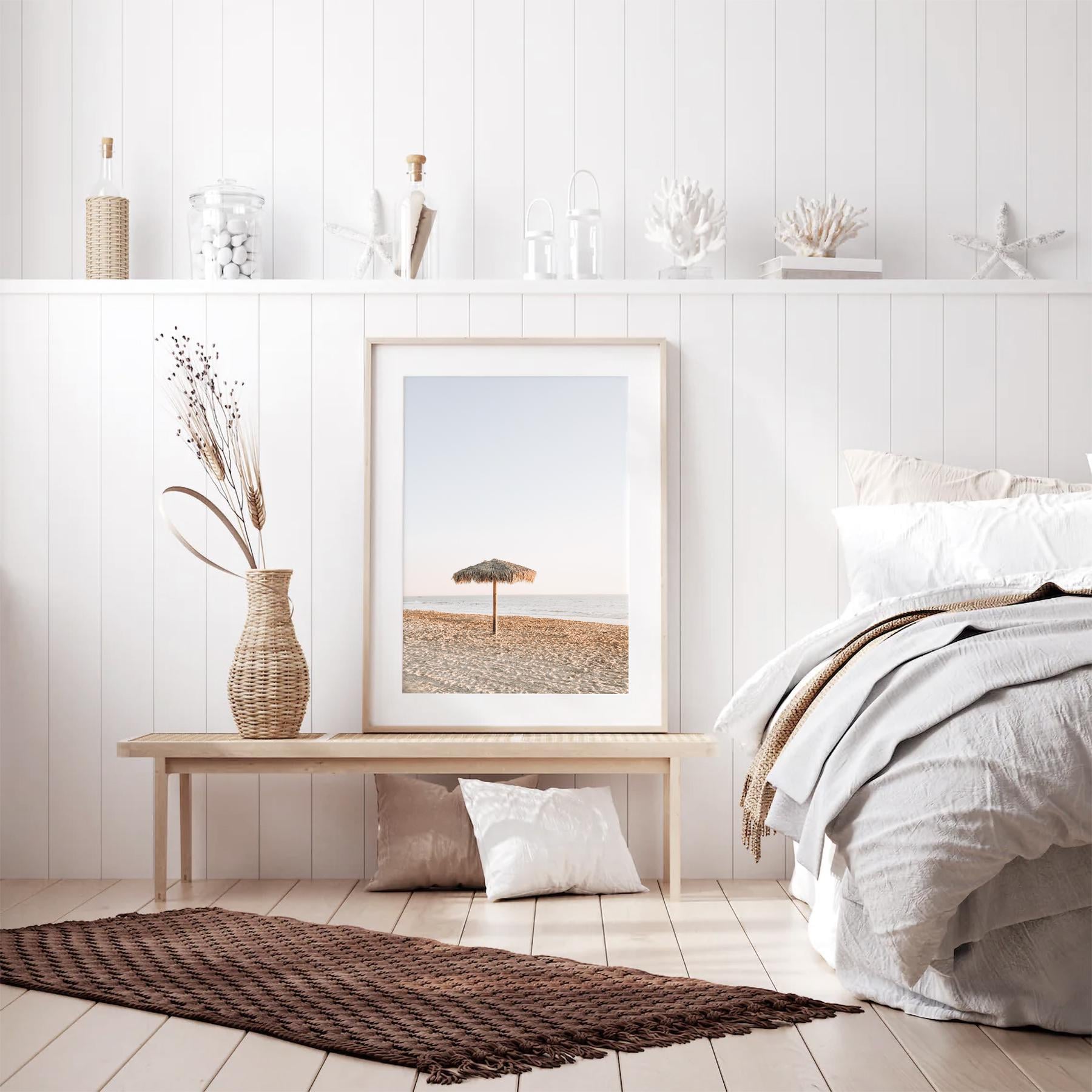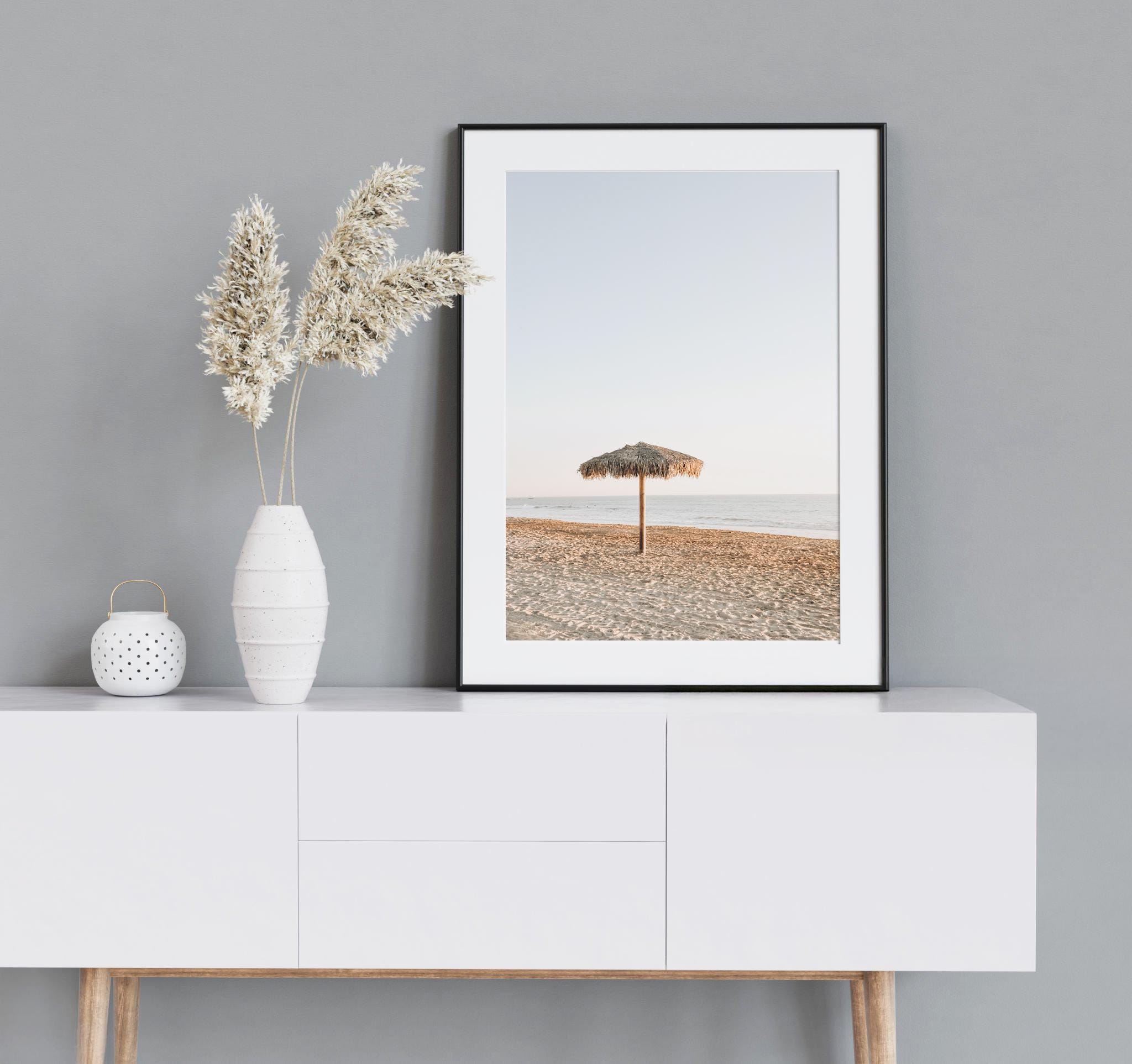 Beach Photography Print: Neutral Coastal Umbrella Decor, San Clemente Wall Art