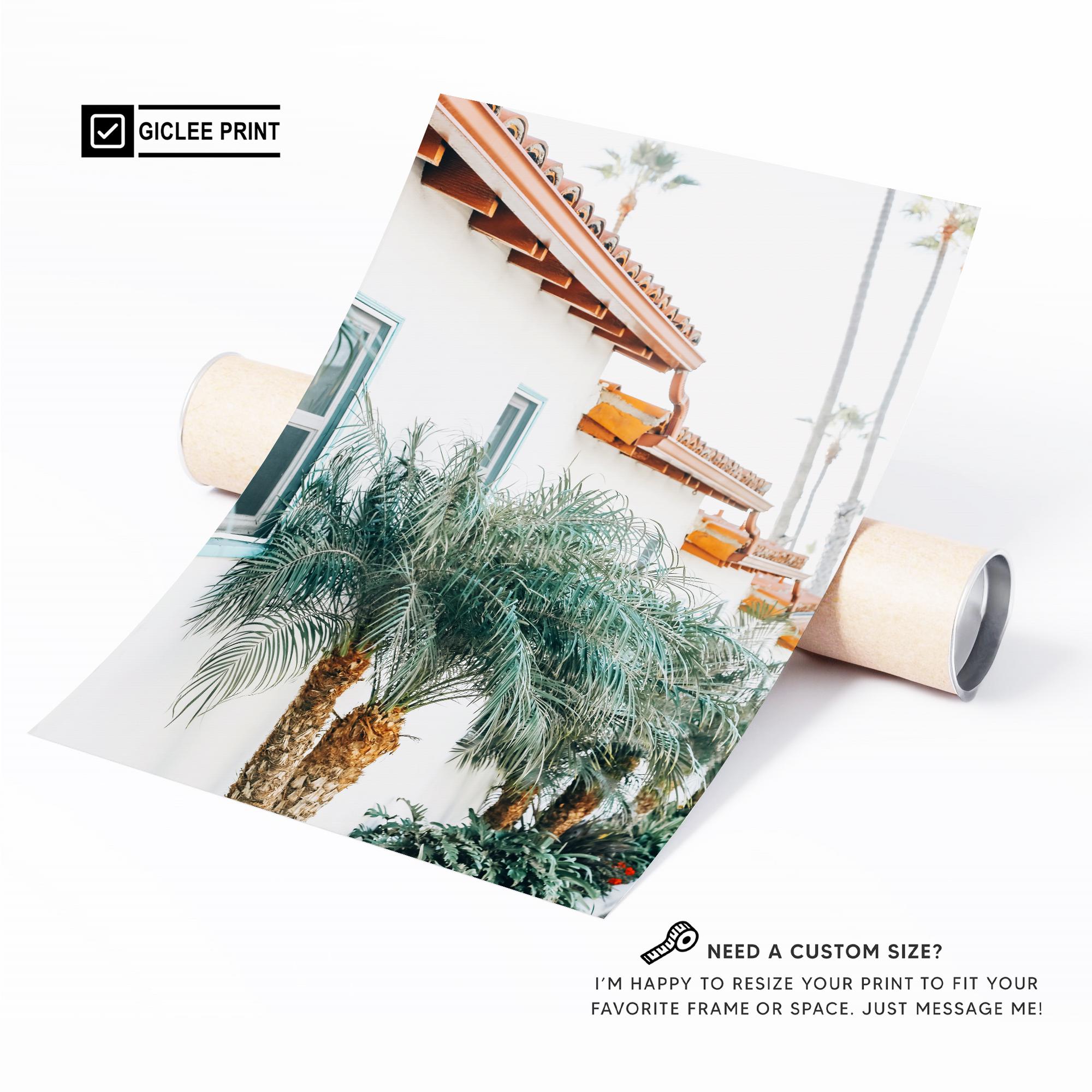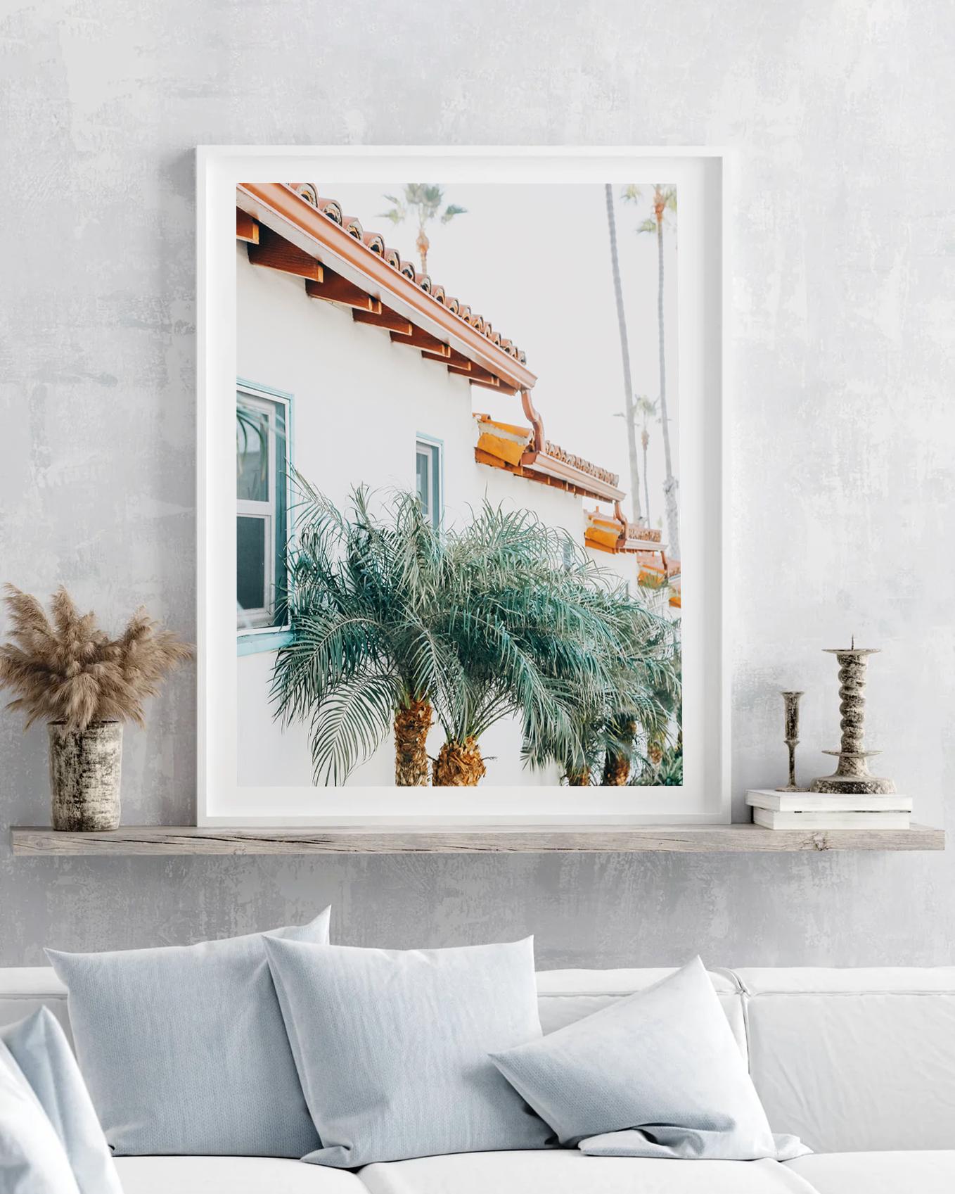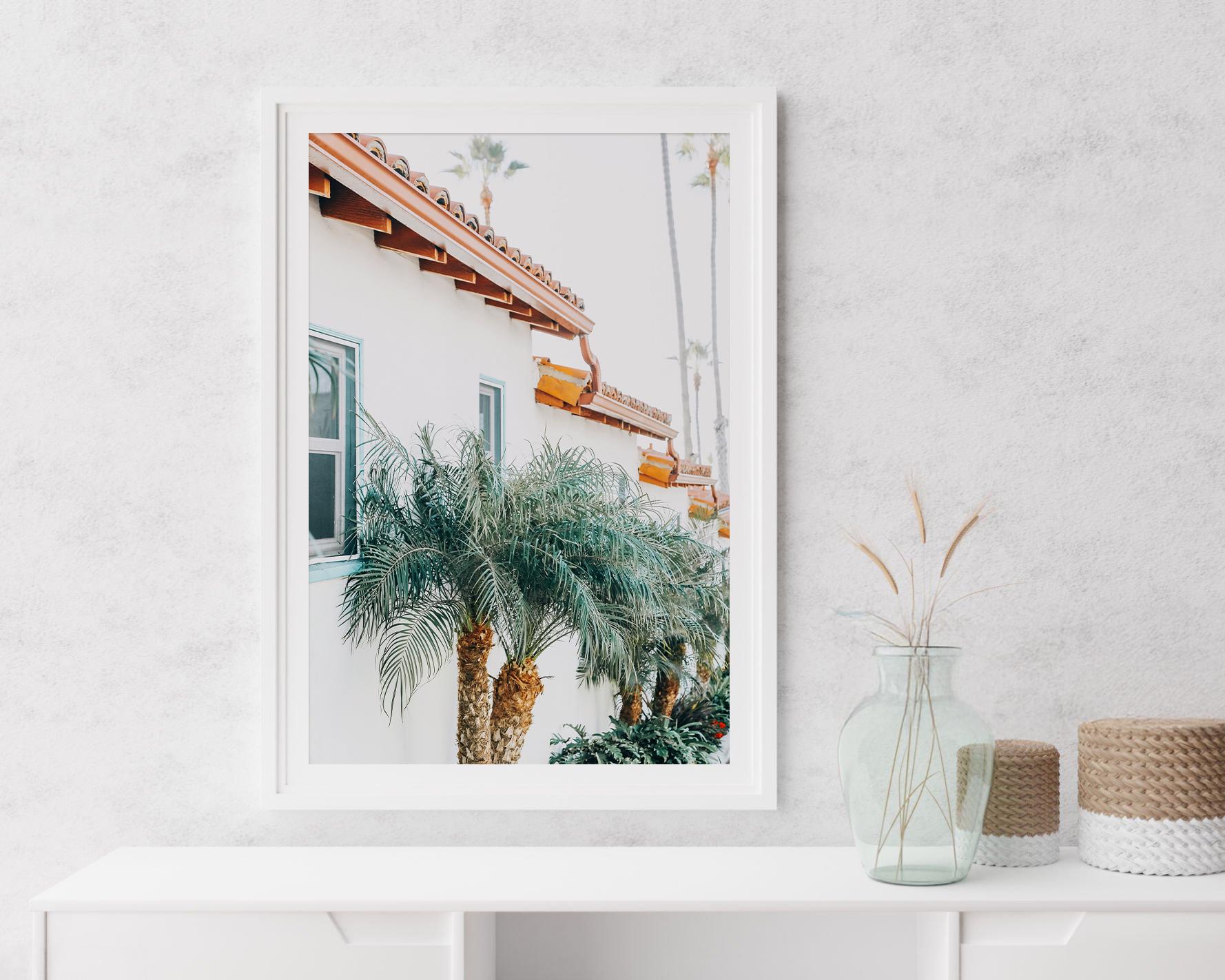 California Wall Art: Spanish Style Architecture Print, Palm Tree Coastal Photography