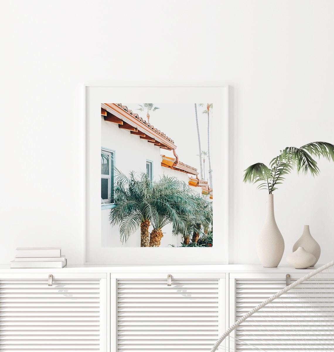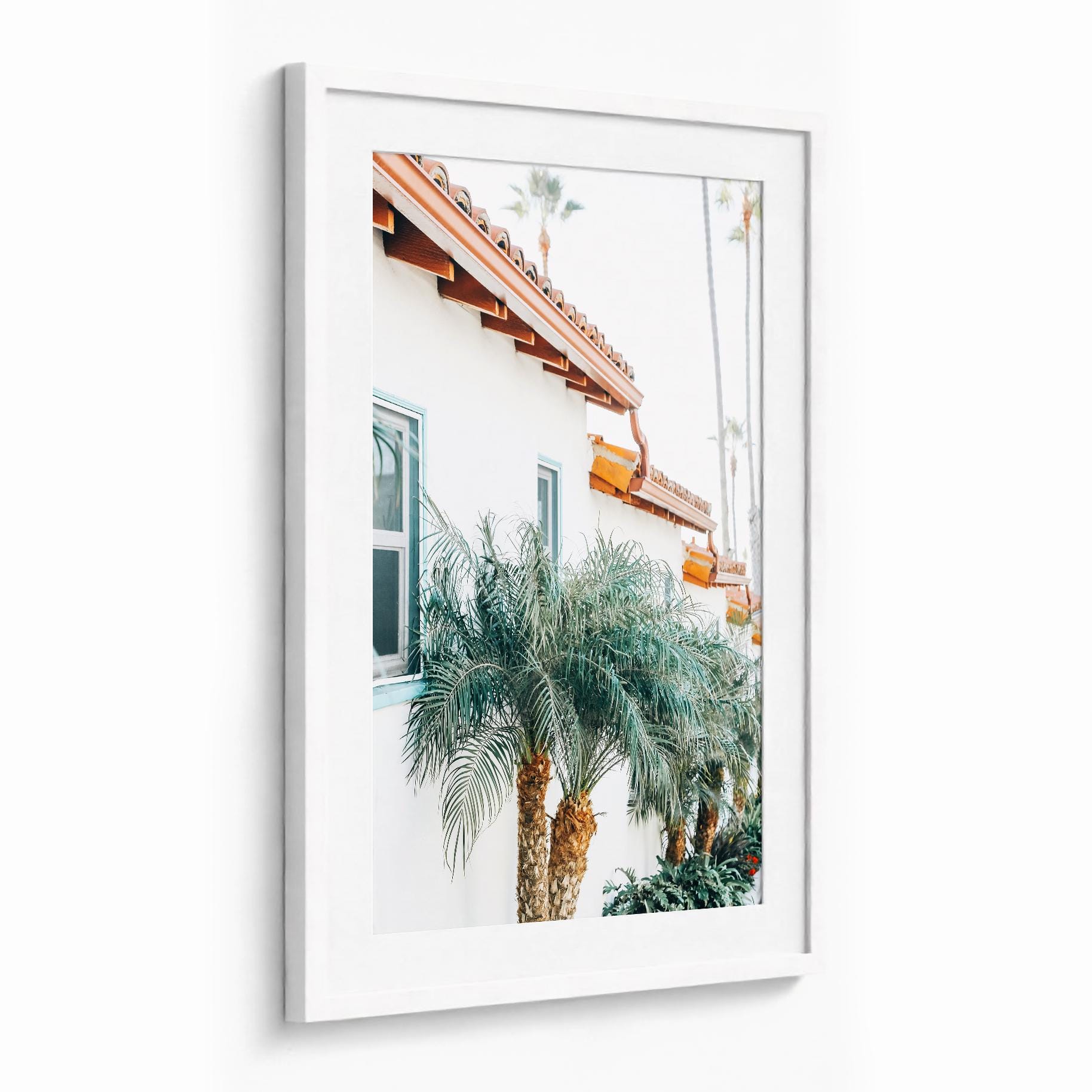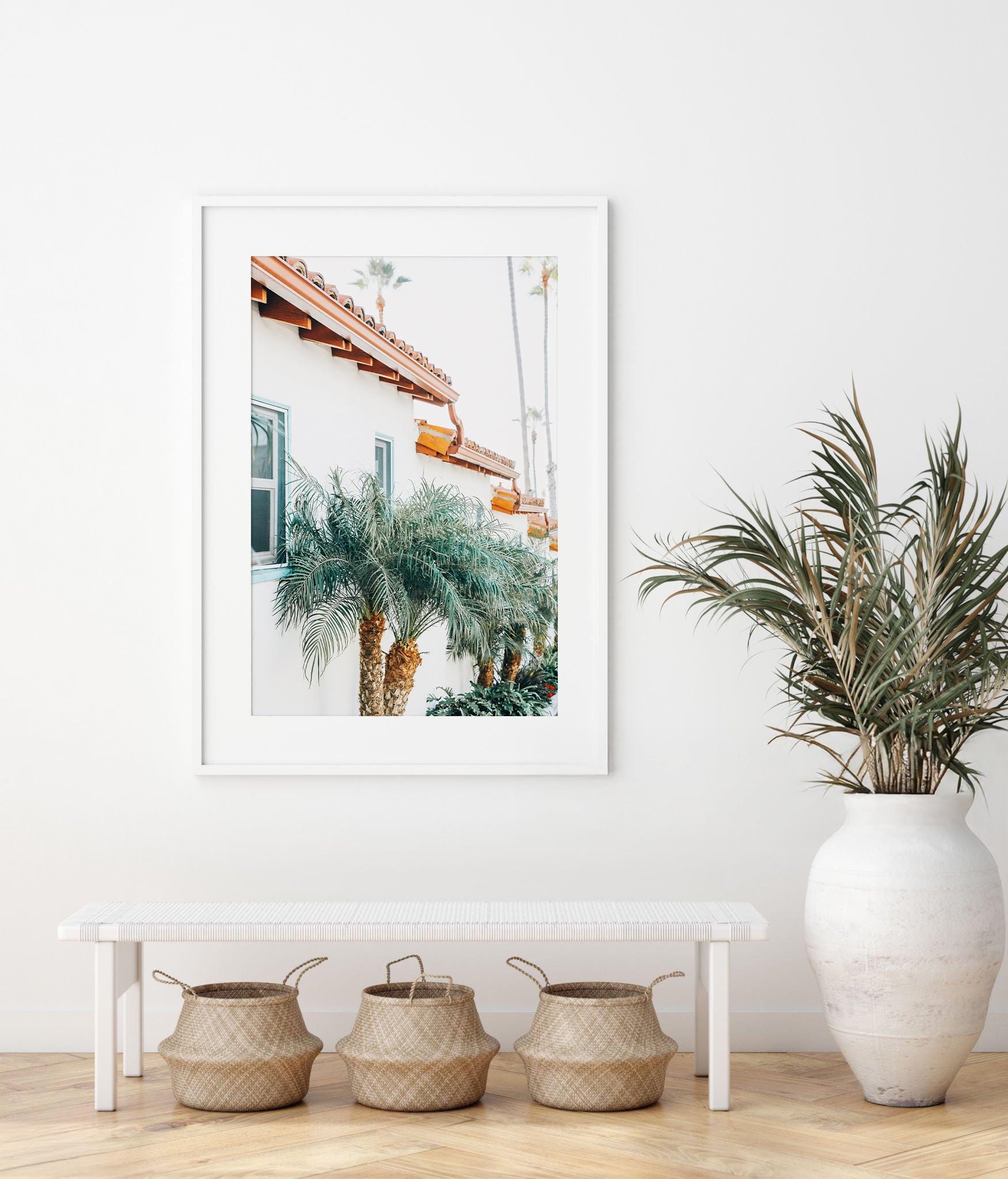 California Wall Art: Spanish Style Architecture Print, Palm Tree Coastal Photography