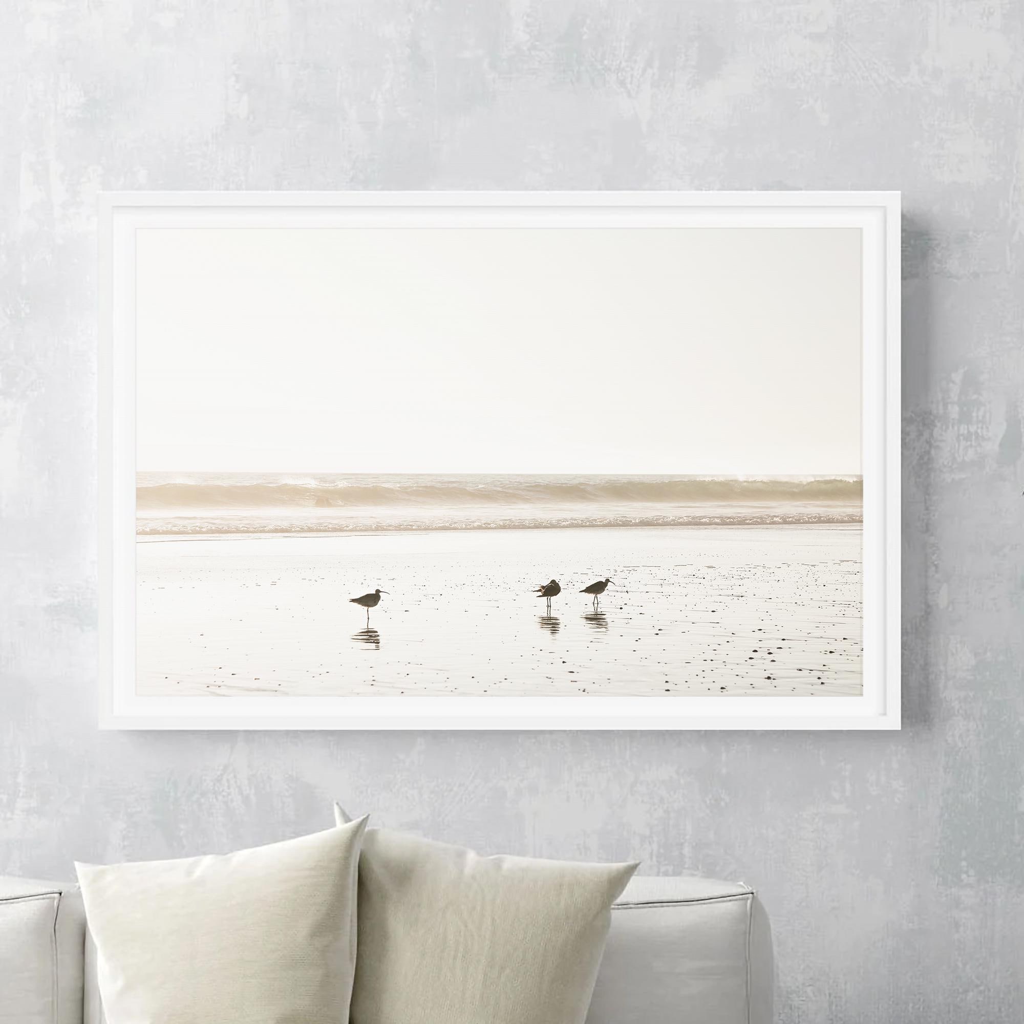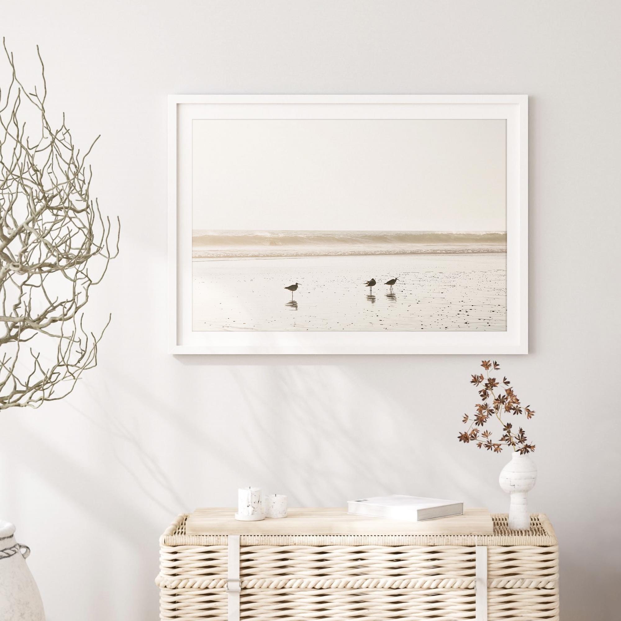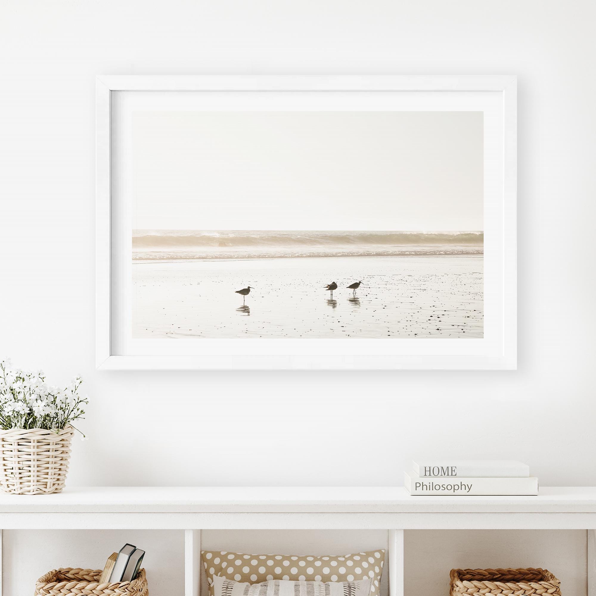 Sandpipers Beach Photography - Neutral Coastal Wall Art, Minimalist Fine Art Print