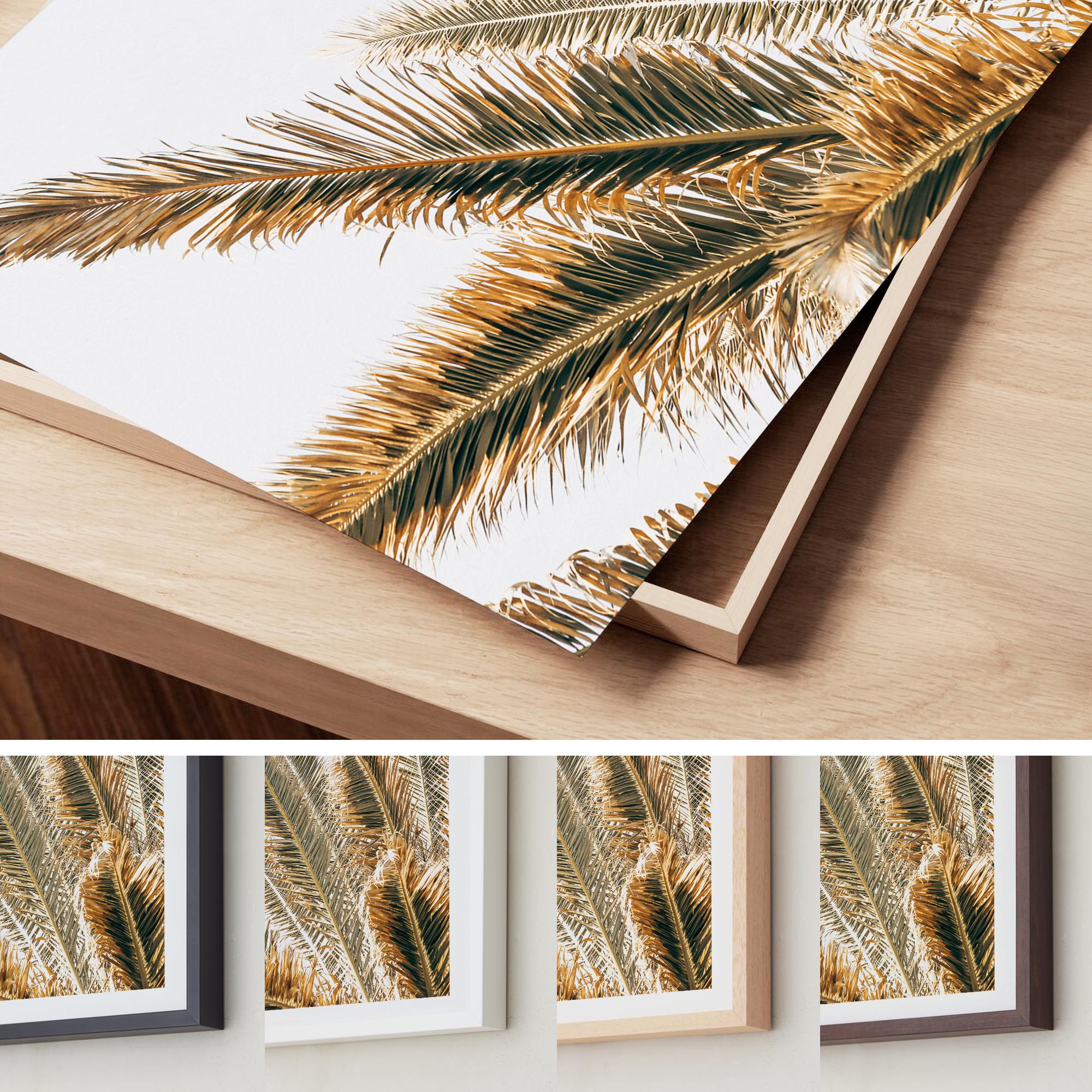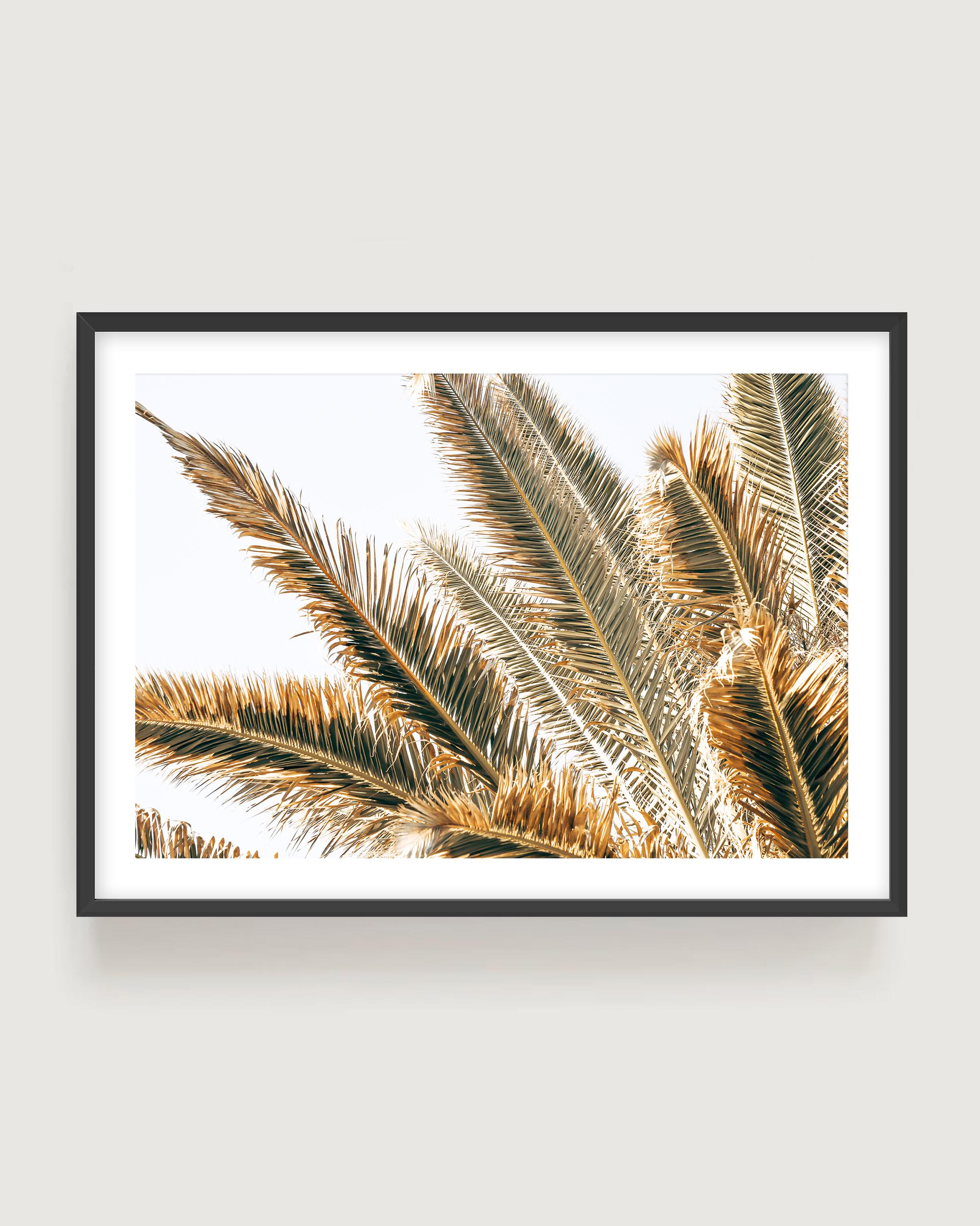 Neutral Tropical Palm Leaf Photography: Botanical Golden Light Fine Art Print