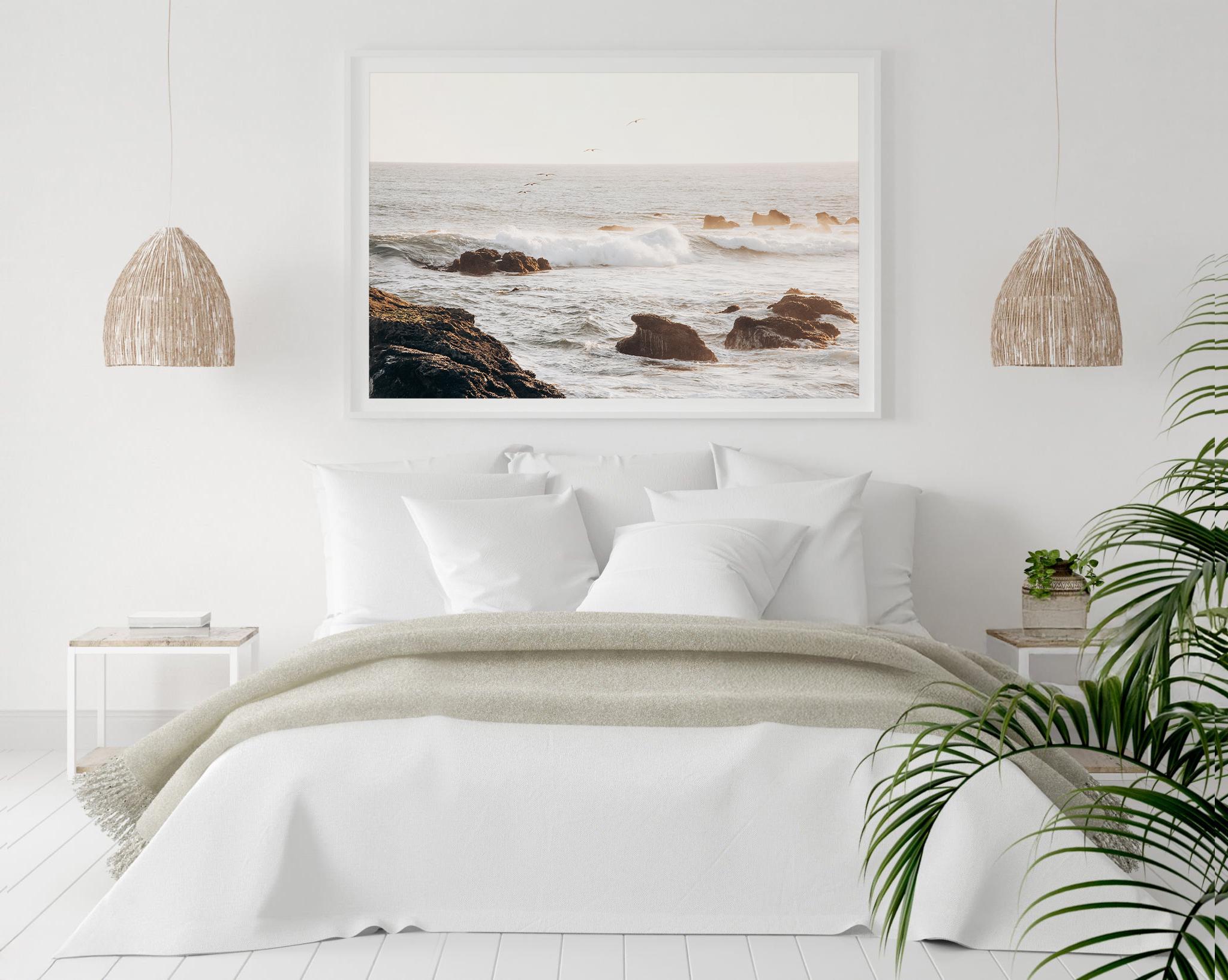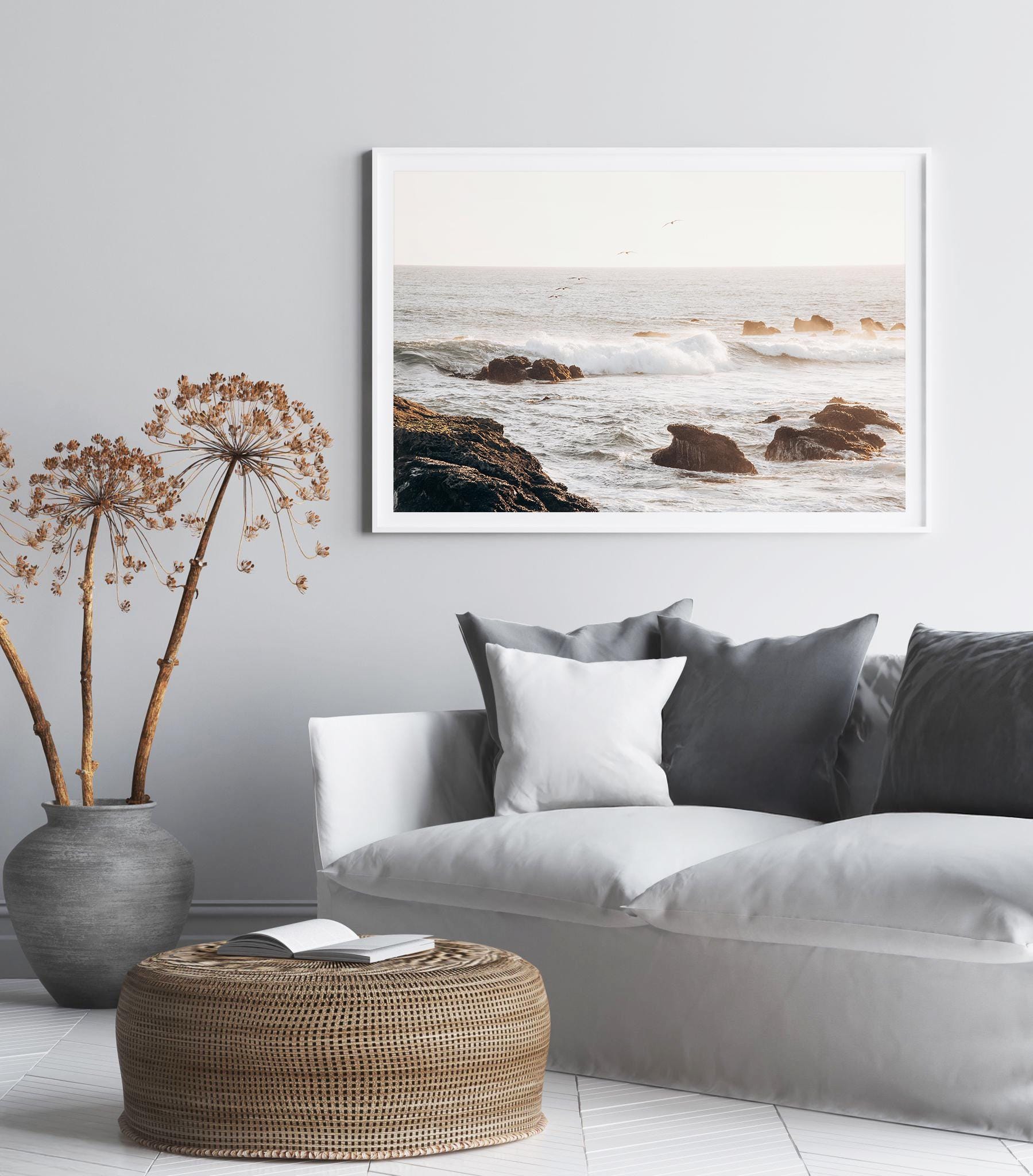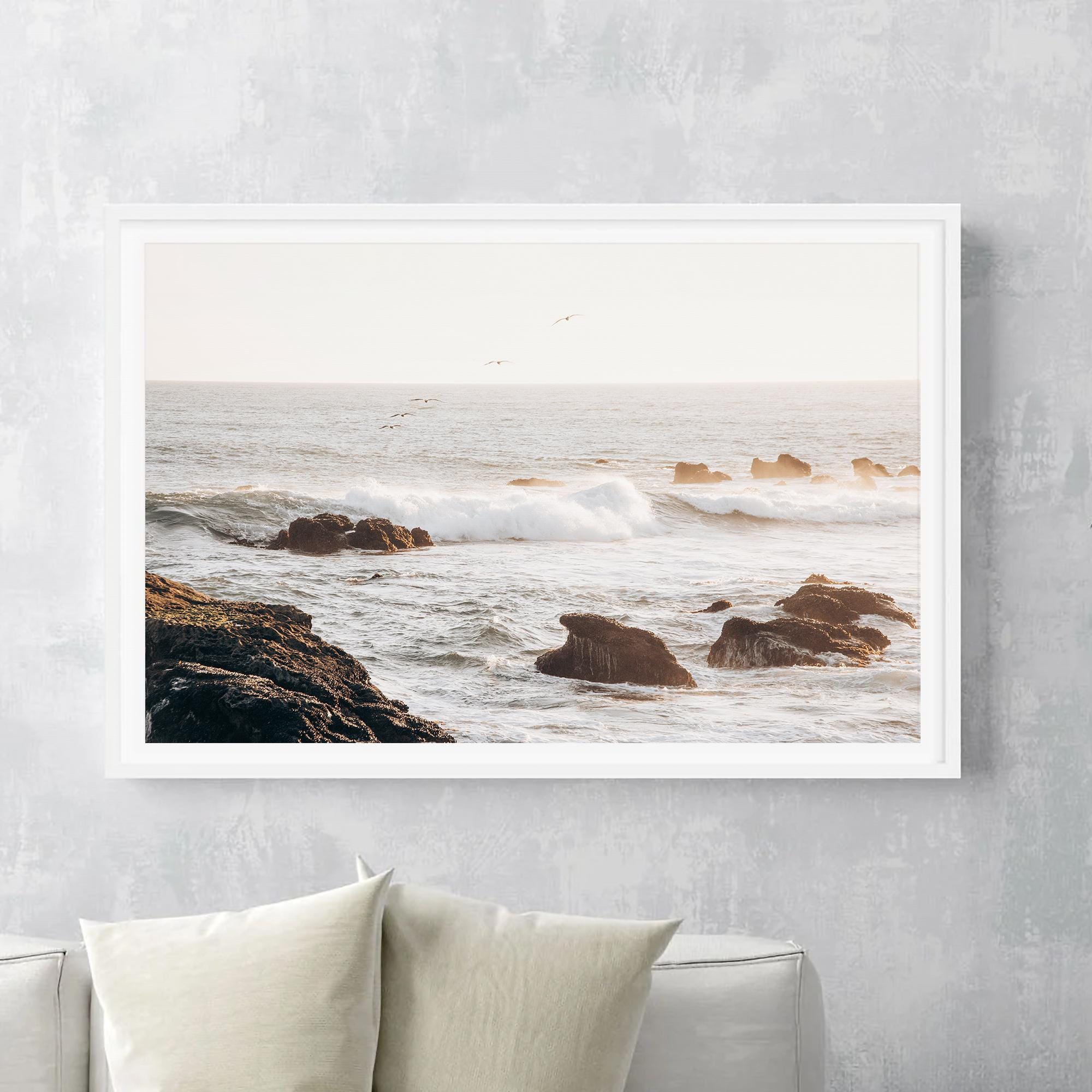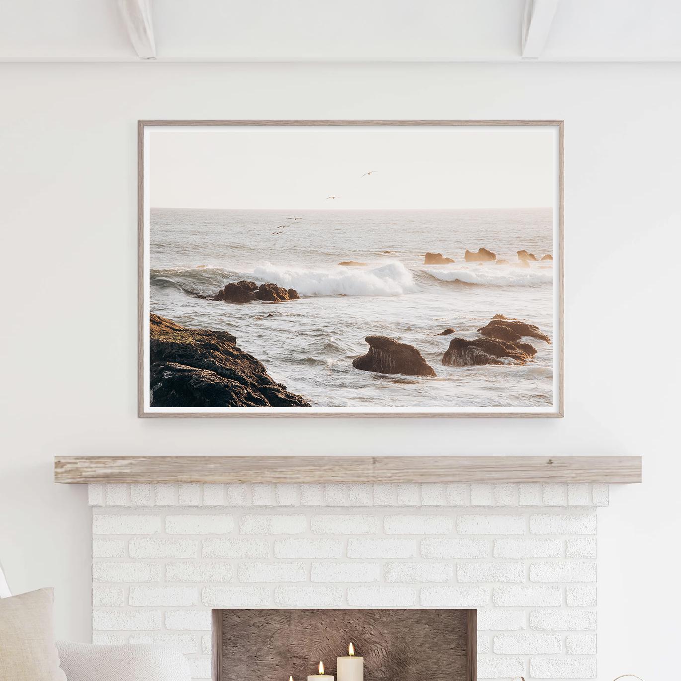 Ocean Wall Art Print: Rocky Shoreline Photography, Serene Coastal Fine Art Decor