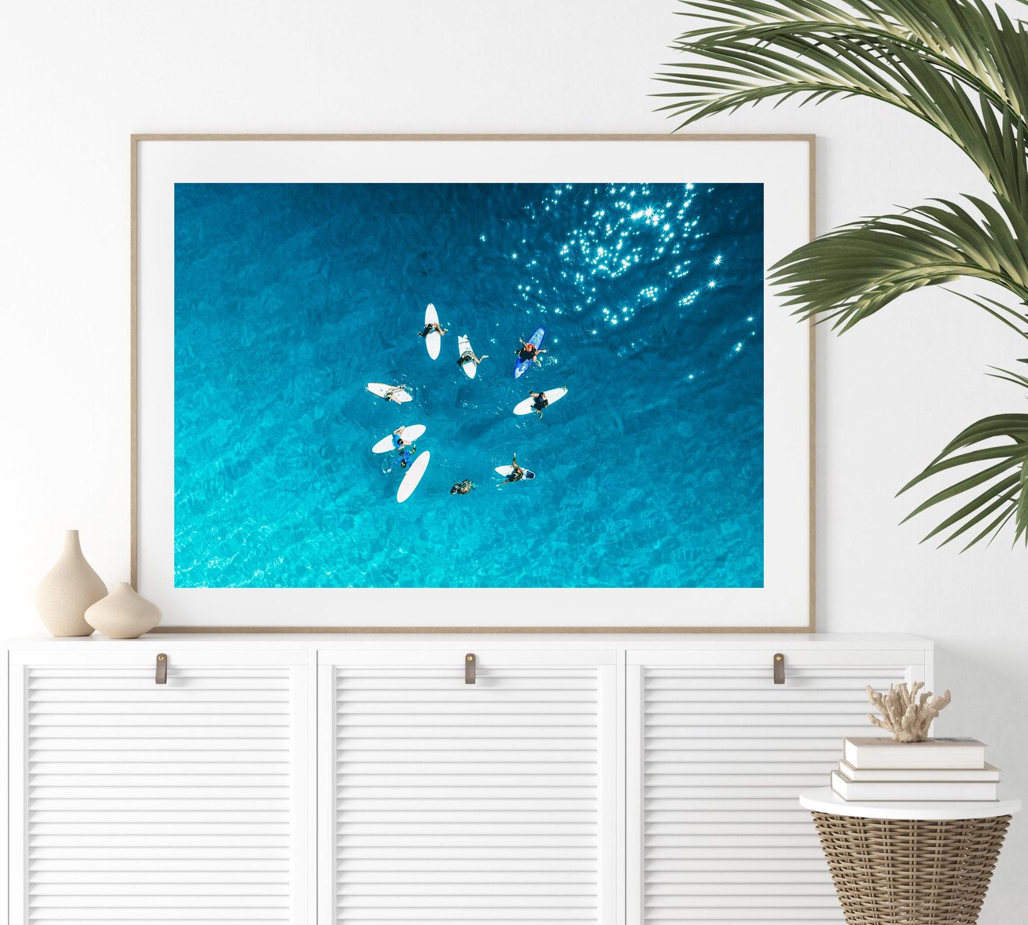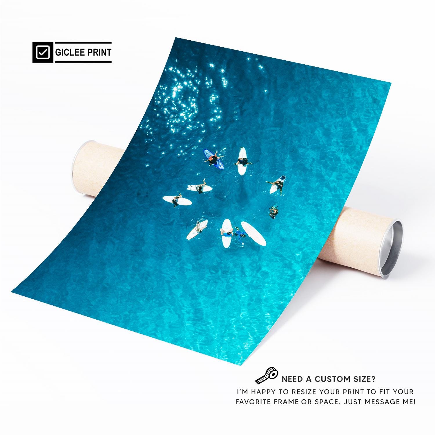 Surf Photography Print: Ocean Aerial Wall Art, Surfers Fine Art Coastal Decor