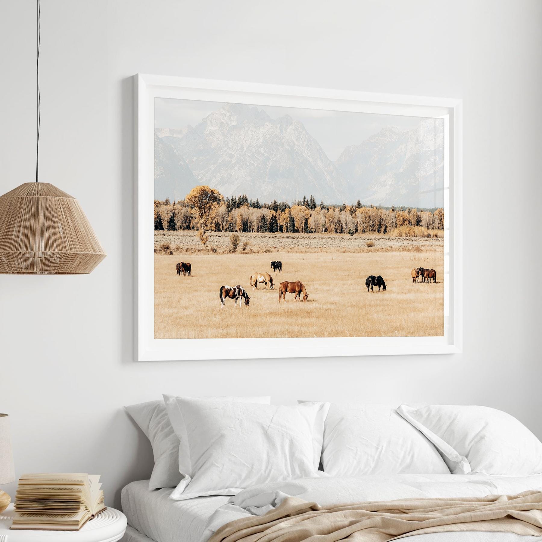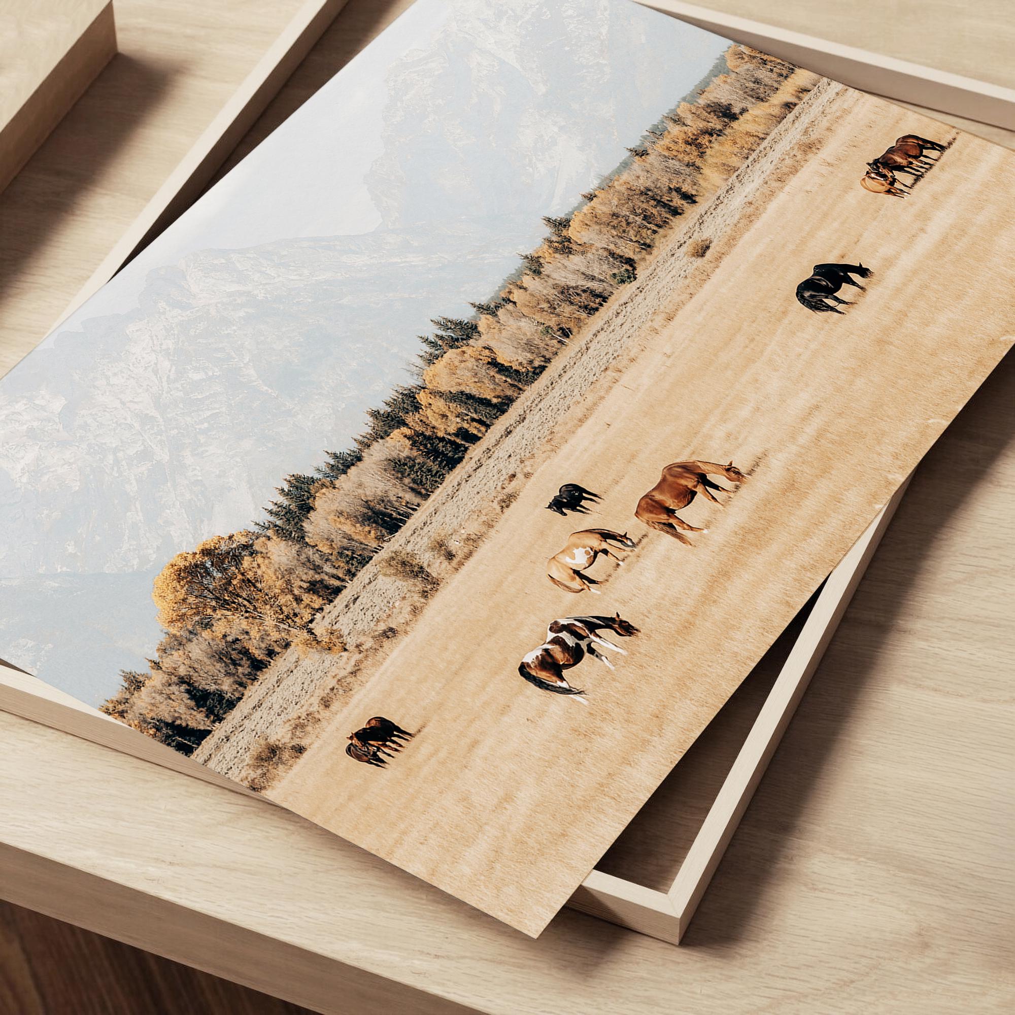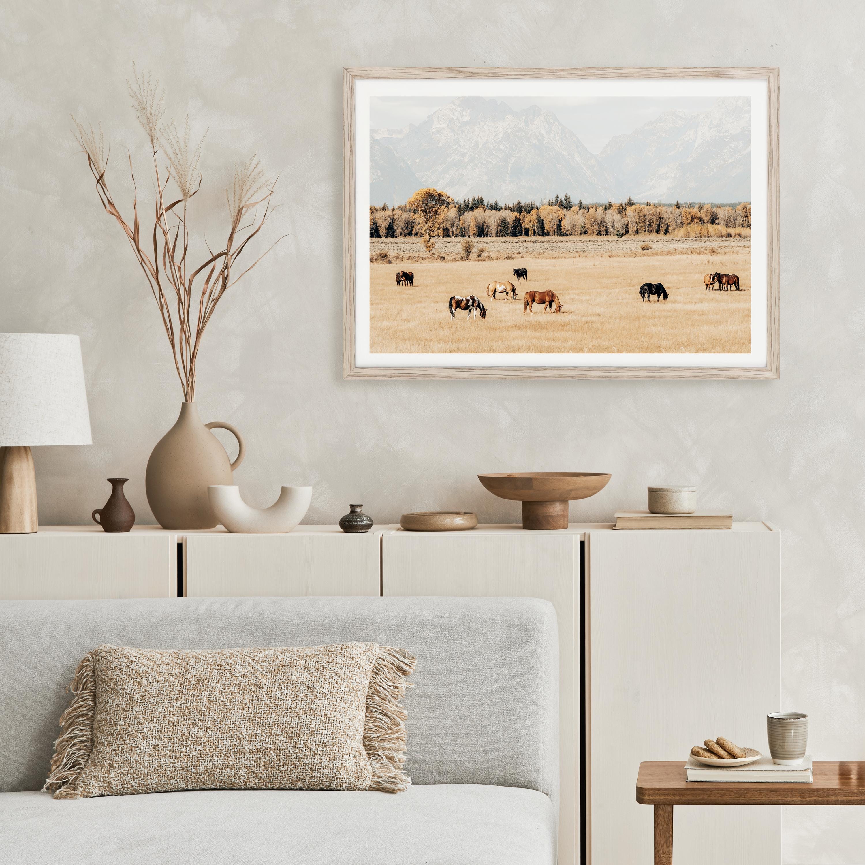 Brown Horses Wall Art Print: Warm Neutral Landscape Photography for Modern Interiors
