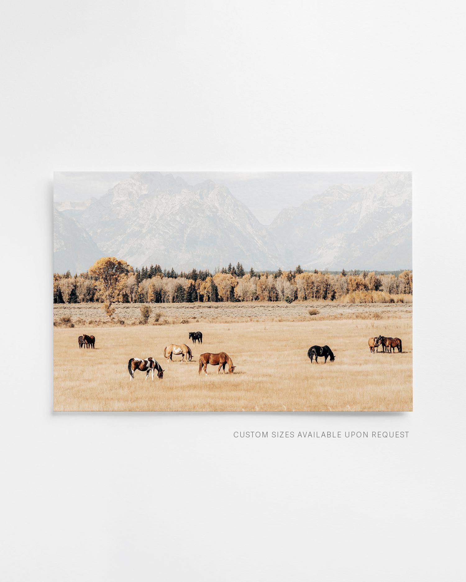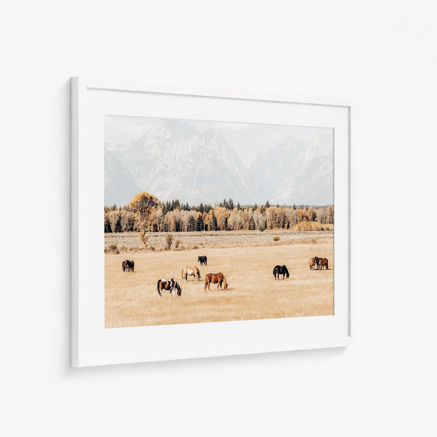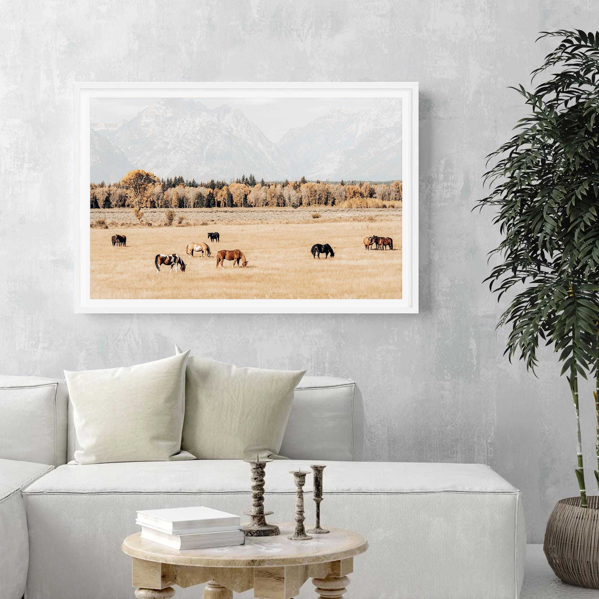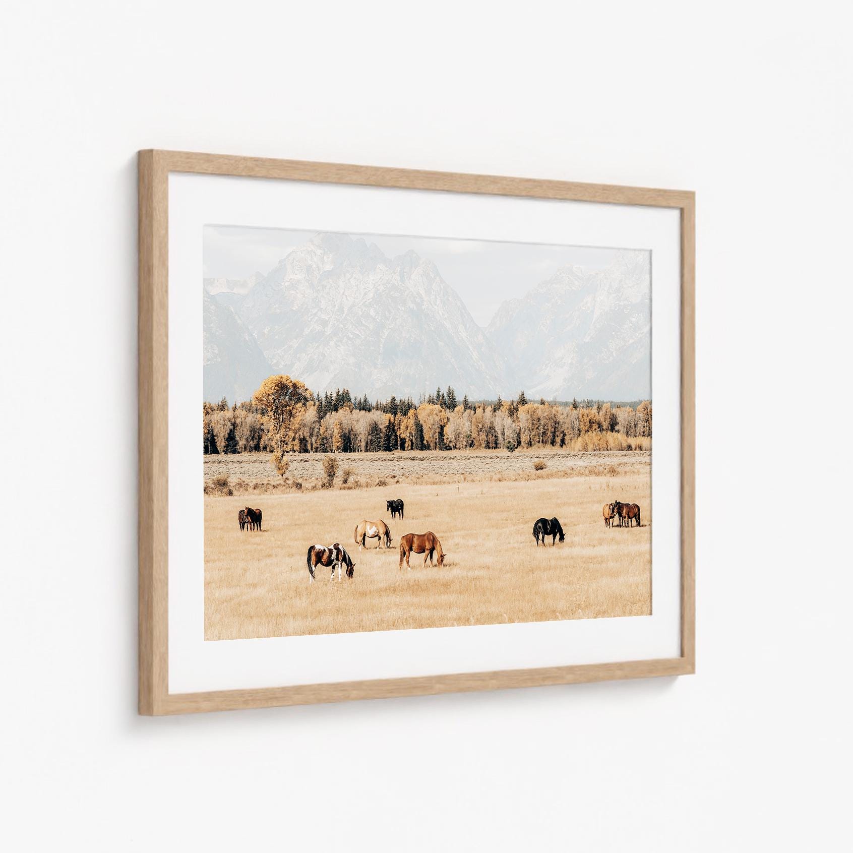 Brown Horses Wall Art Print: Warm Neutral Landscape Photography for Modern Interiors