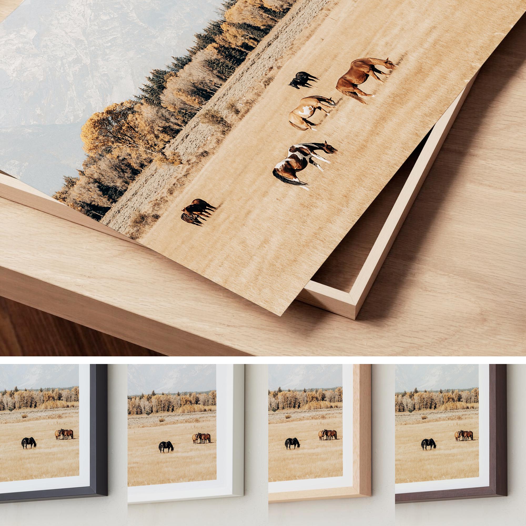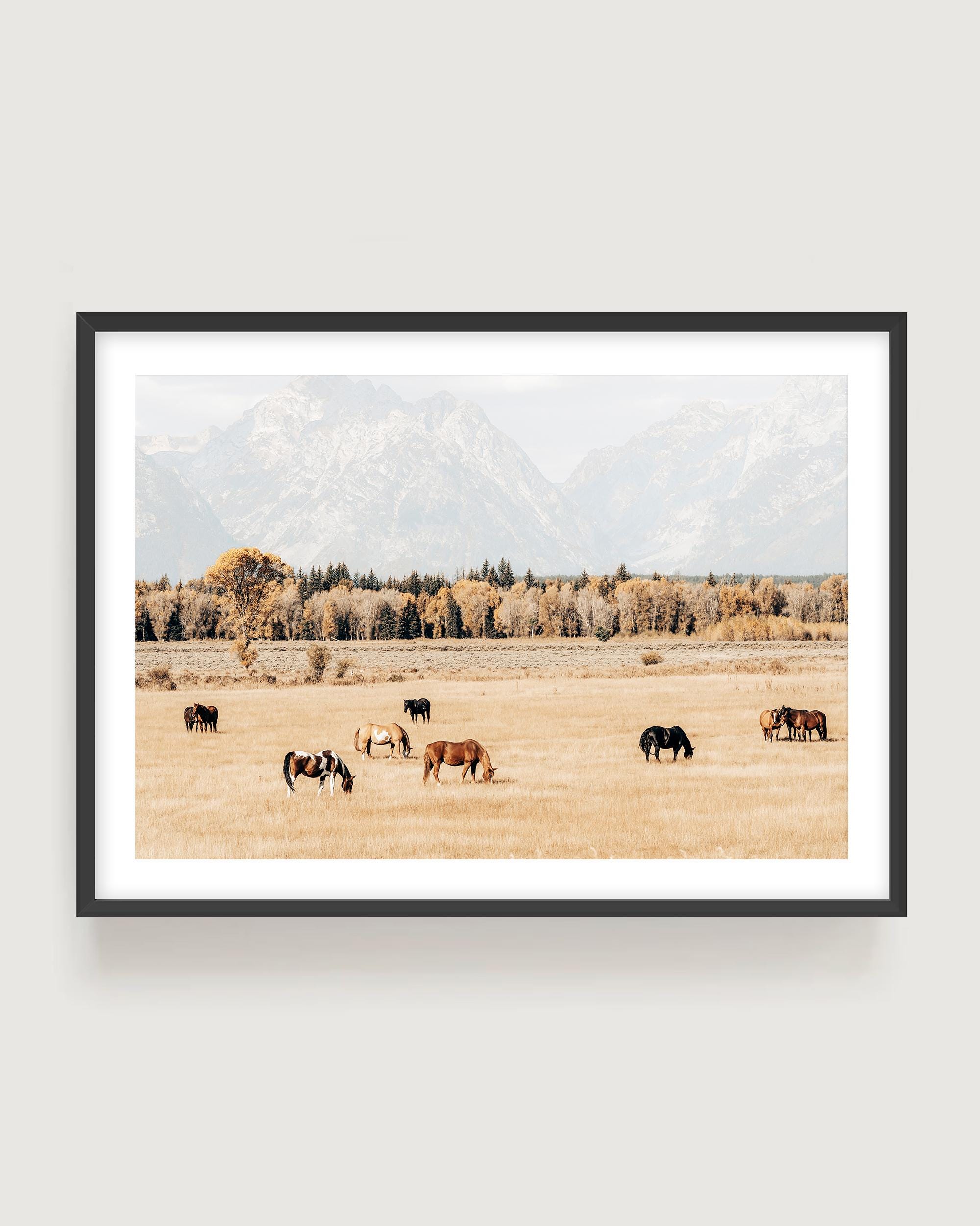 Brown Horses Wall Art Print - Warm Neutral Landscape Photography for Modern Interiors
