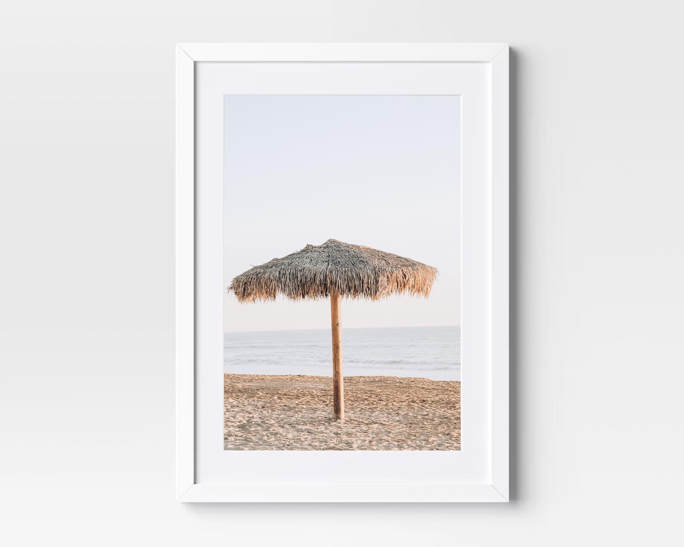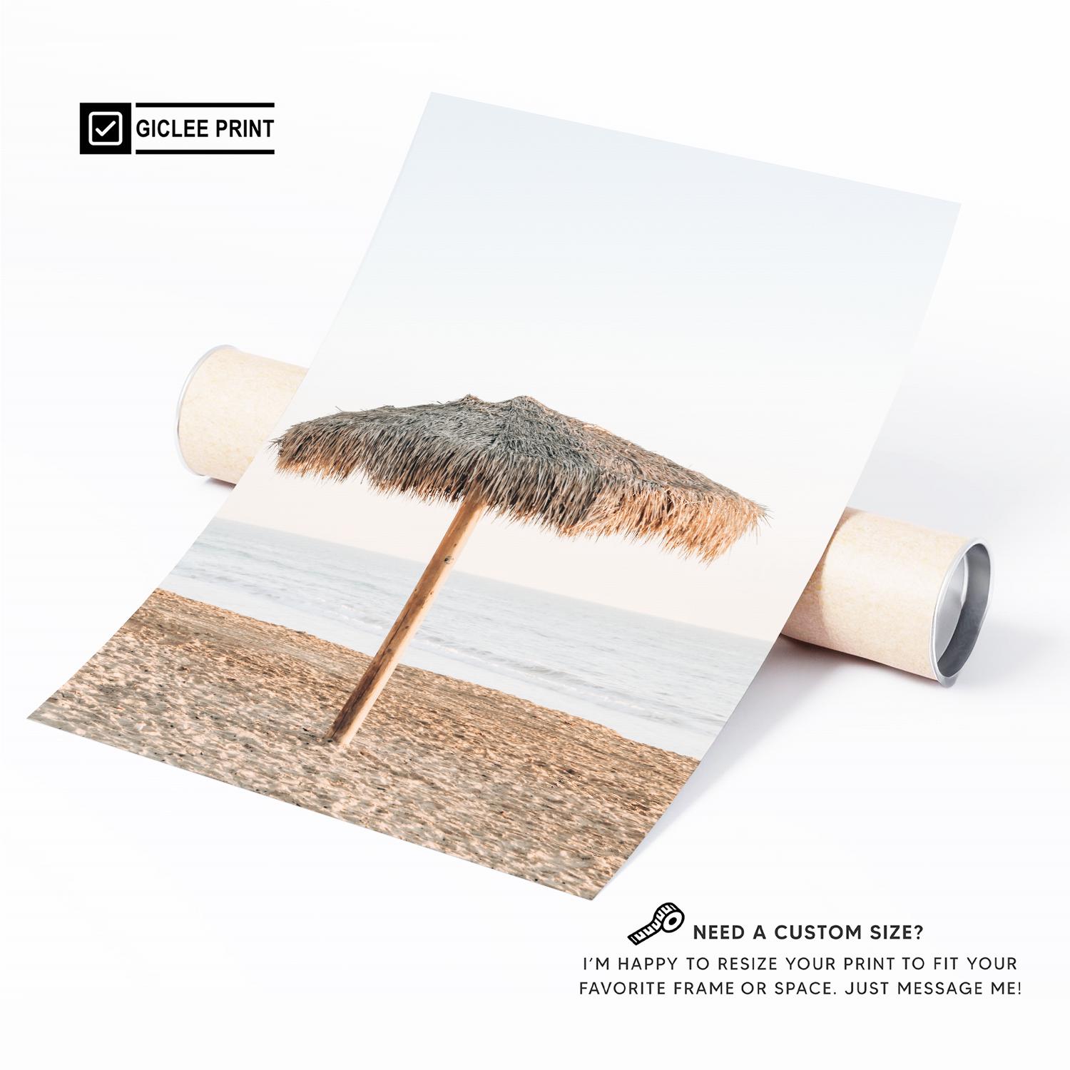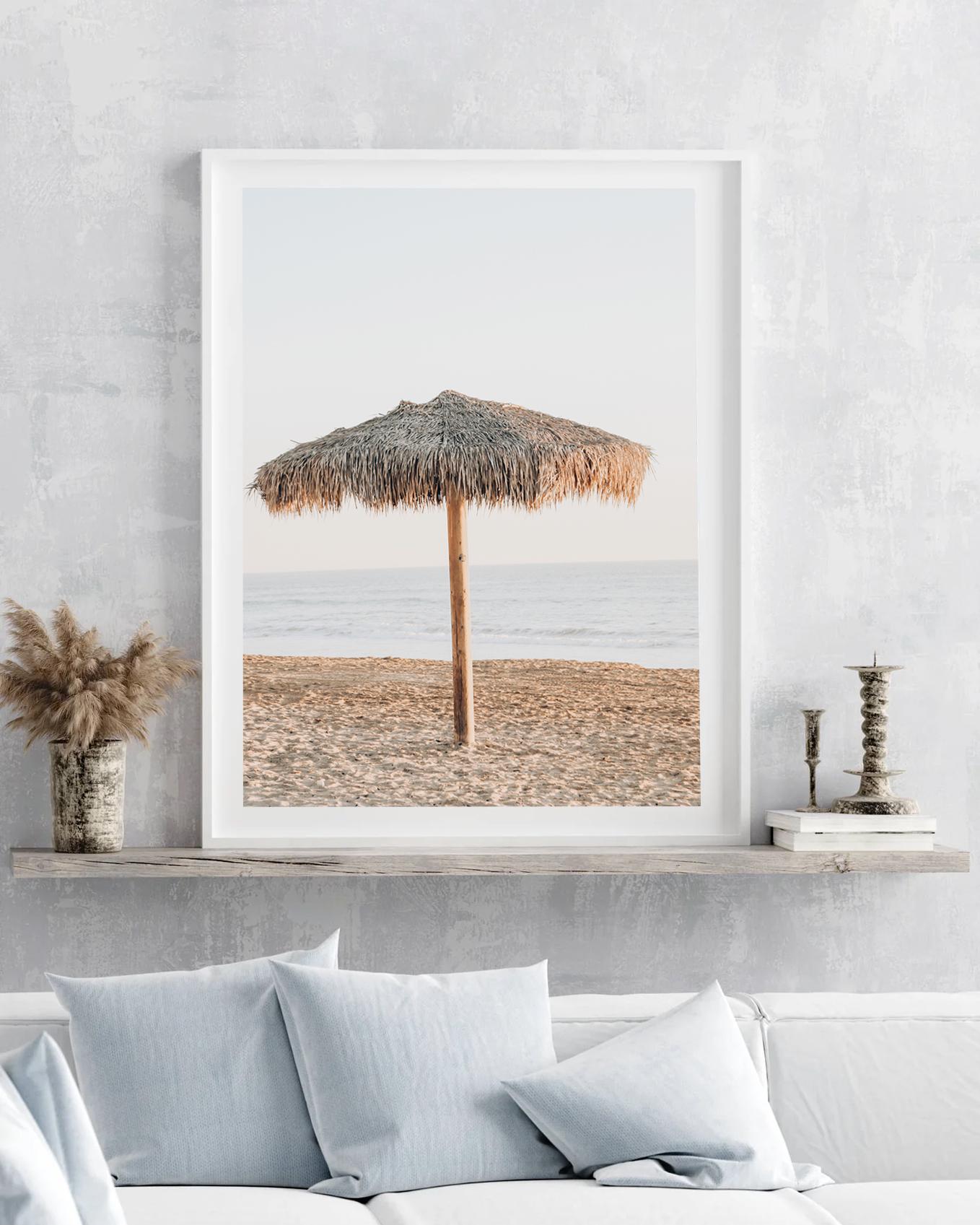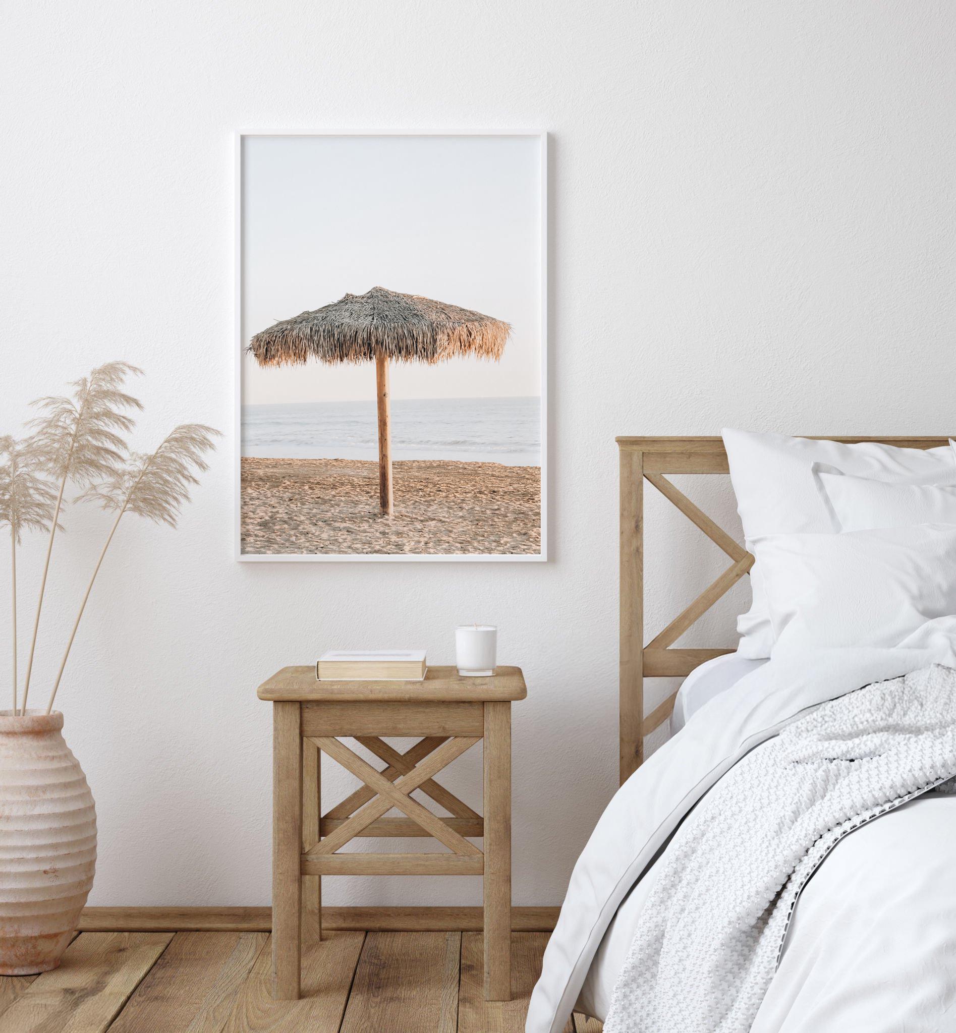 Beach Umbrella Photography Print: Boho Coastal Bedroom Wall Art, Modern Beach Decor