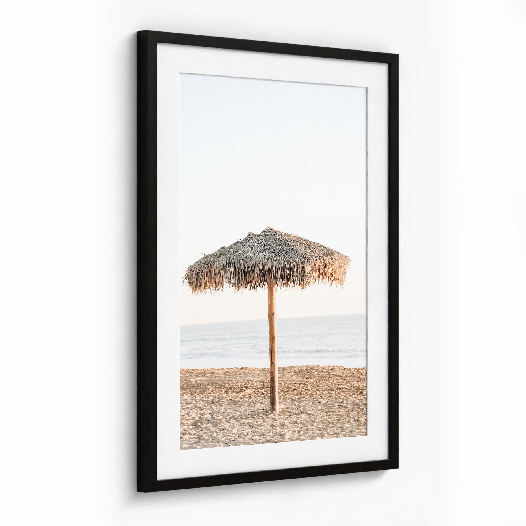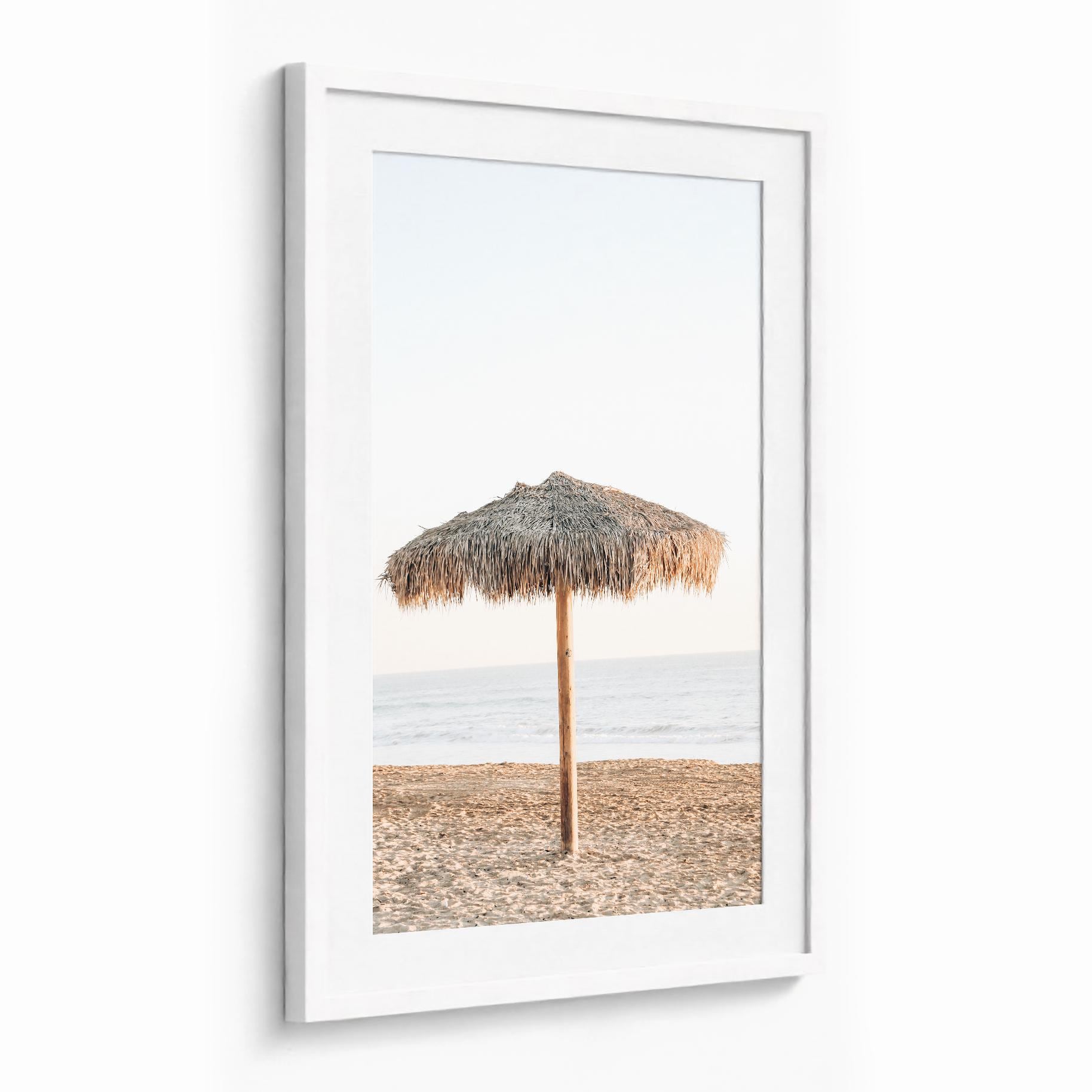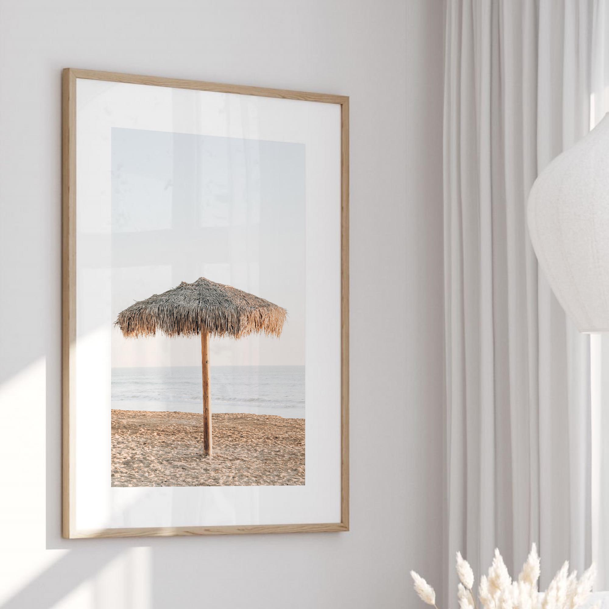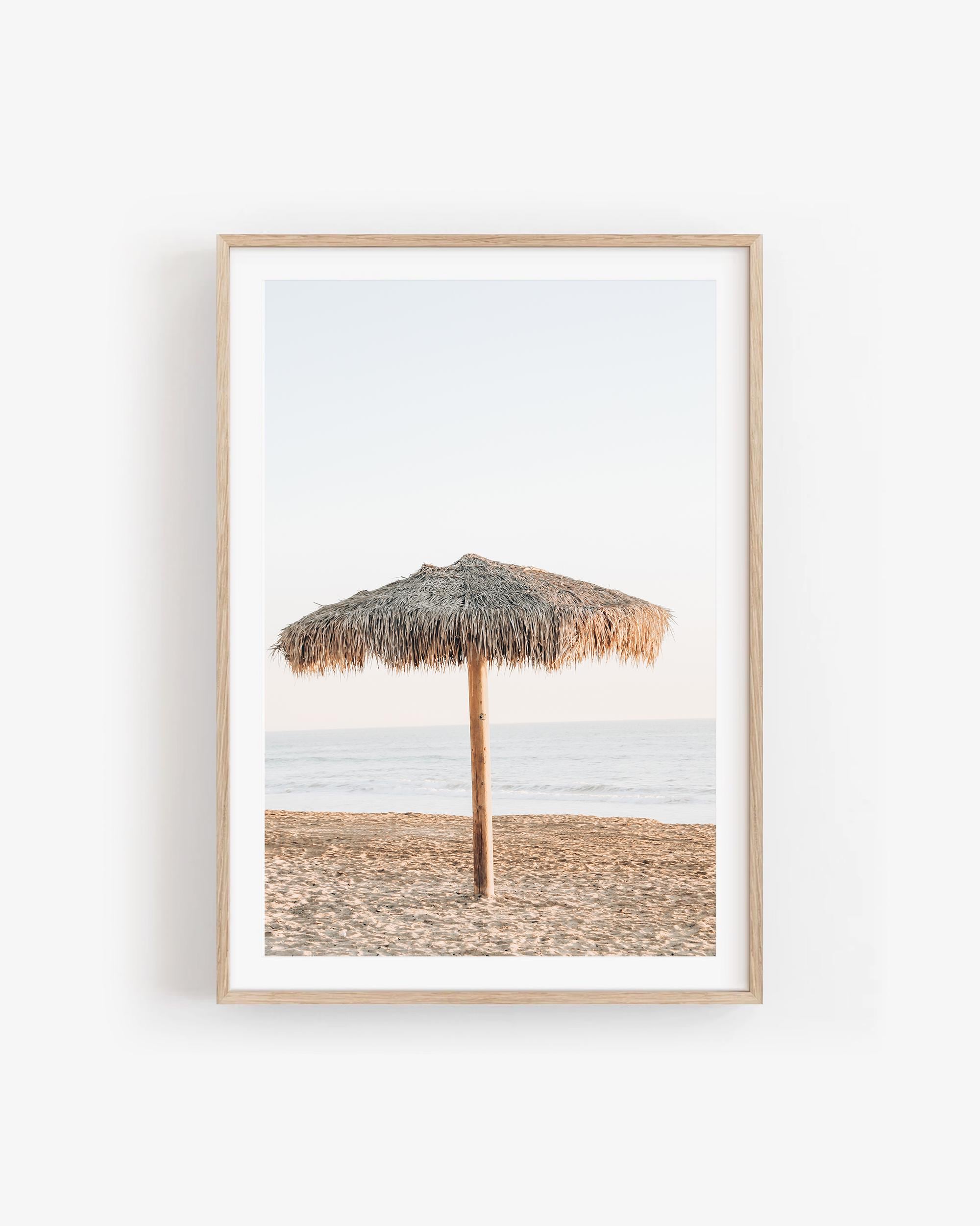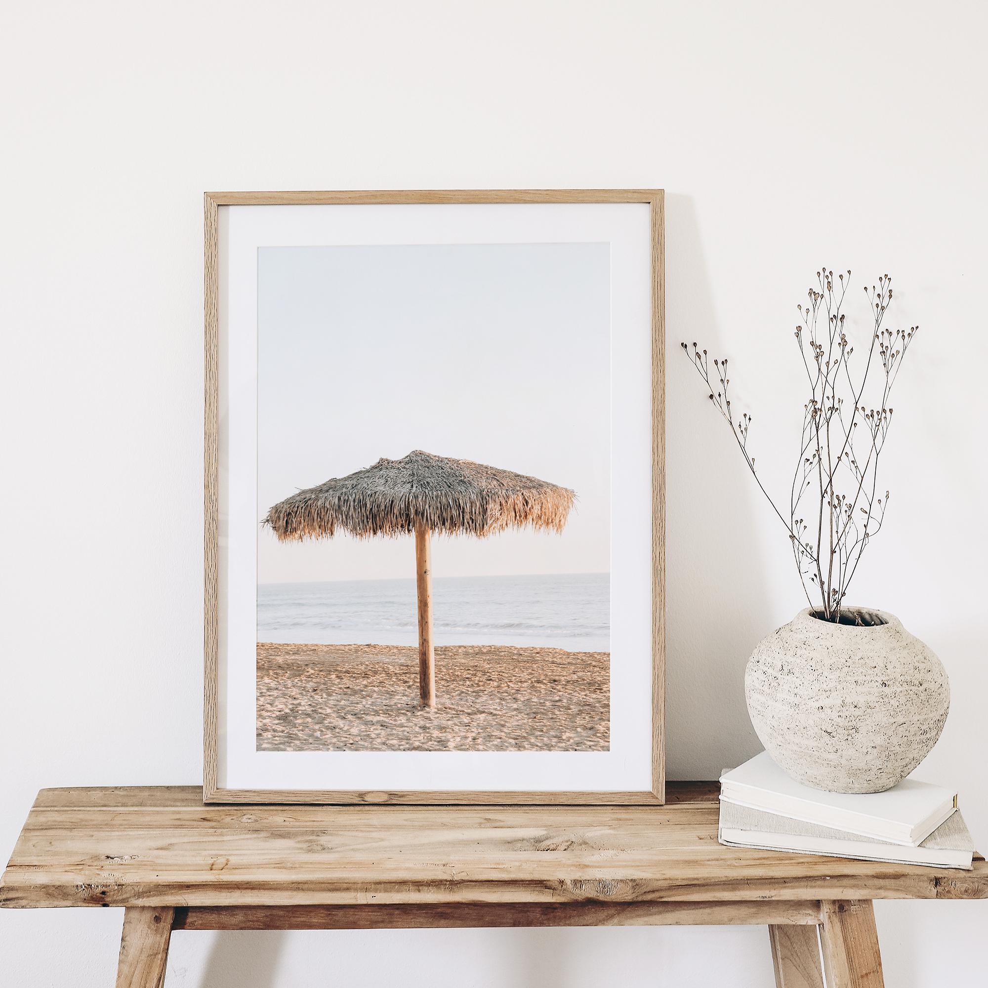 Beach Umbrella Photography Print: Boho Coastal Bedroom Wall Art, Modern Beach Decor